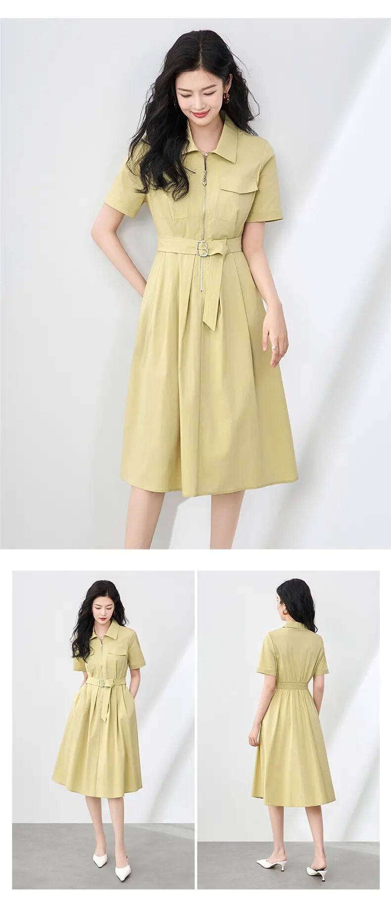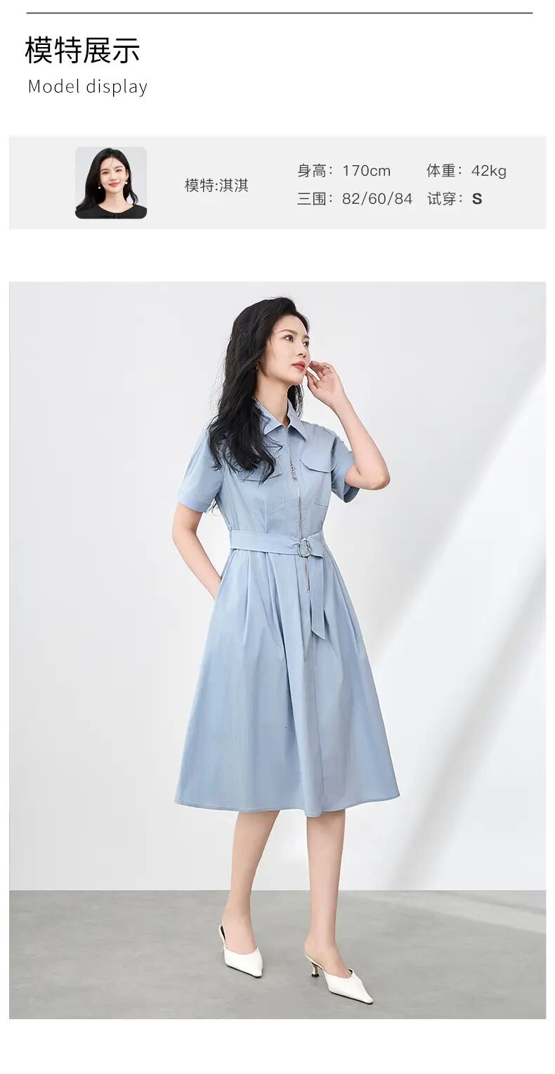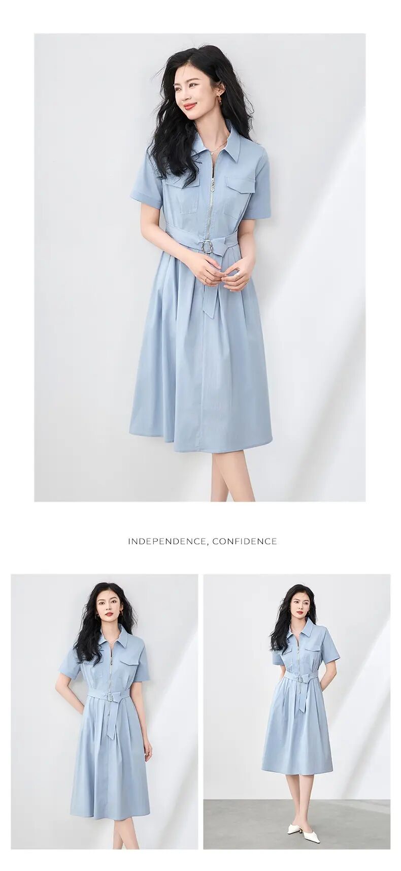 【高货wl】全新升级【铂金会员330/天猫449/差价119】(04115) 洛诗琳简约通勤休闲气质高腰半拉链衬衫裙夏季新款连衣裙