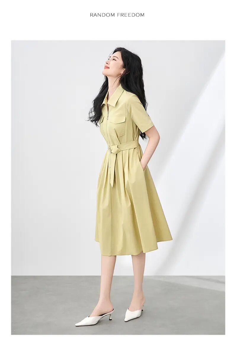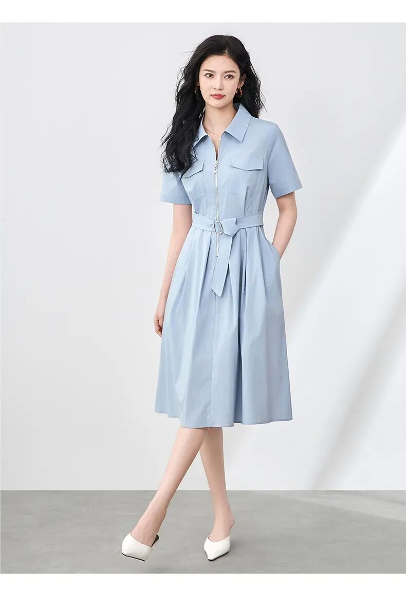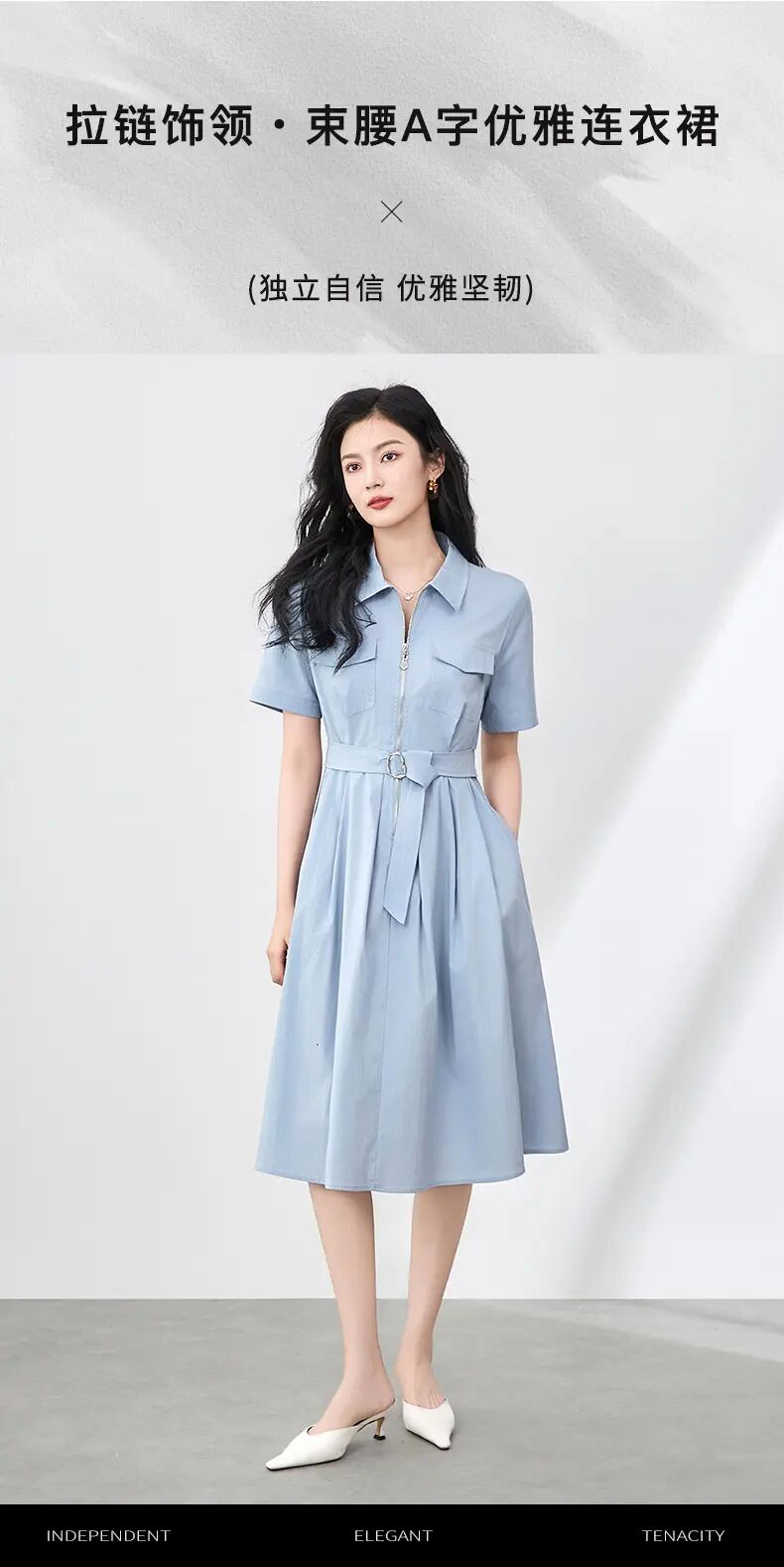 【高货wl】全新升级【铂金会员330/天猫449/差价119】(04115) 洛诗琳简约通勤休闲气质高腰半拉链衬衫裙夏季新款连衣裙