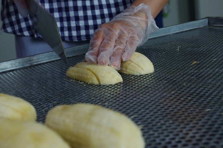 将新鲜的大蕉切成厚长条