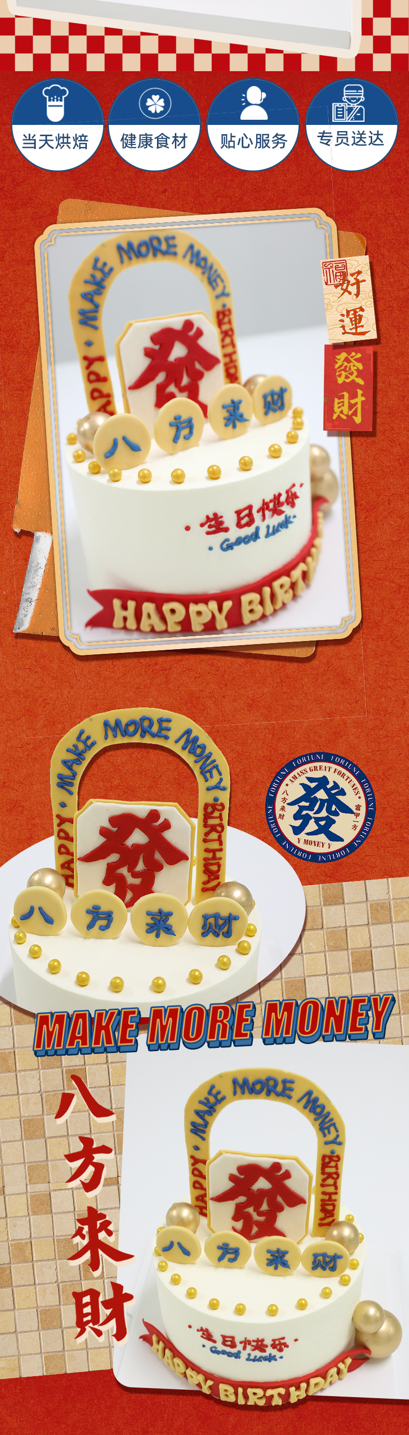 【新品】八方来财蛋糕:祝你祝我日复一日,年富一年,四面八方来财