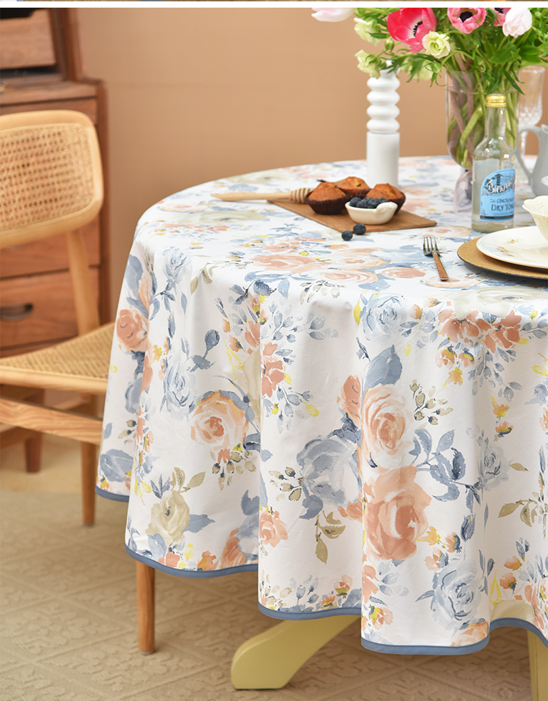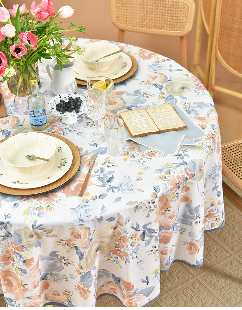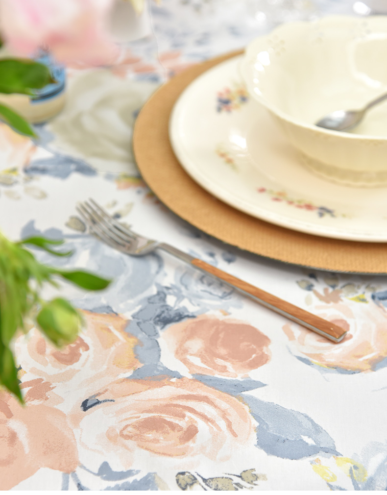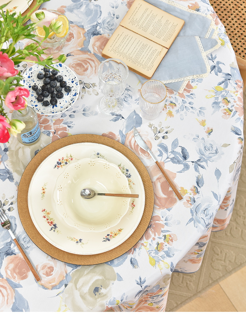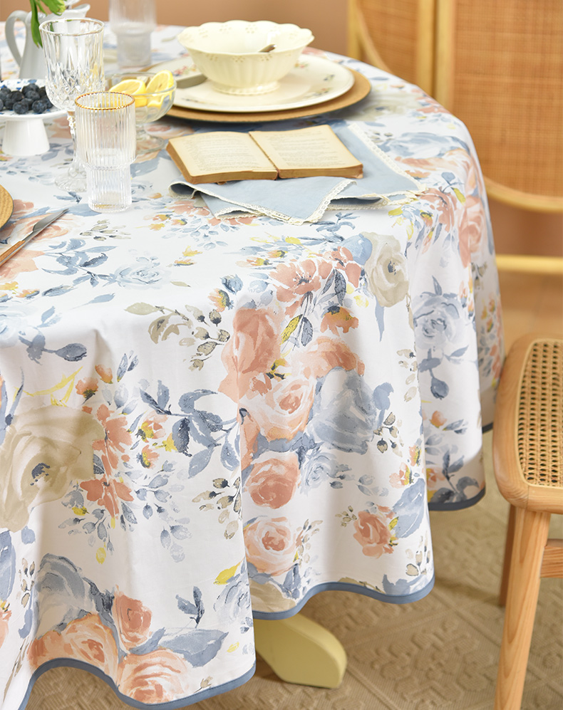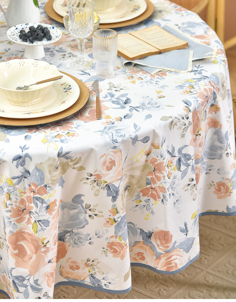 马卡龙玫瑰系列圆形桌布轻奢全棉欧式台布