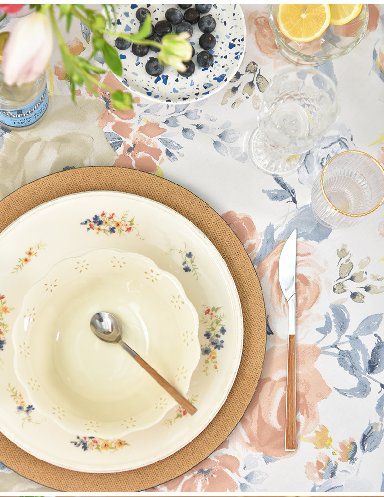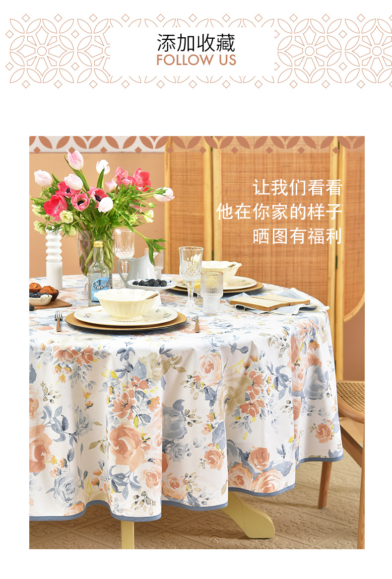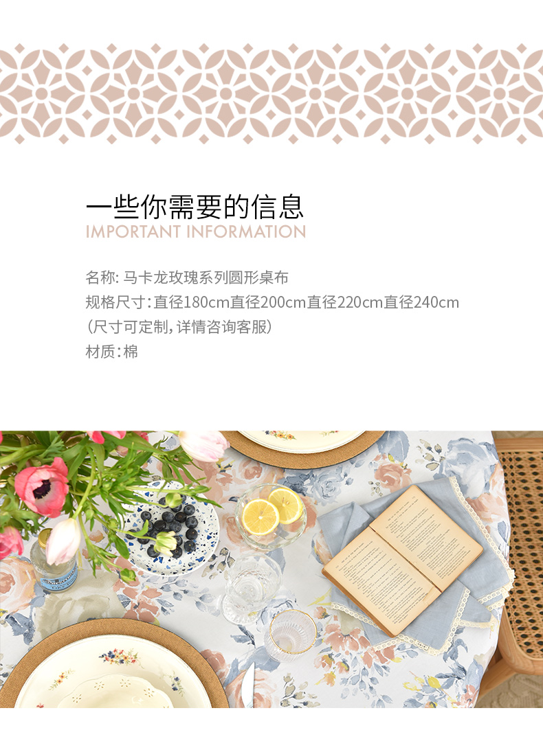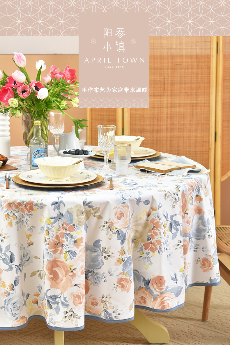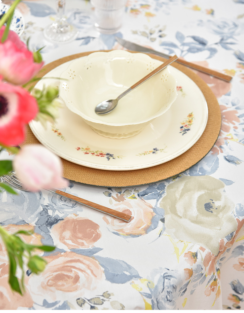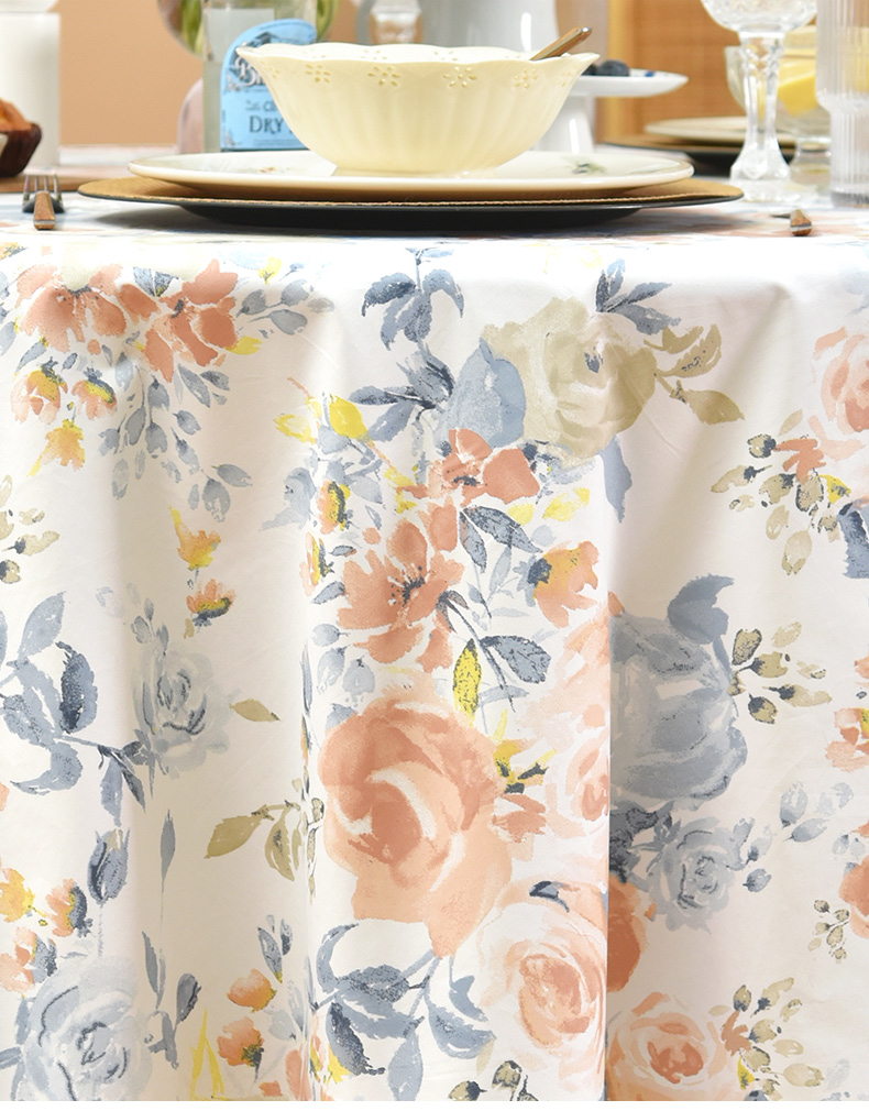 马卡龙玫瑰系列圆形桌布轻奢全棉欧式台布
