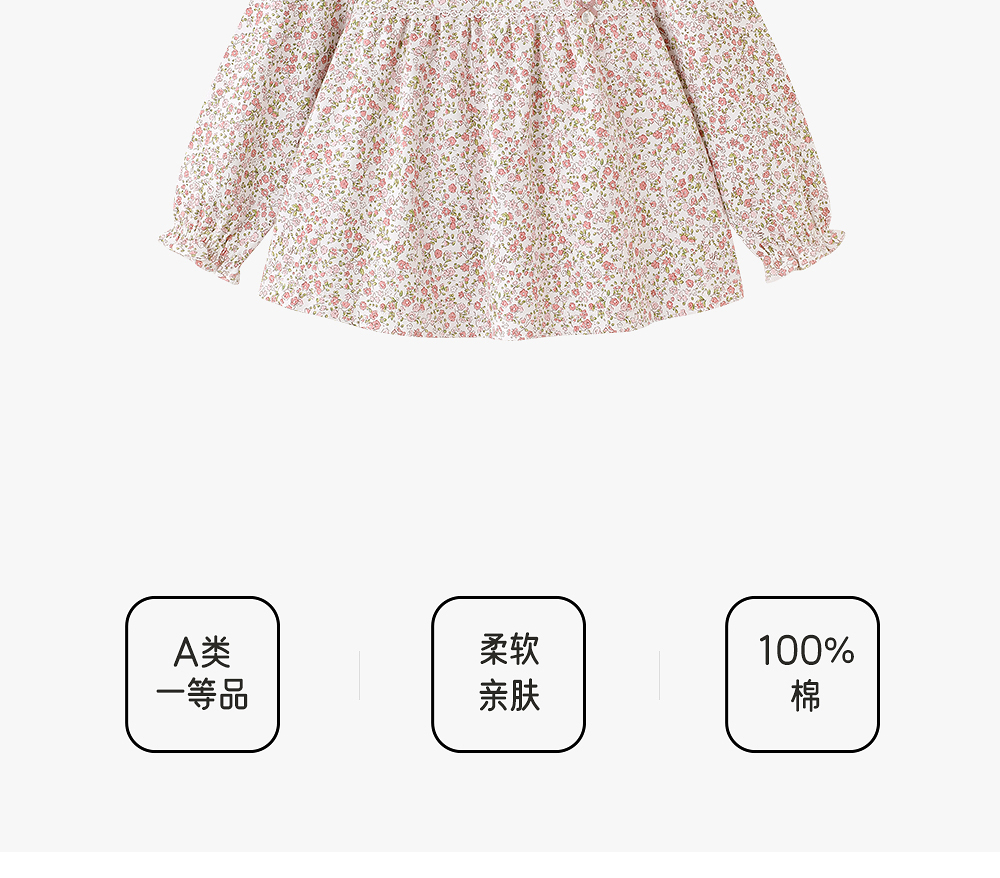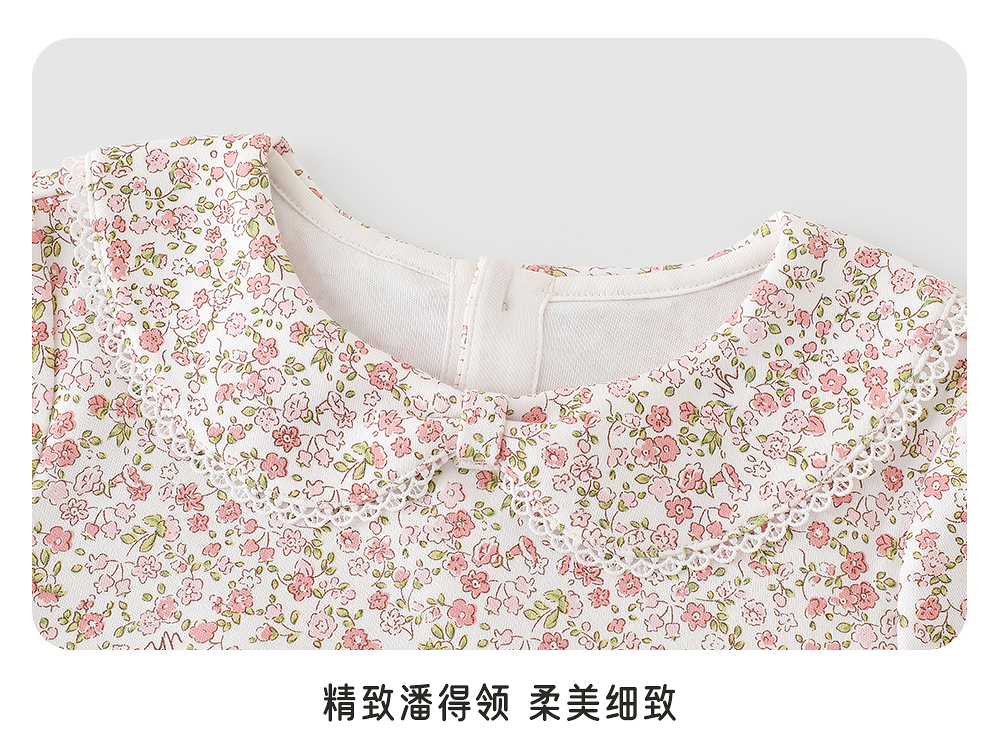 【商场同款】英氏儿童套头衫四季长袖碎花女童T恤纯棉针织上衣