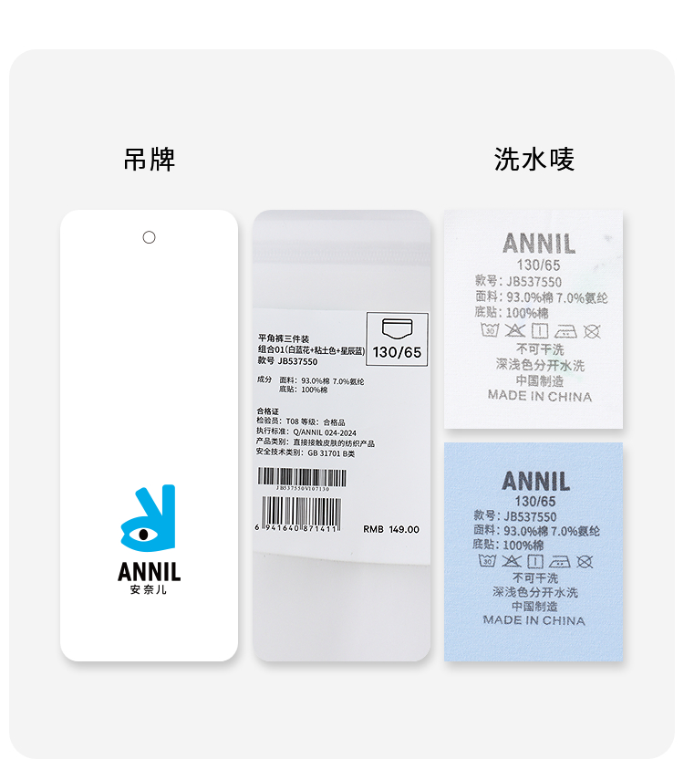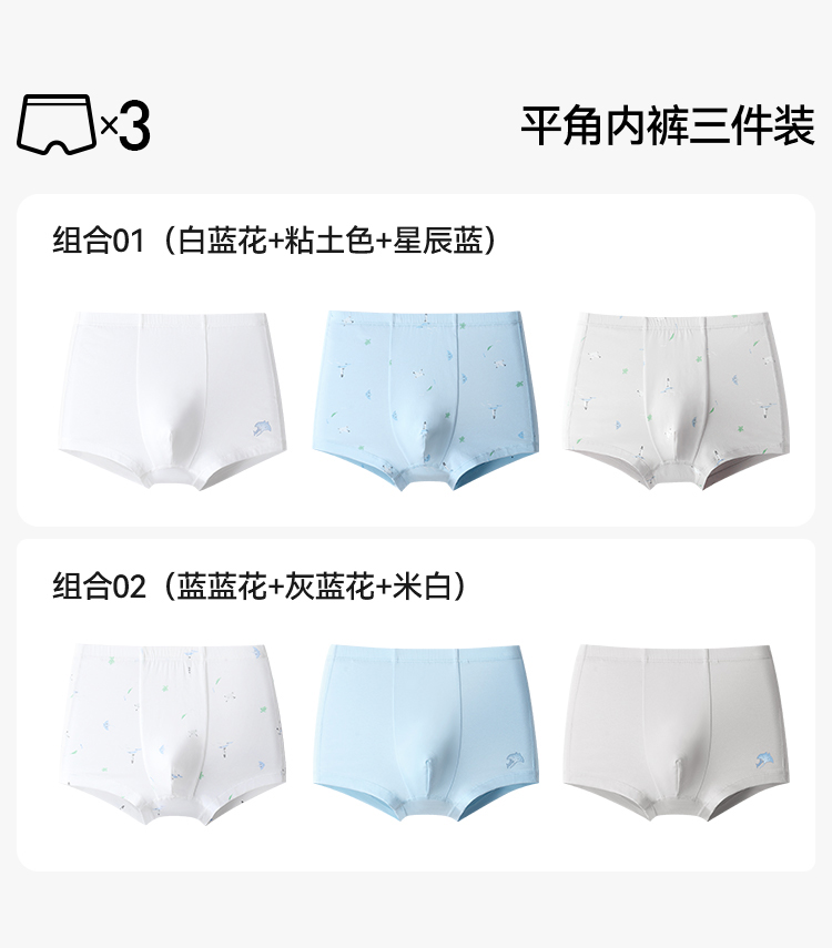 【3A抗菌棉内裤】男童平角裤三件装秋季新款安奈儿童装JB537550