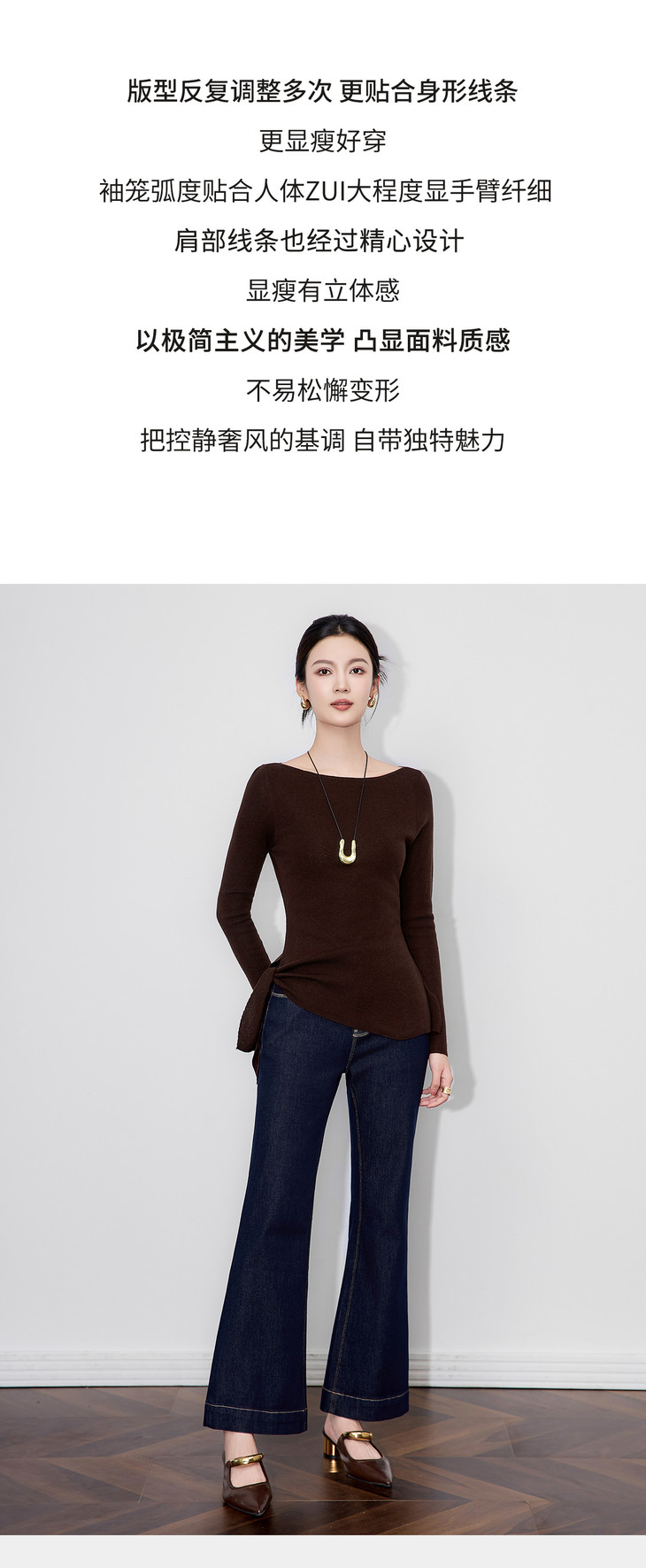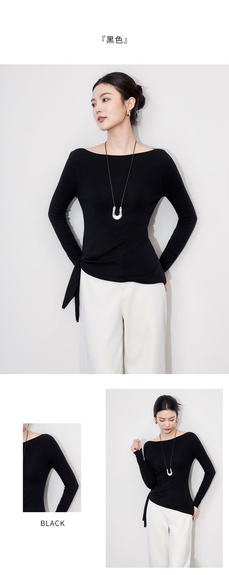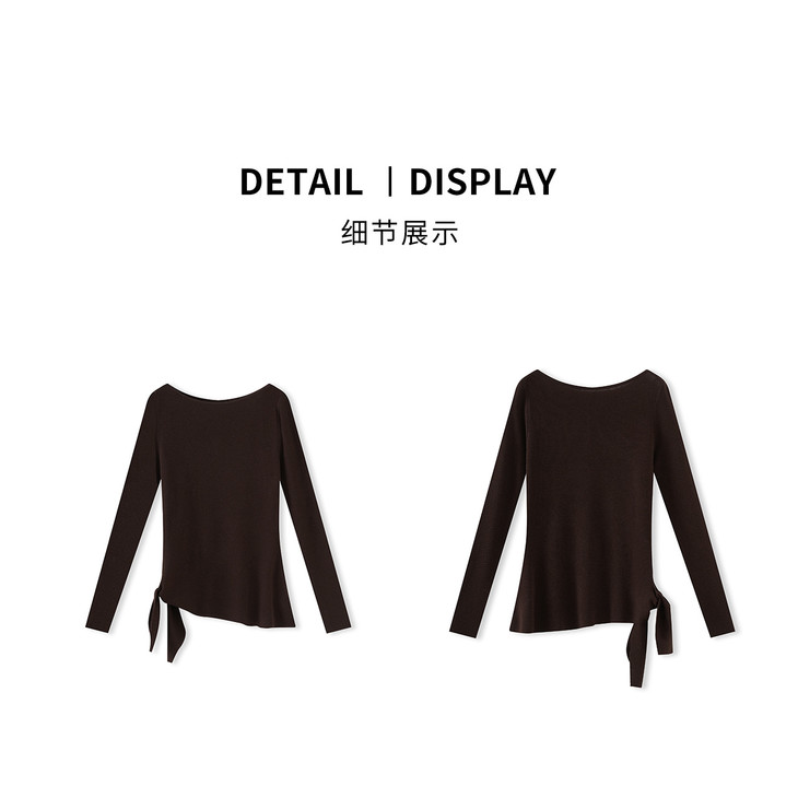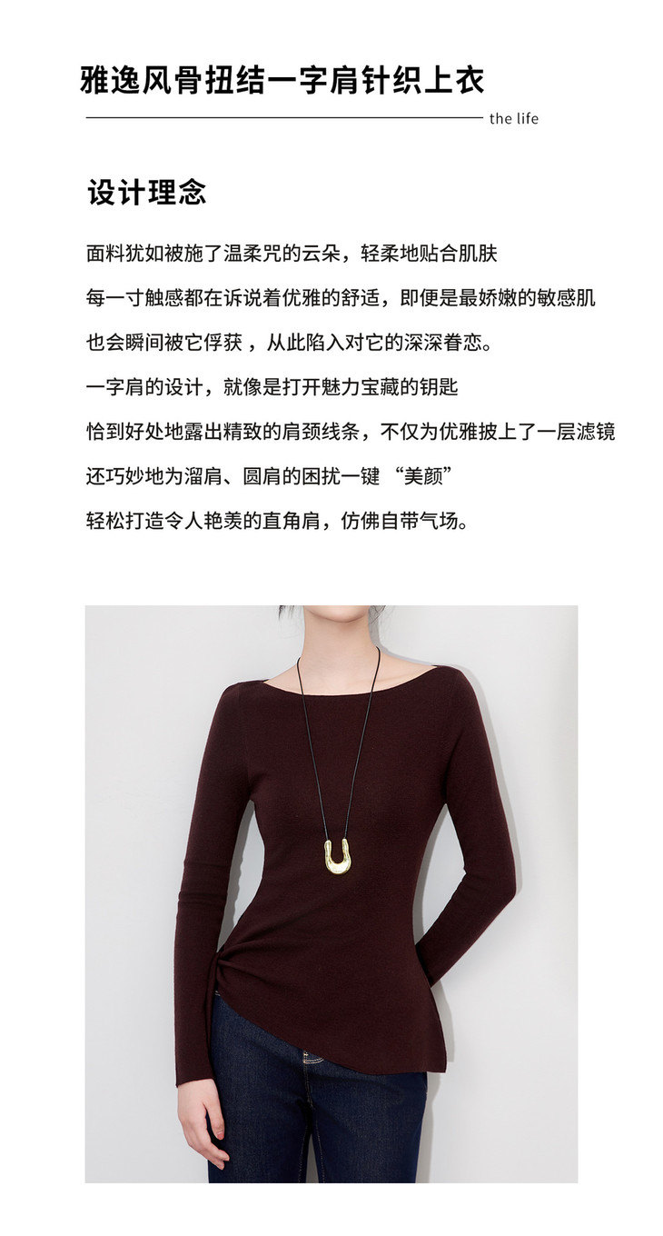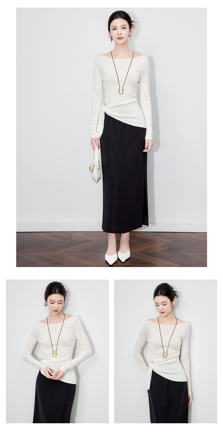 设计感一字领绑带羊毛针织衫,极简风收腰长袖上衣WLZD-2511101