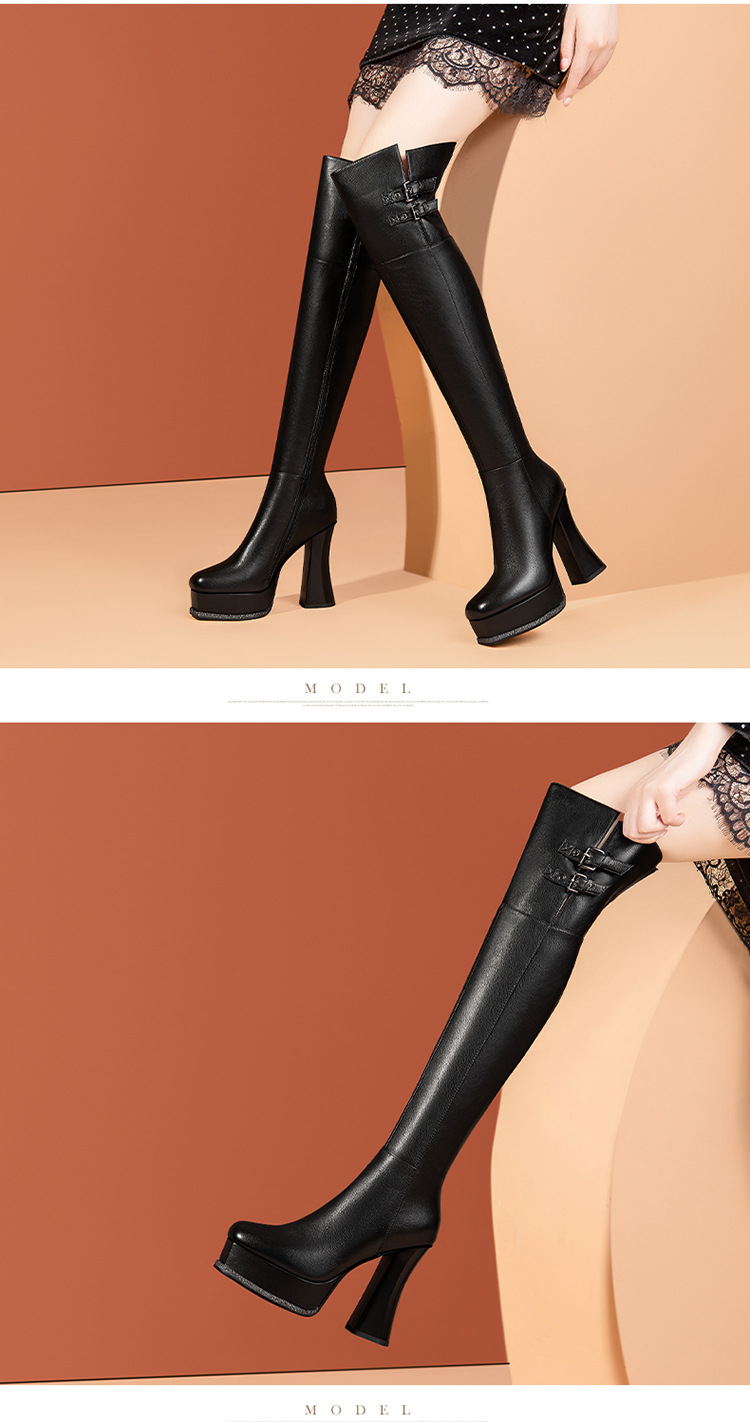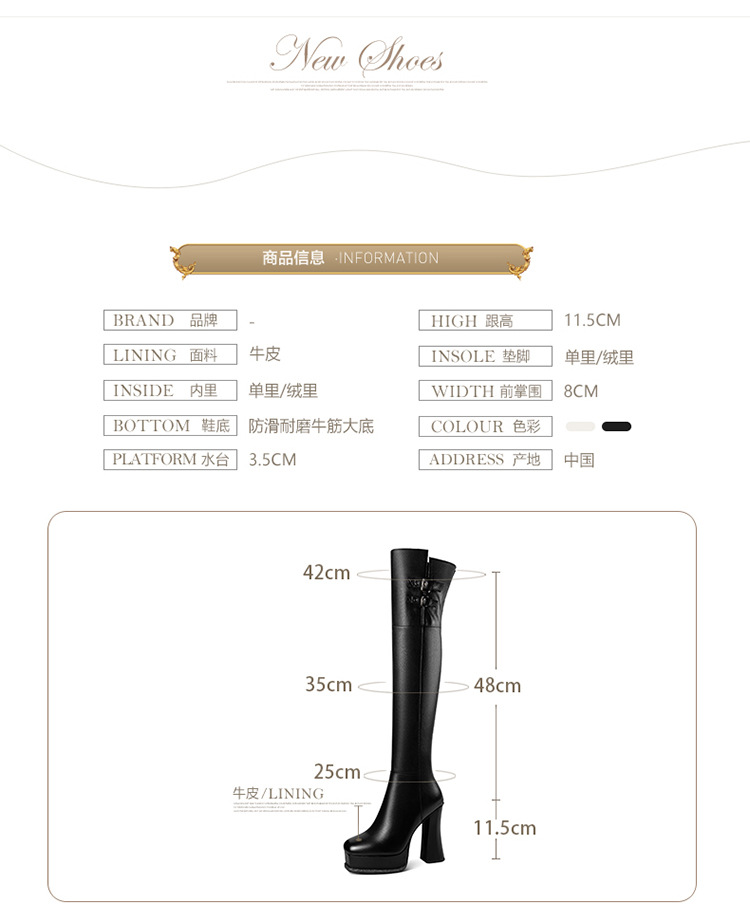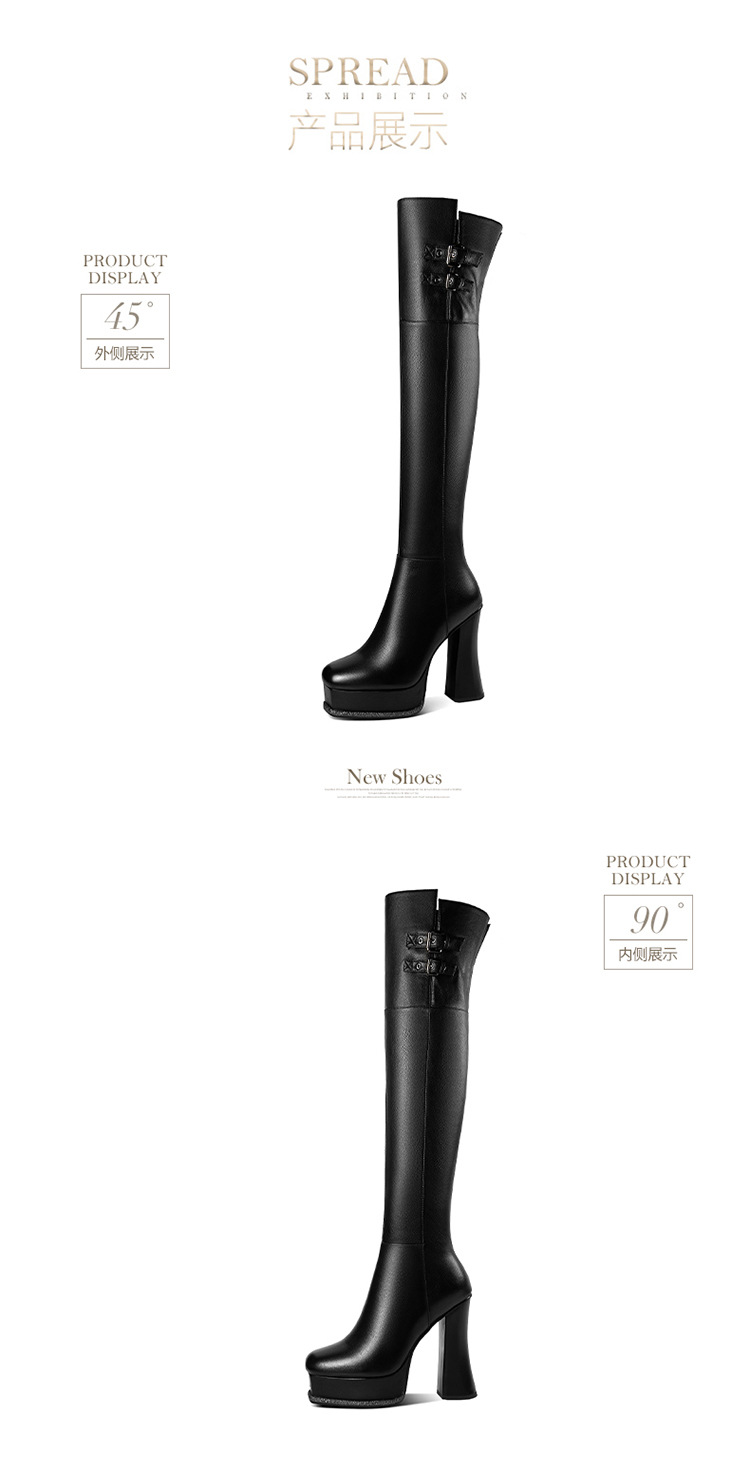过膝靴显瘦高筒靴,高跟粗跟防水台长靴JQR-35-17