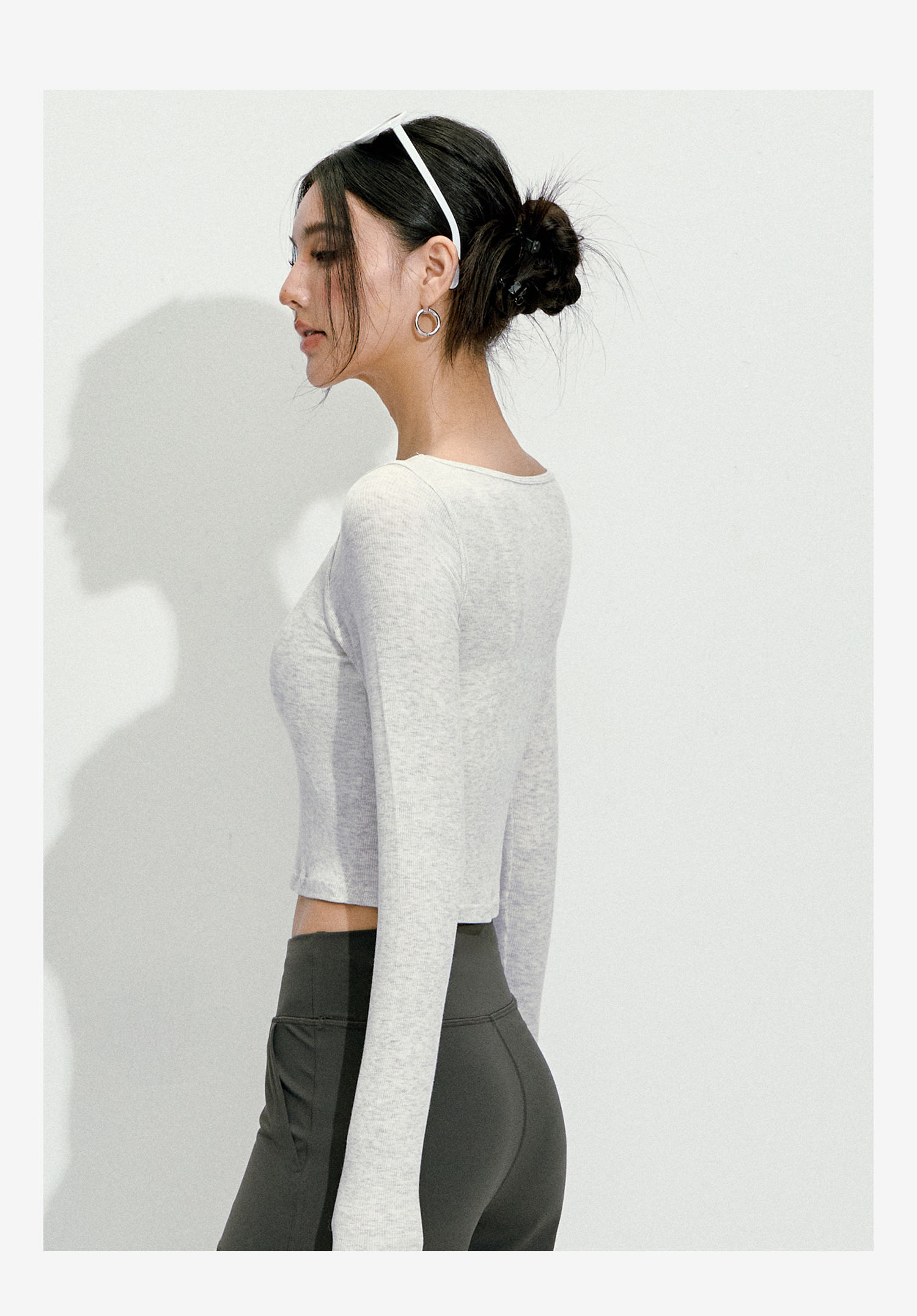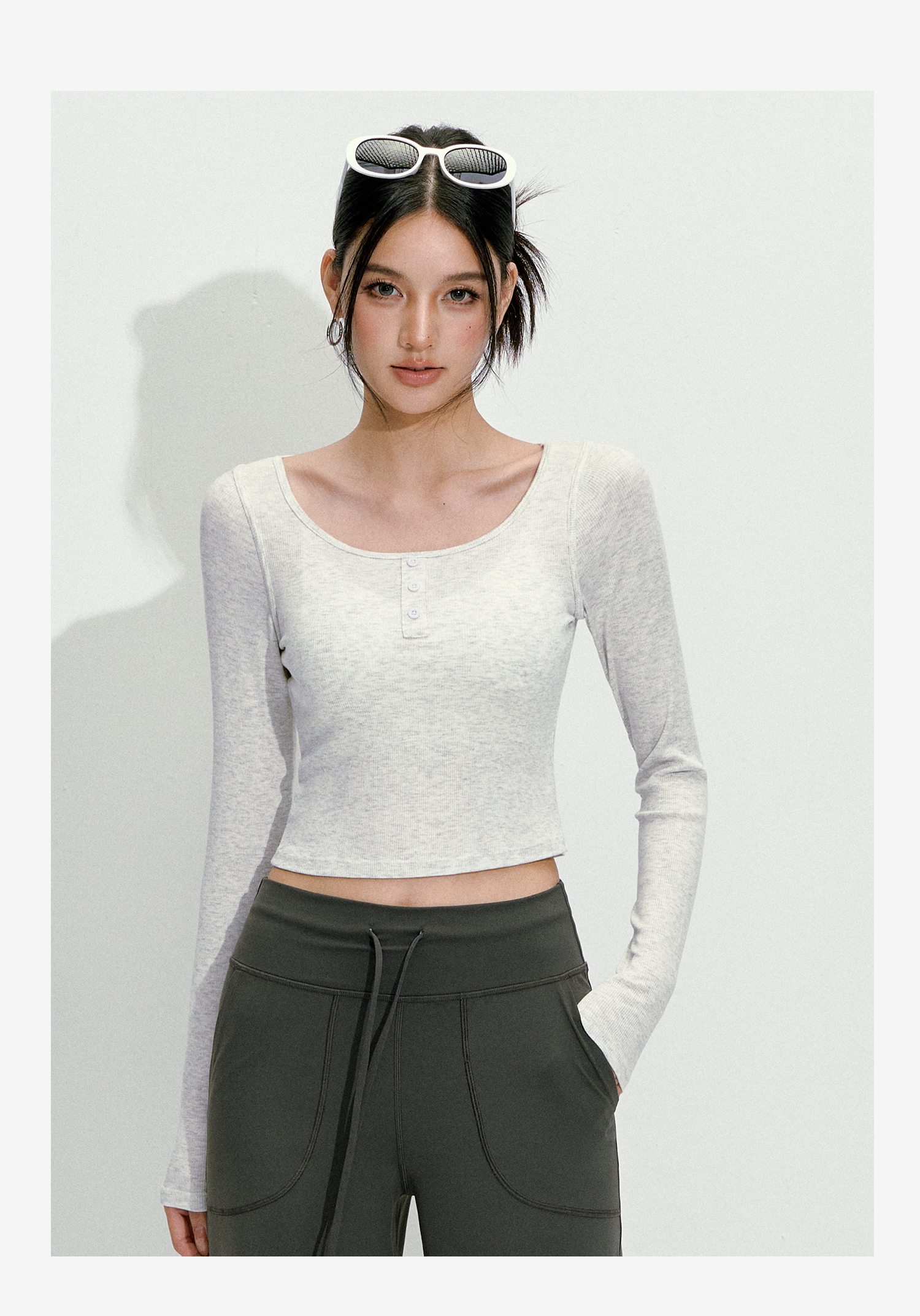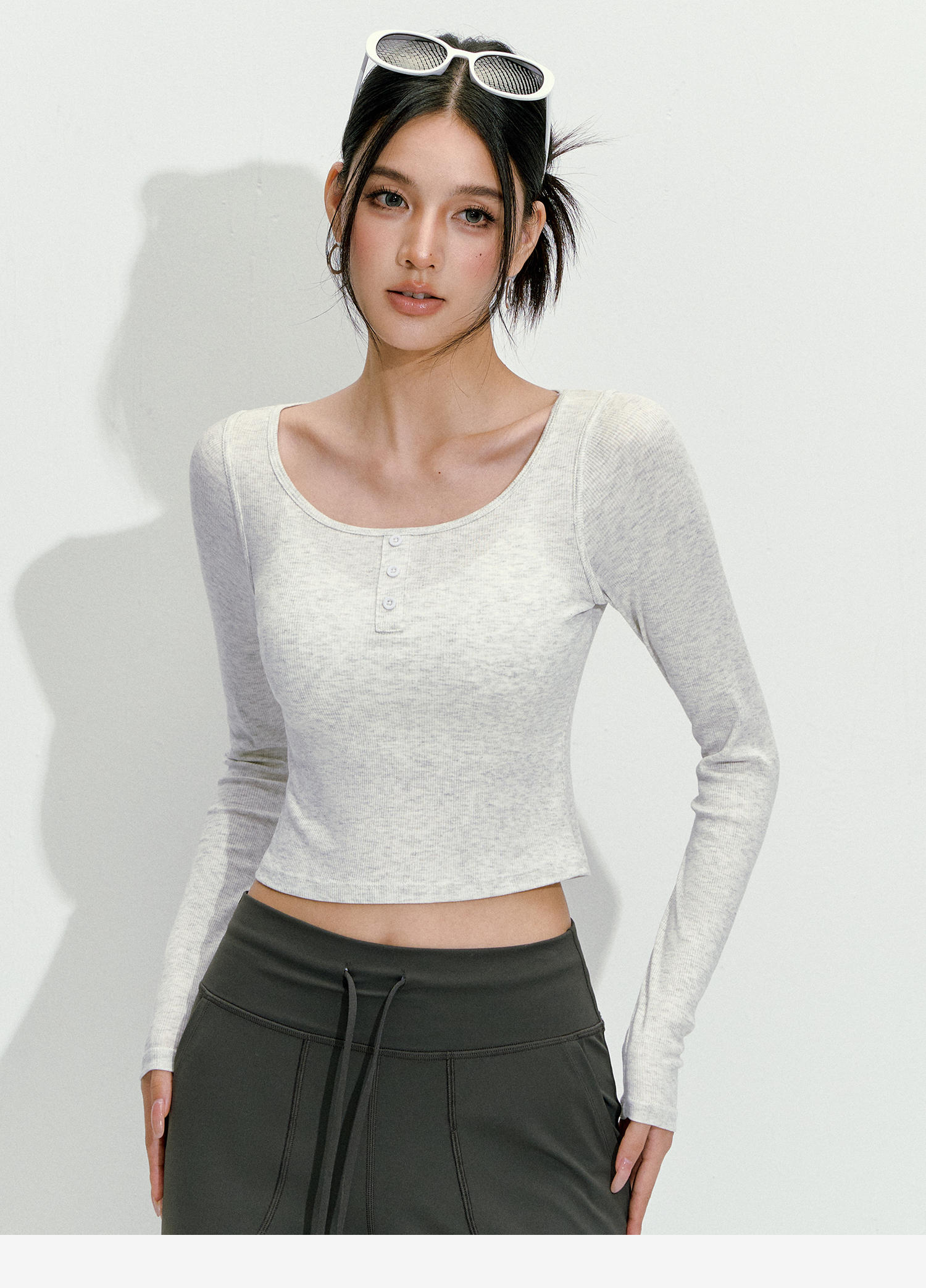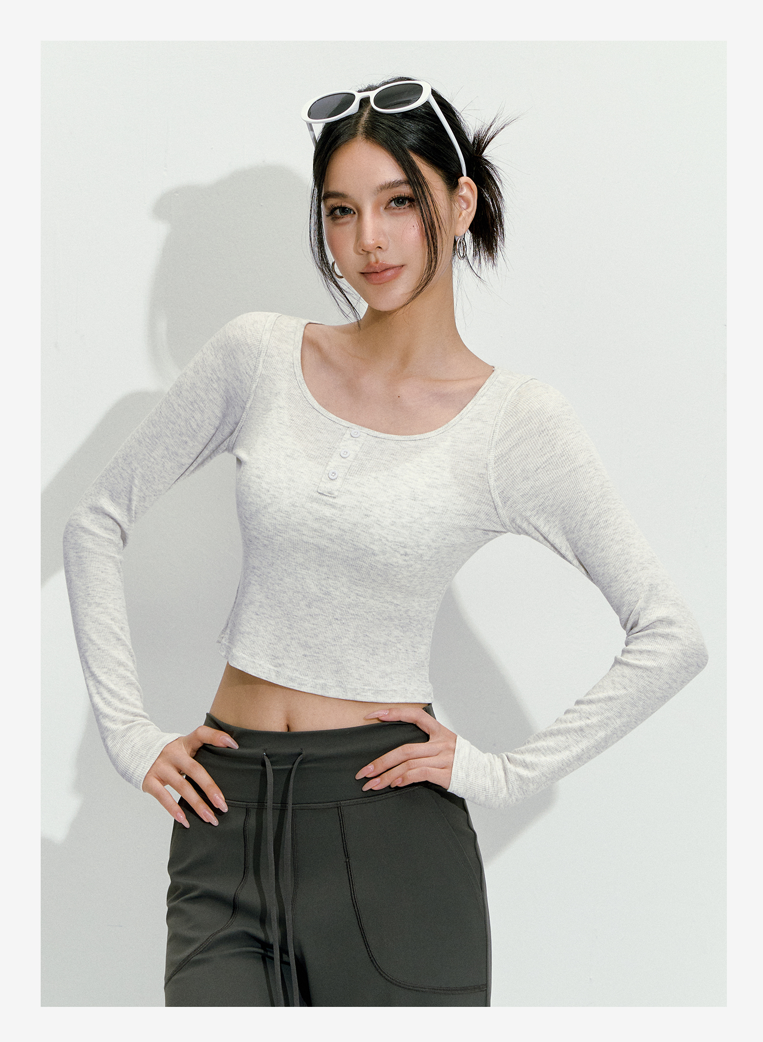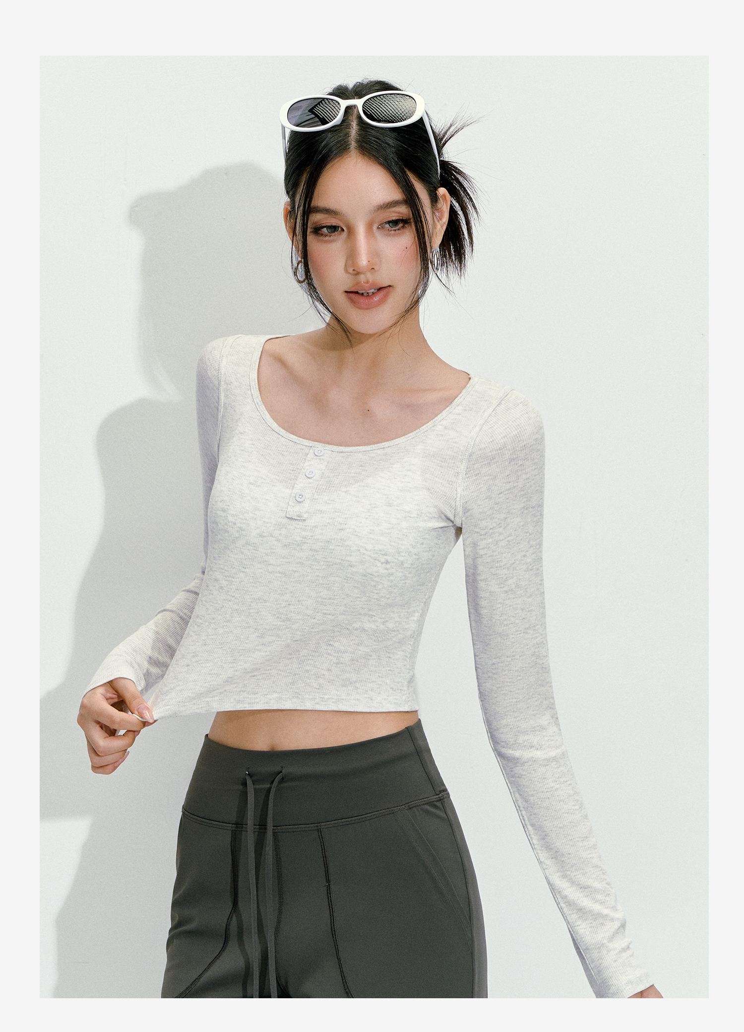 【限时秒】YOGACODE【火树银花系列】纯色短款长袖瑜伽服上衣紧身显瘦跑步健身时尚圆领外穿运动上衣女DWT125494