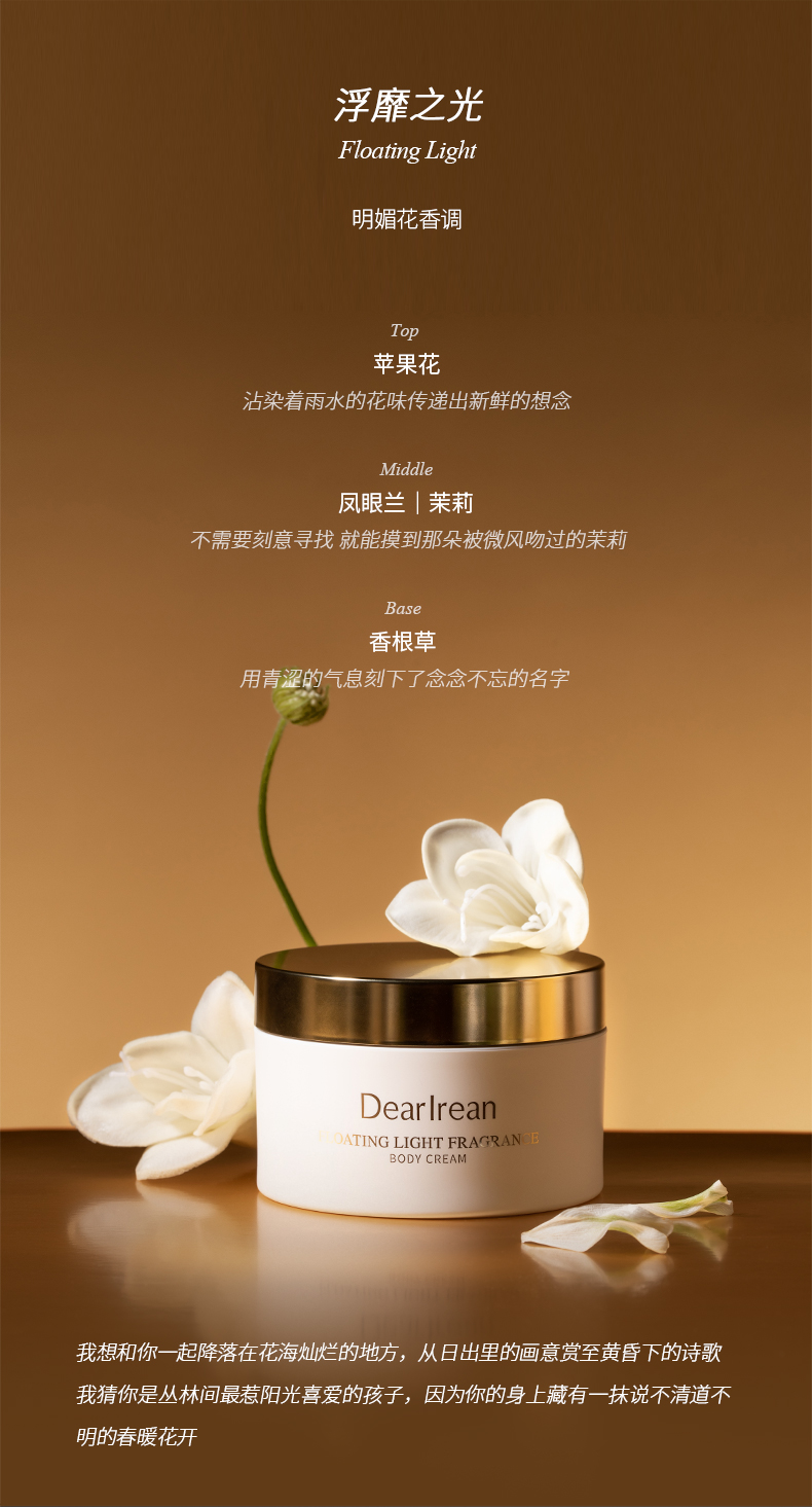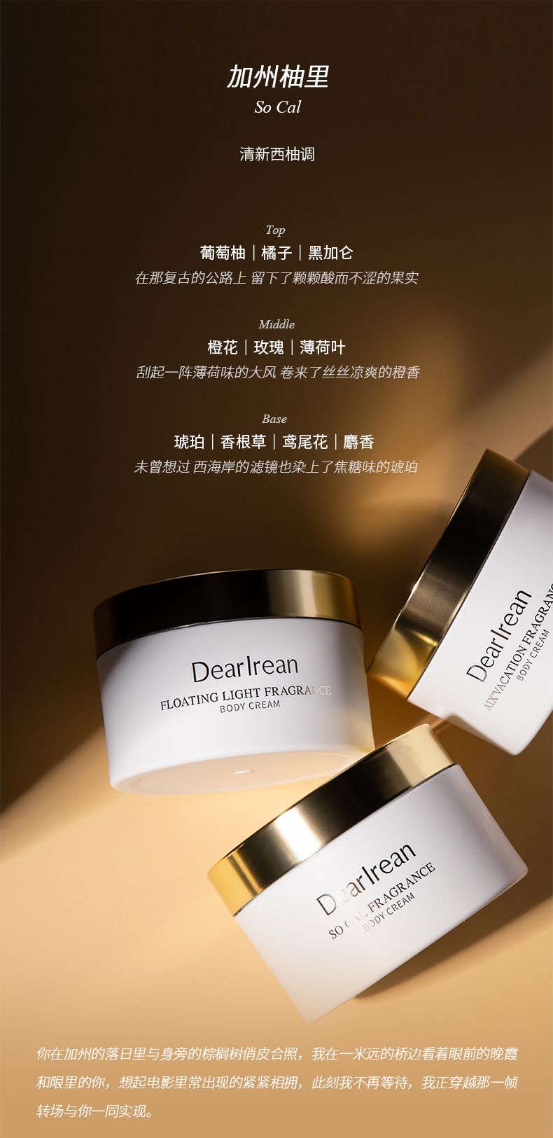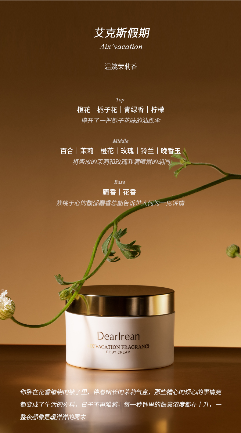注意:独特艾琳香氛身体冷霜目前有两种材质的包装,分别是pet塑料和玻璃,均是正品,随机发货不接受指定。