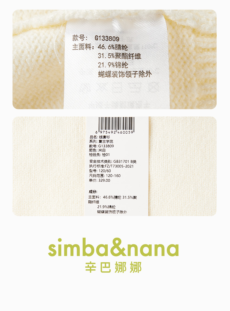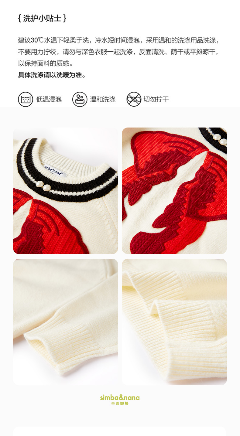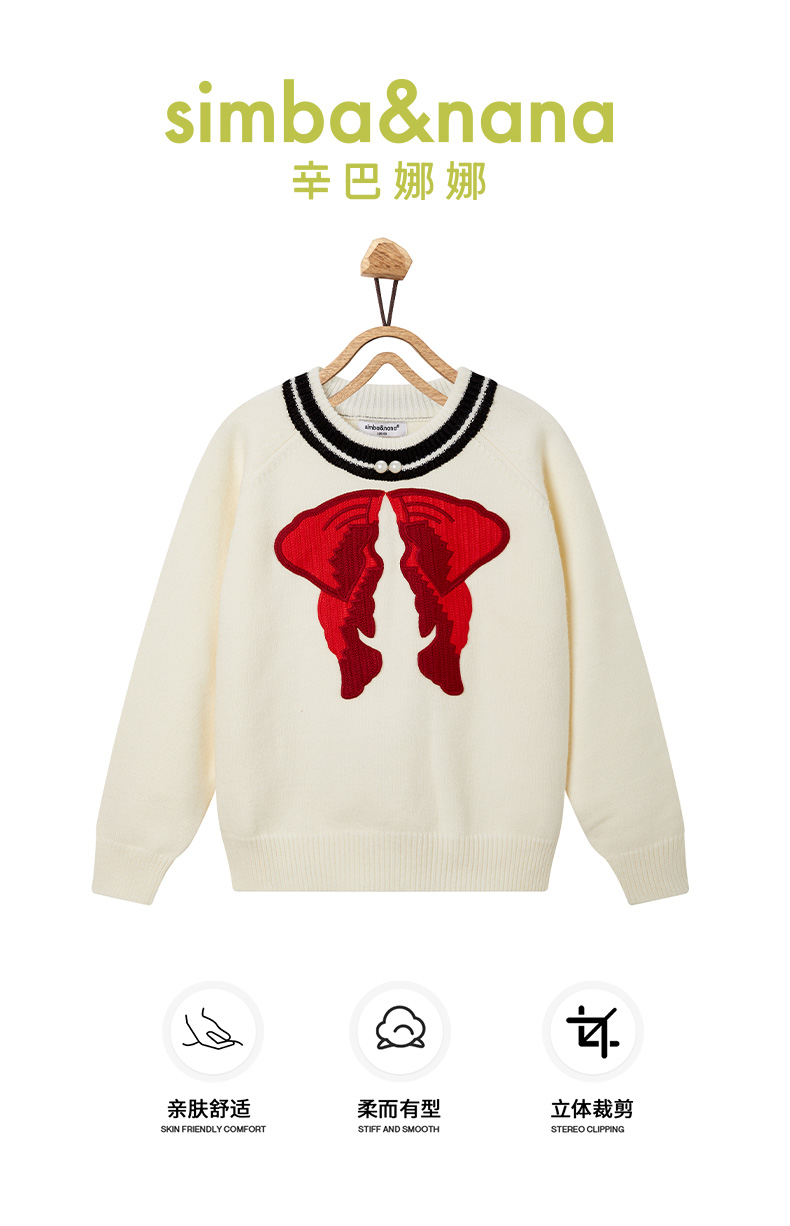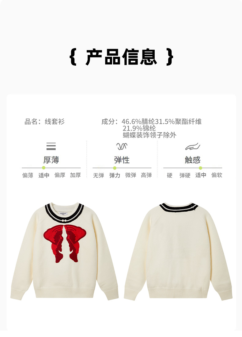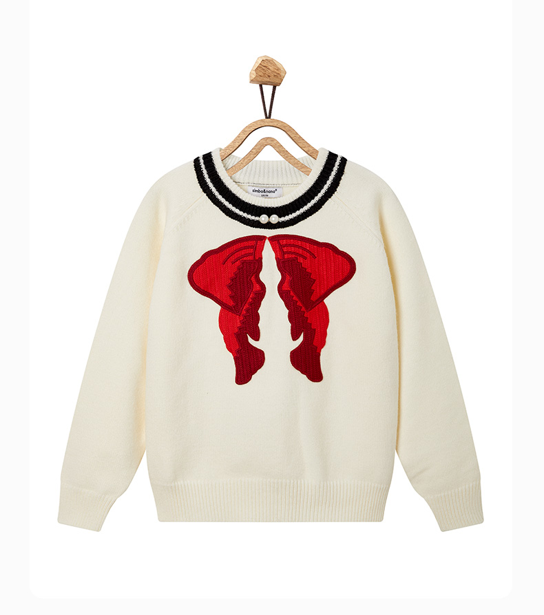 【辛巴娜娜】simbanana童装女中大童春秋款蝴蝶结嵌花毛衣