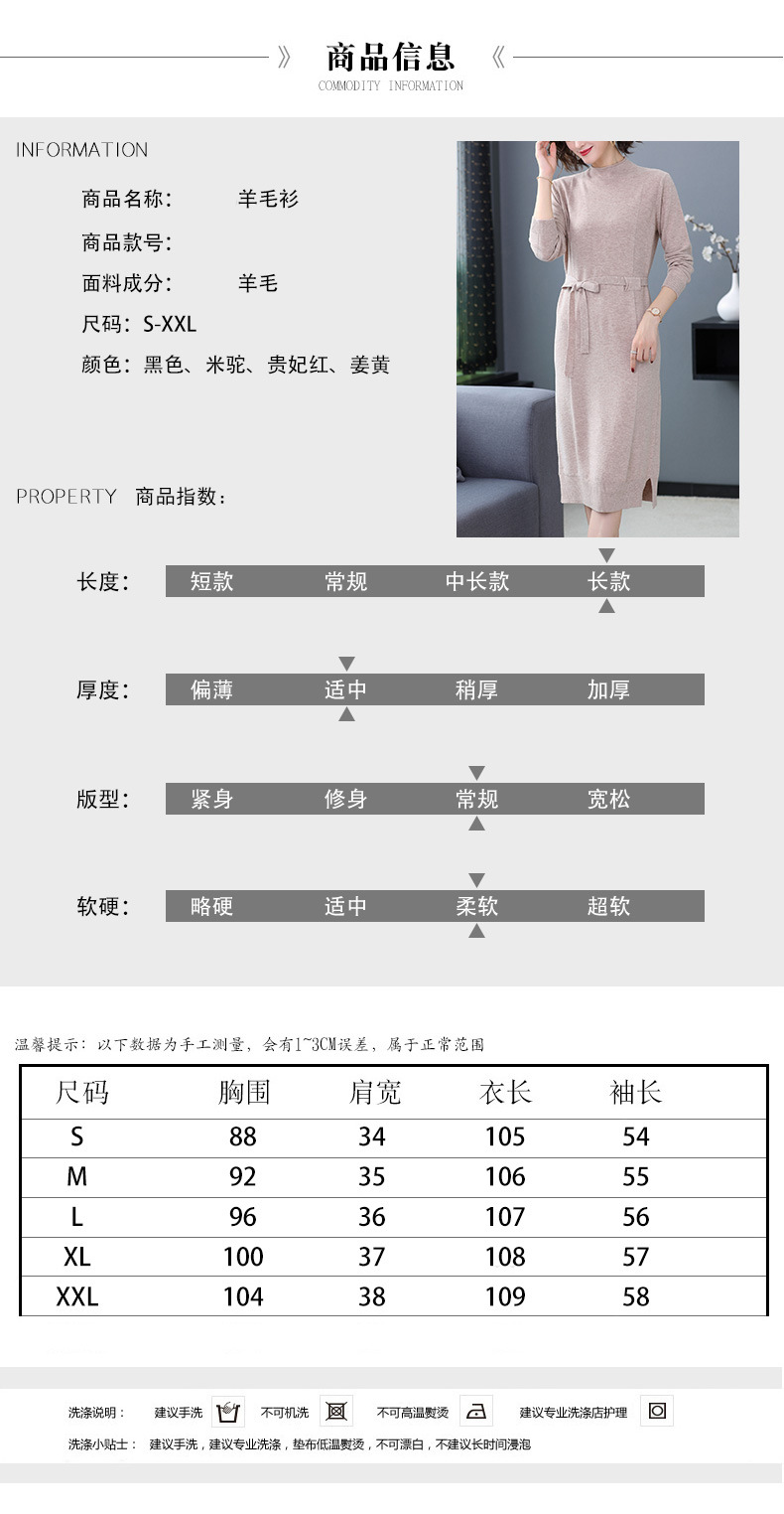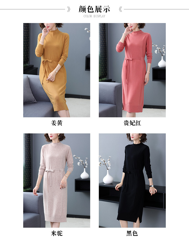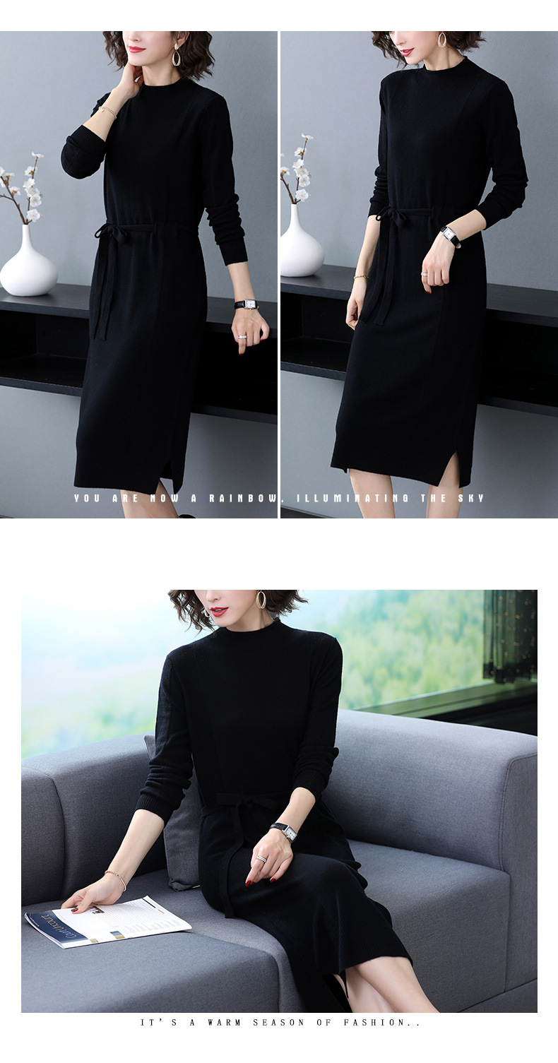 TZR-8AL-1619秋冬毛衣裙过膝长款配大衣的套头打底衫长裙羊毛衫