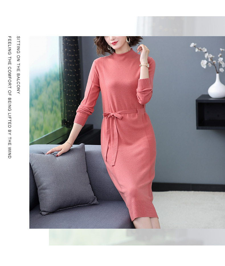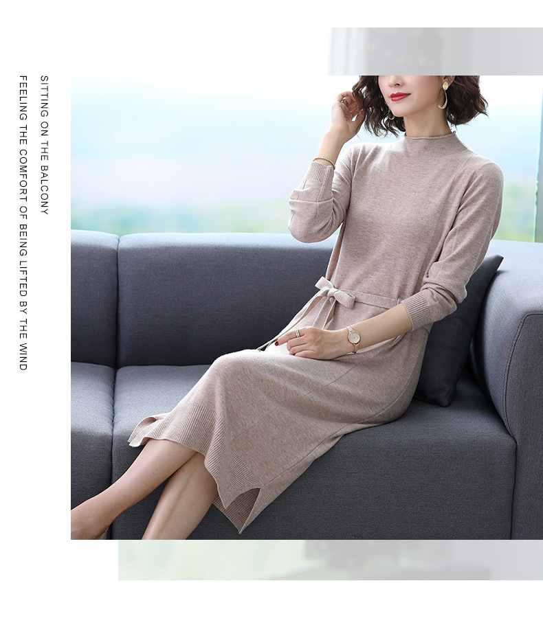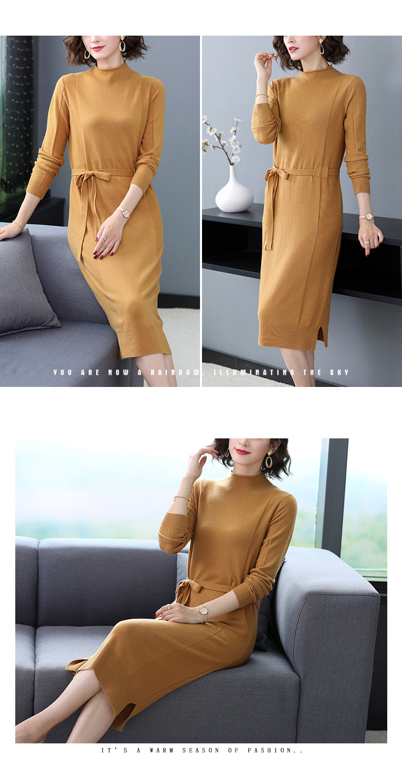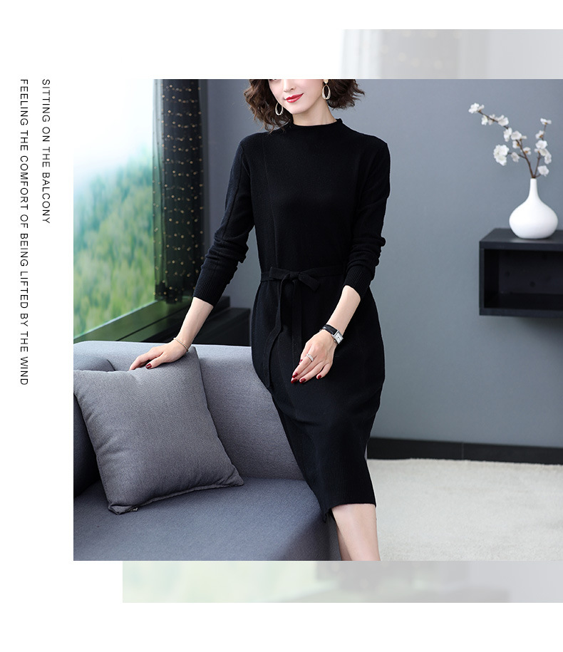 TZR-8AL-1619秋冬毛衣裙过膝长款配大衣的套头打底衫长裙羊毛衫
