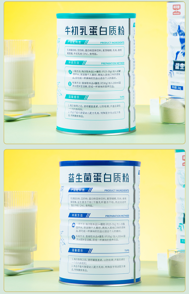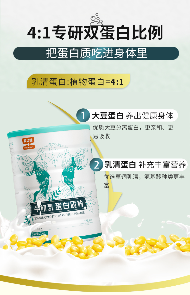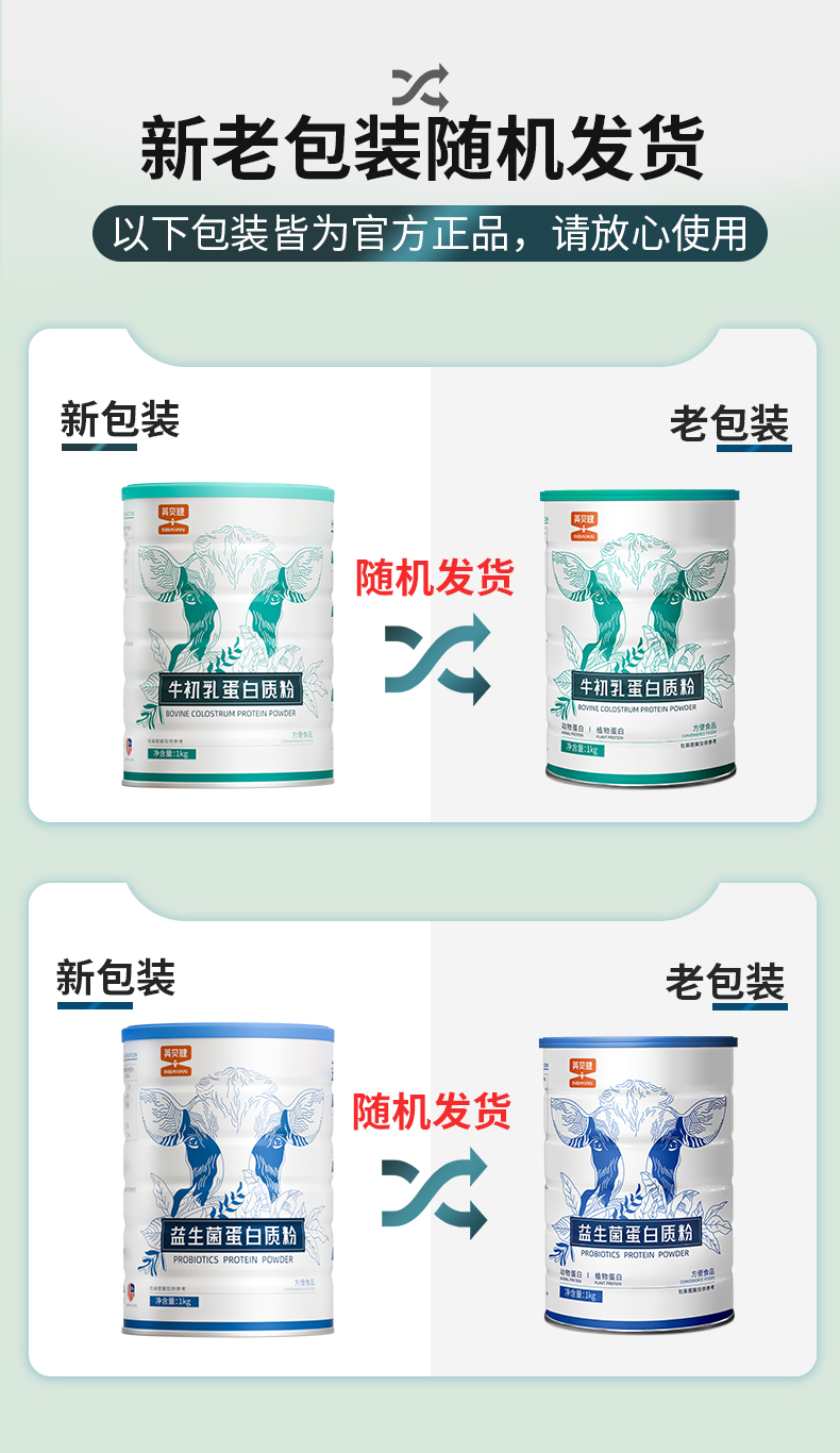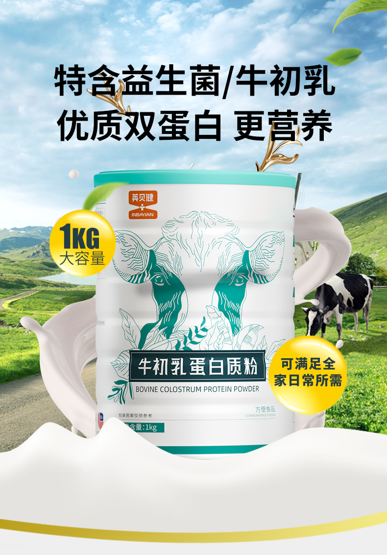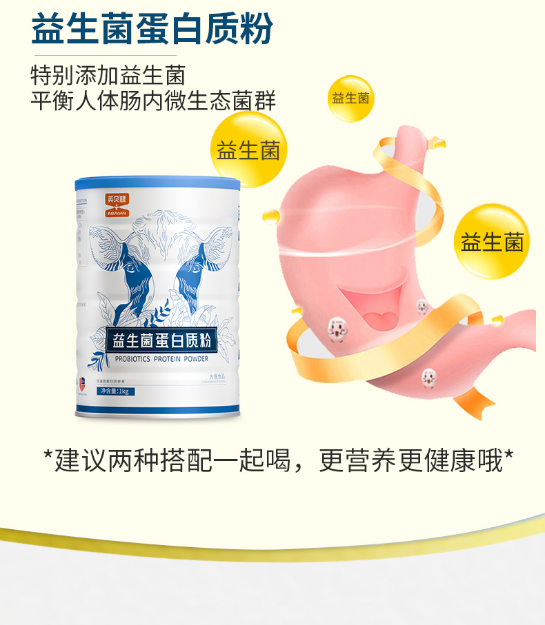 英贝健牛初乳蛋白粉1kg+益生菌蛋白粉1kg 各1罐