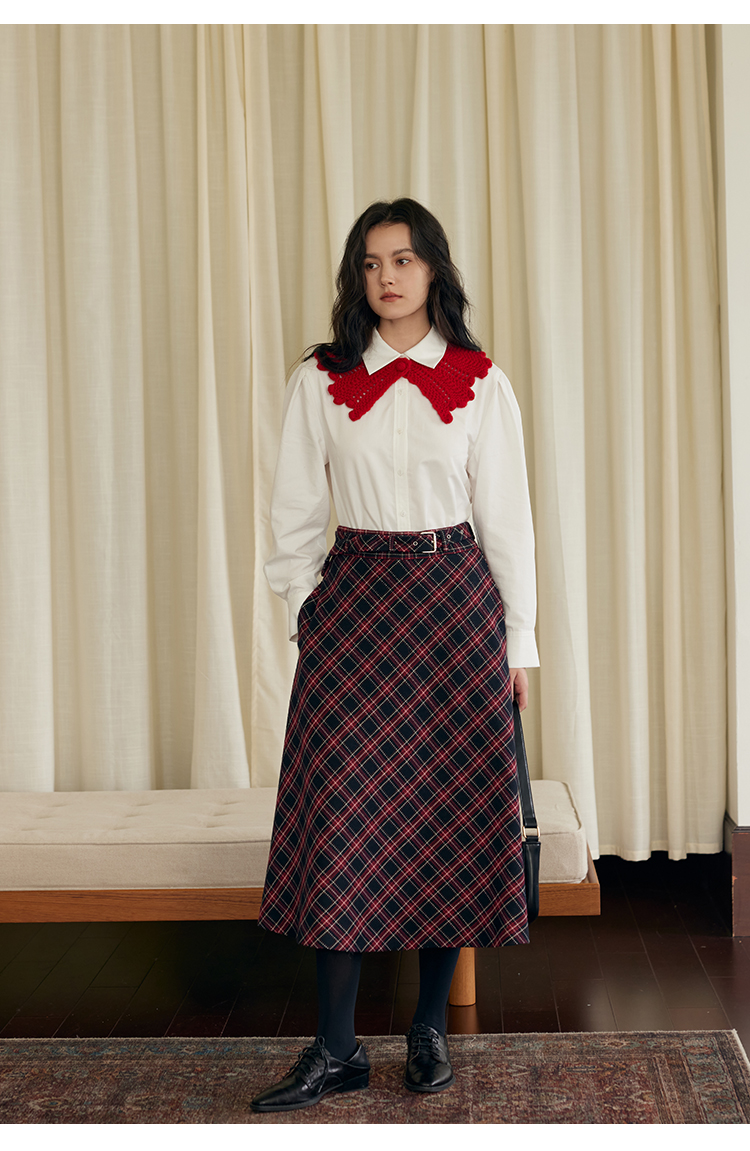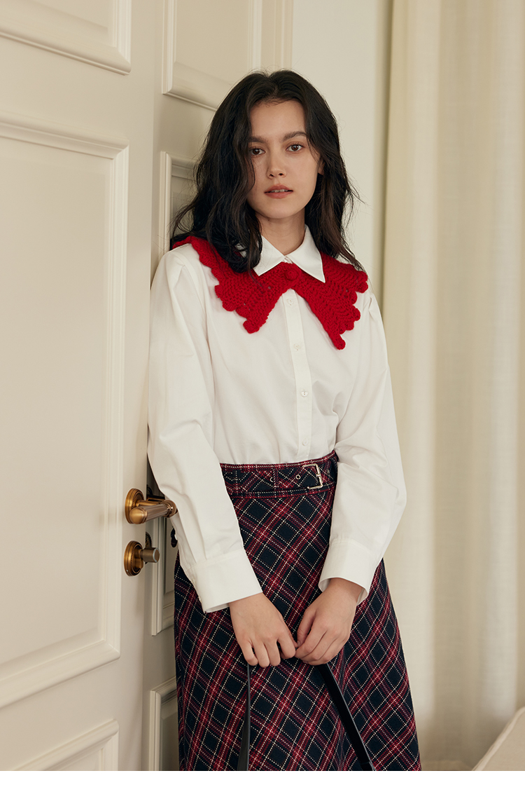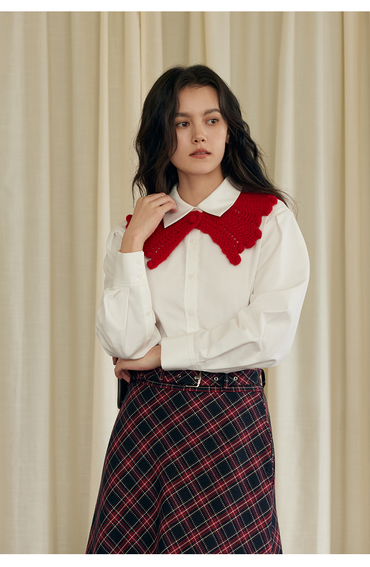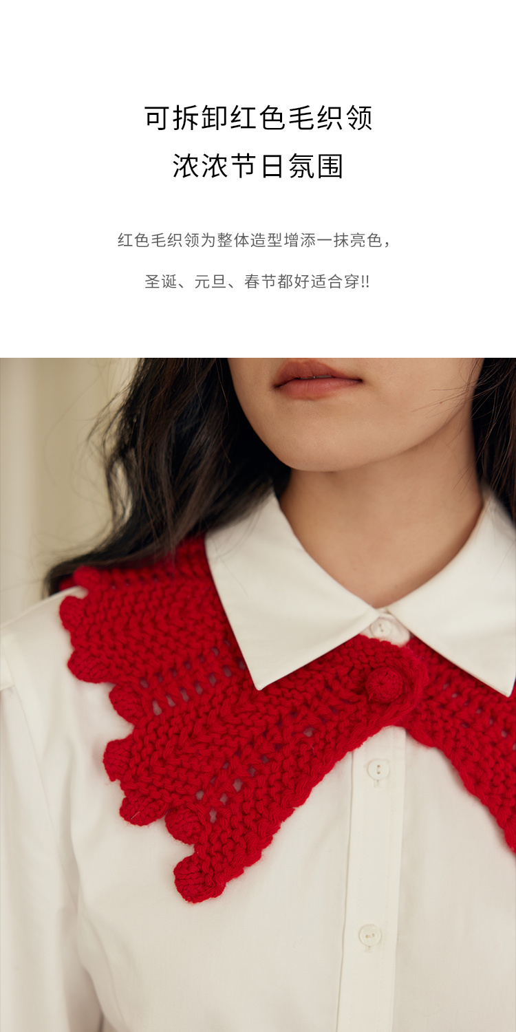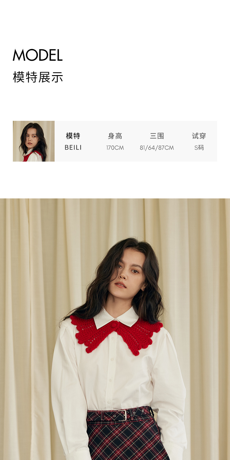 HeyDress法式花边领衬衫女秋冬复古别致设计感白色磨毛内搭上衣