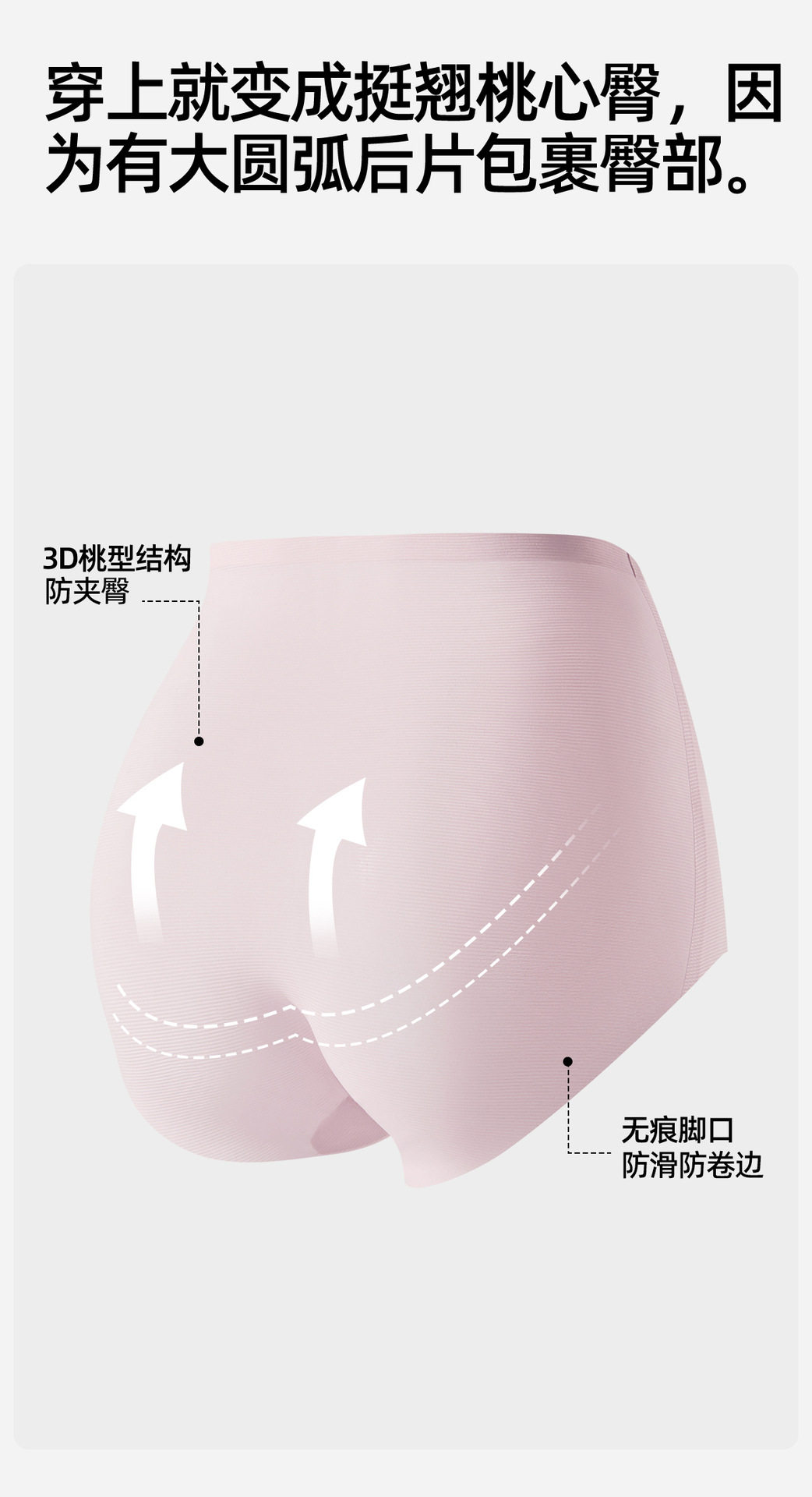 XY-1520   【1条】冰丝无痕高腰内裤女收腹夏季超薄蜜桃臀隐形女士三角裤 商品图4