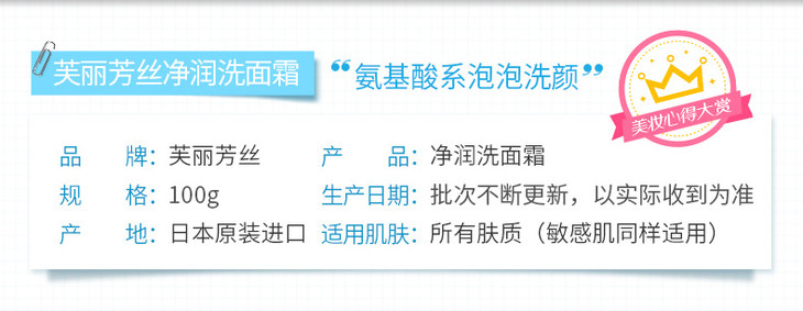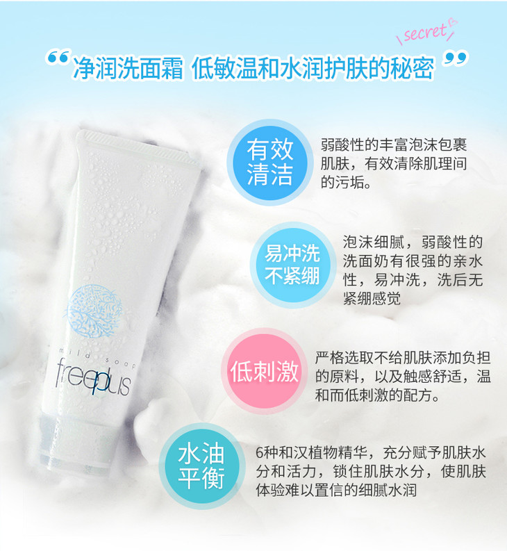 freeplus芙丽芳丝 净润洗面霜100g氨基酸洗面奶洁面乳
