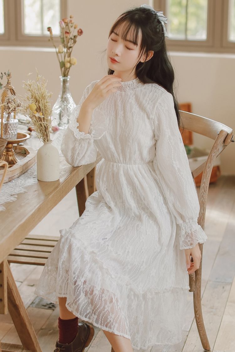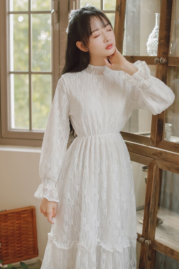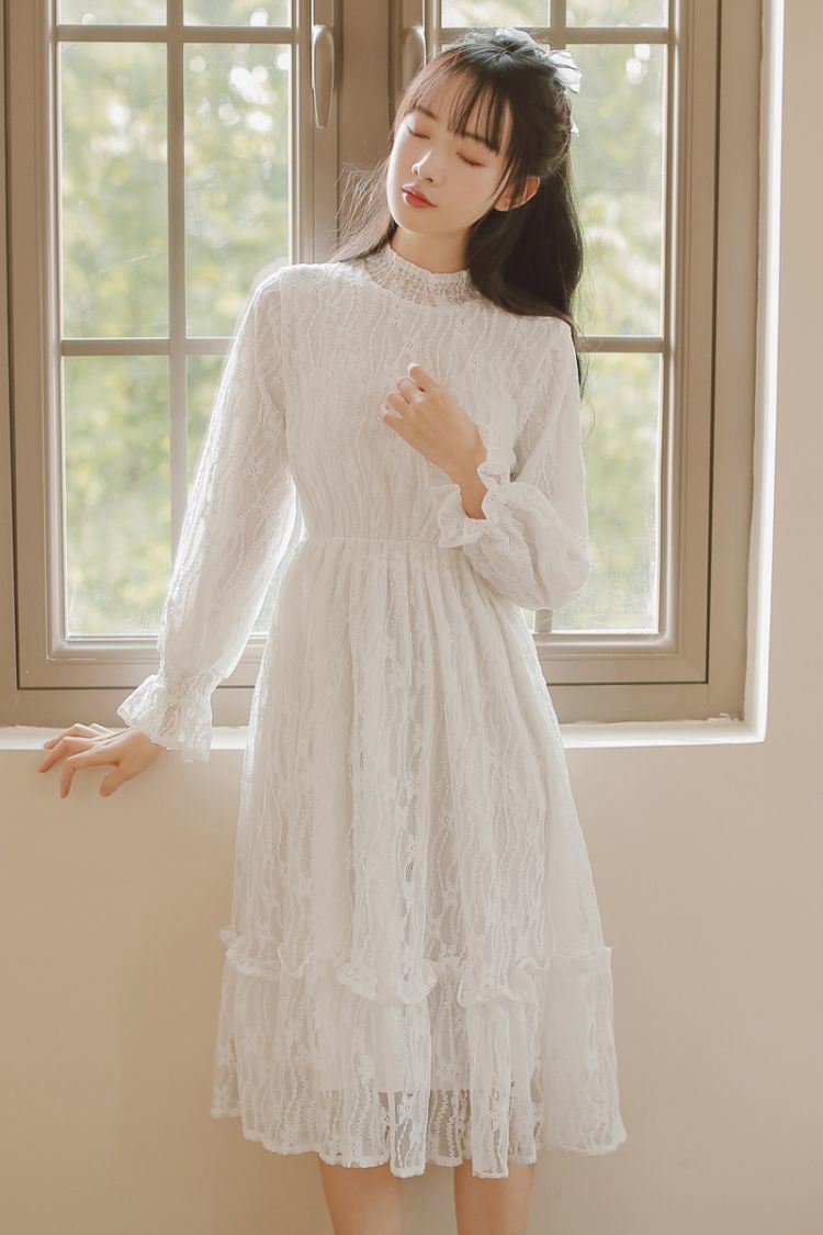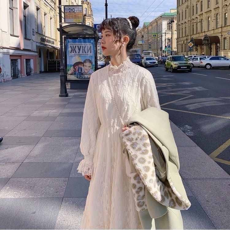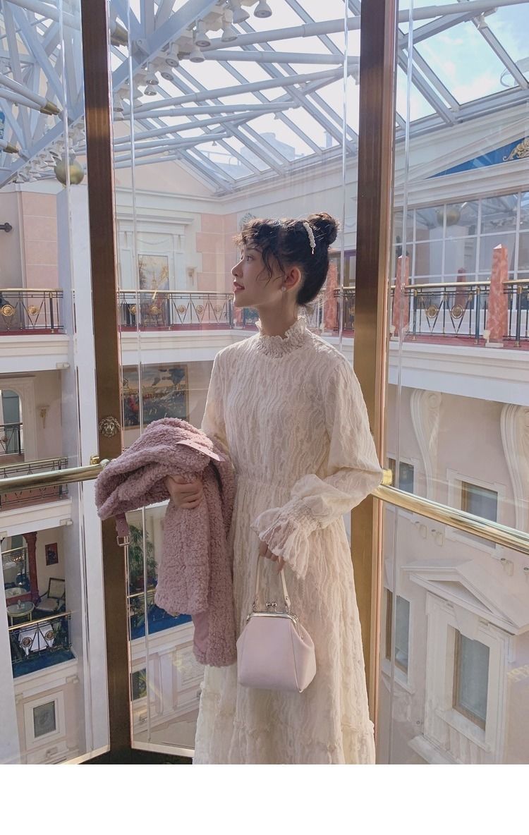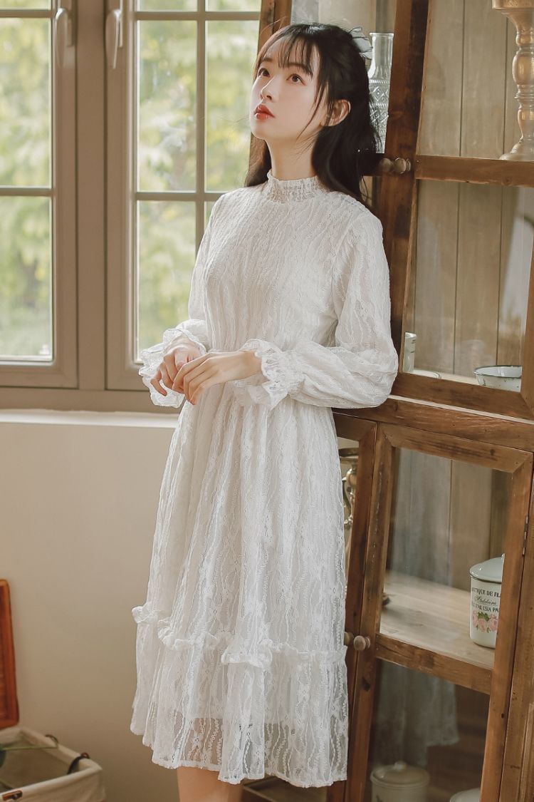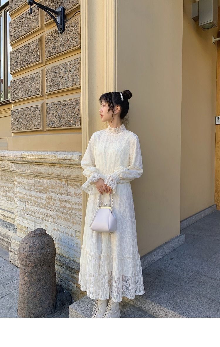 加绒/不加绒中长款连衣裙秋冬新款蕾丝加厚内搭配大衣的打底裙子