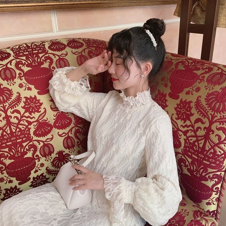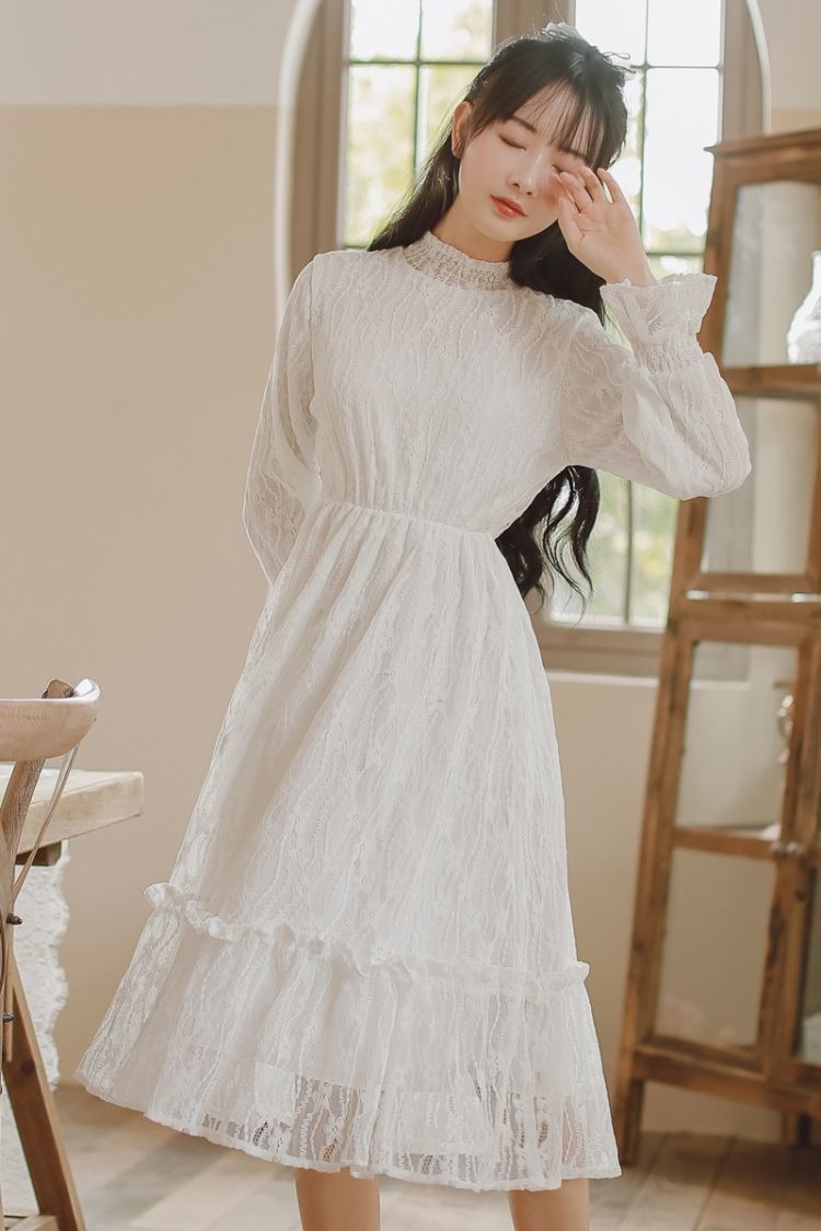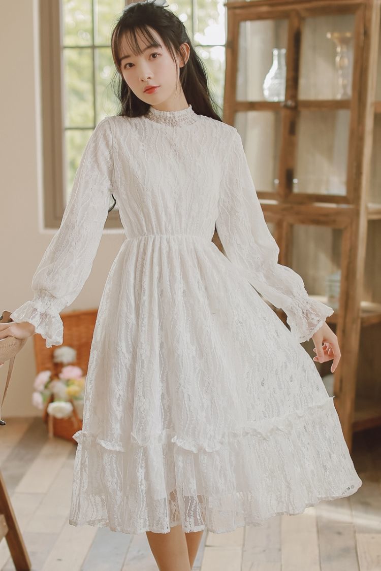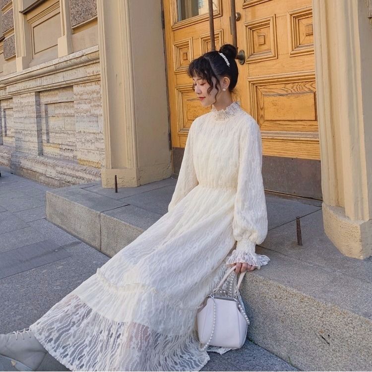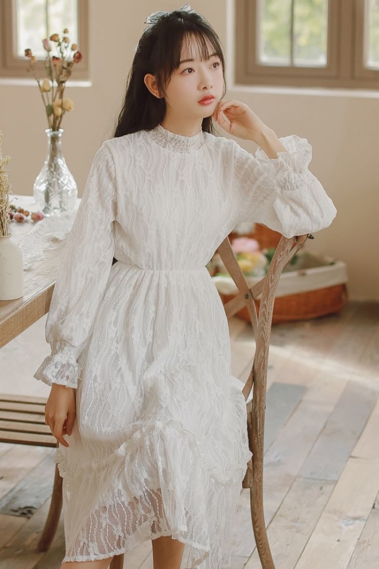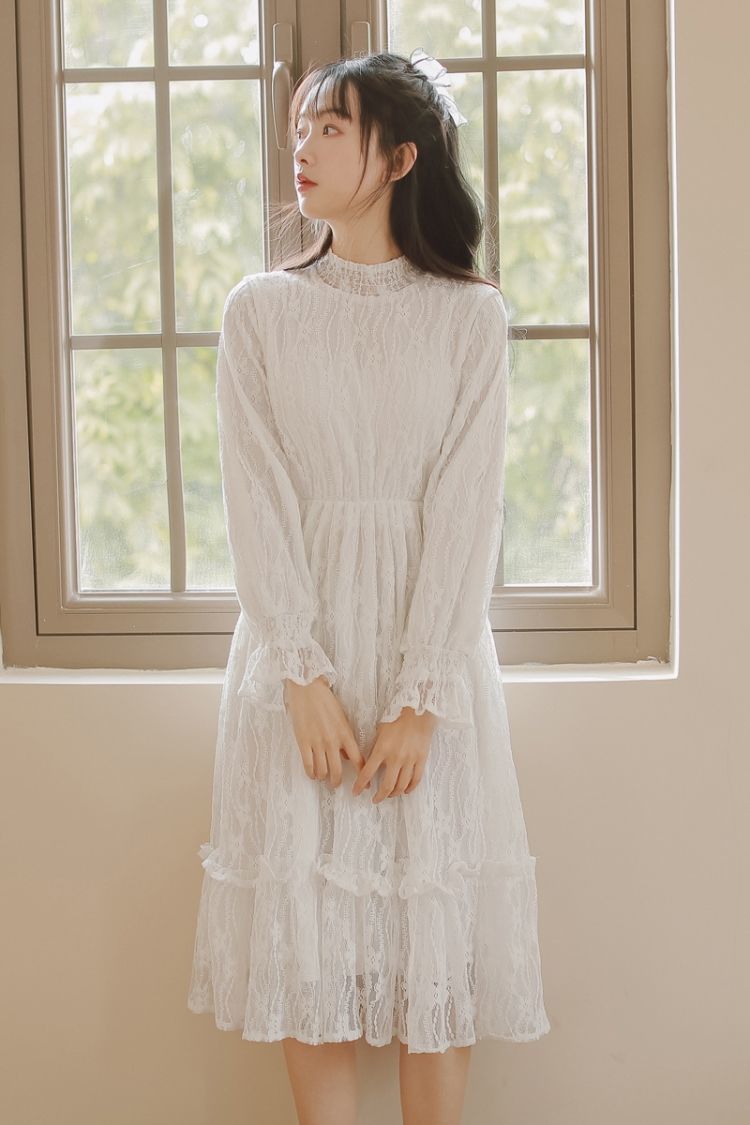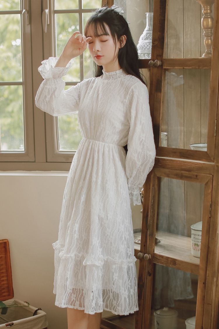 加绒/不加绒中长款连衣裙秋冬新款蕾丝加厚内搭配大衣的打底裙子