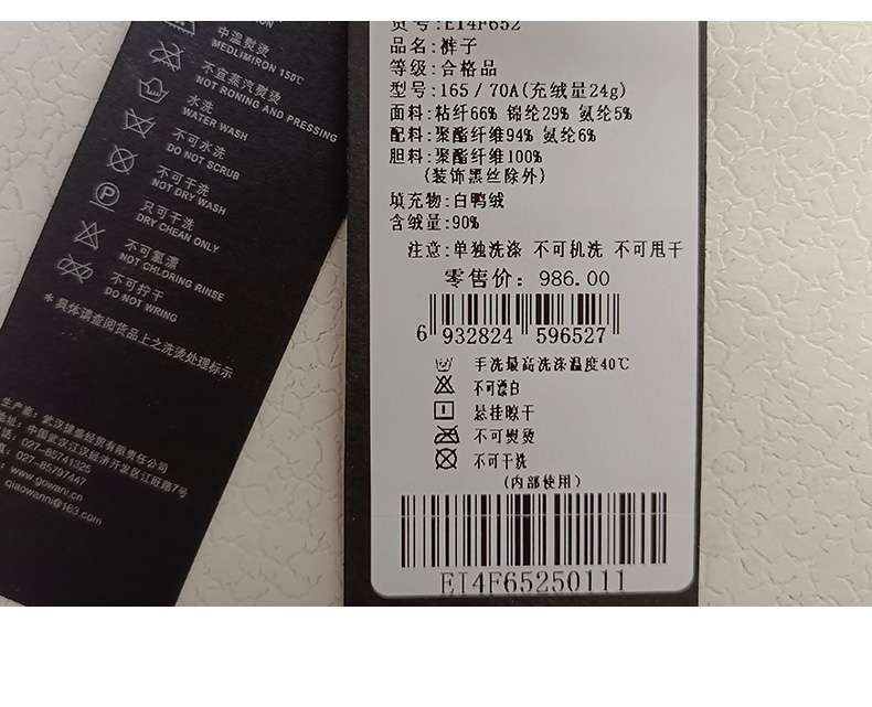 乔万尼冬季新款羽绒裤哈伦设计休闲舒适百搭长裤EI4F652