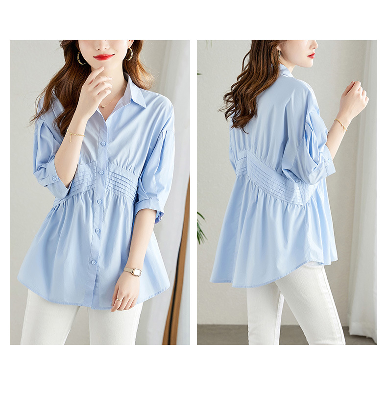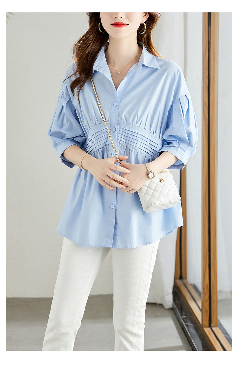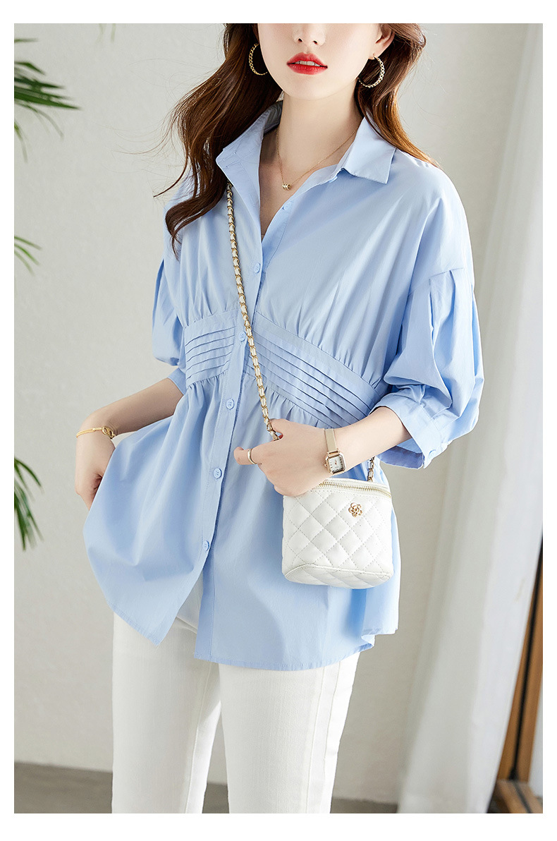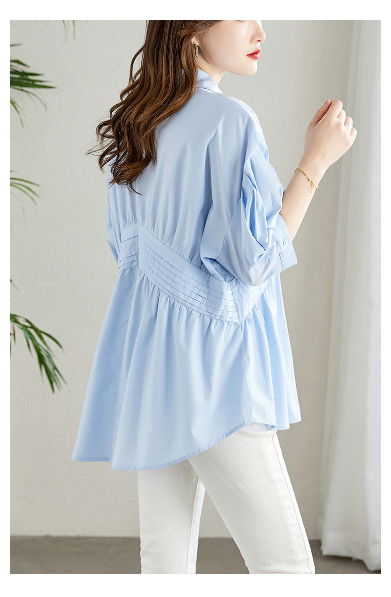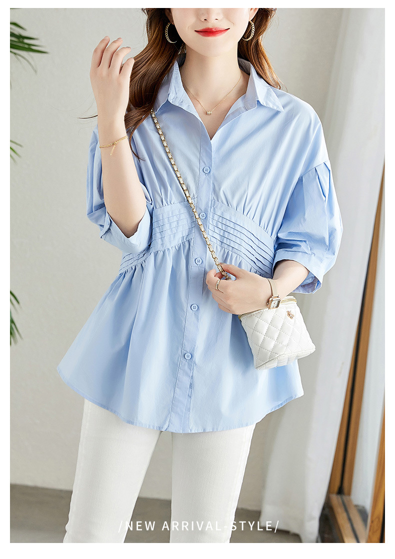 纯棉塔克褶衬衫七分袖别致上衣宽松显瘦衬衣MJ-23060
