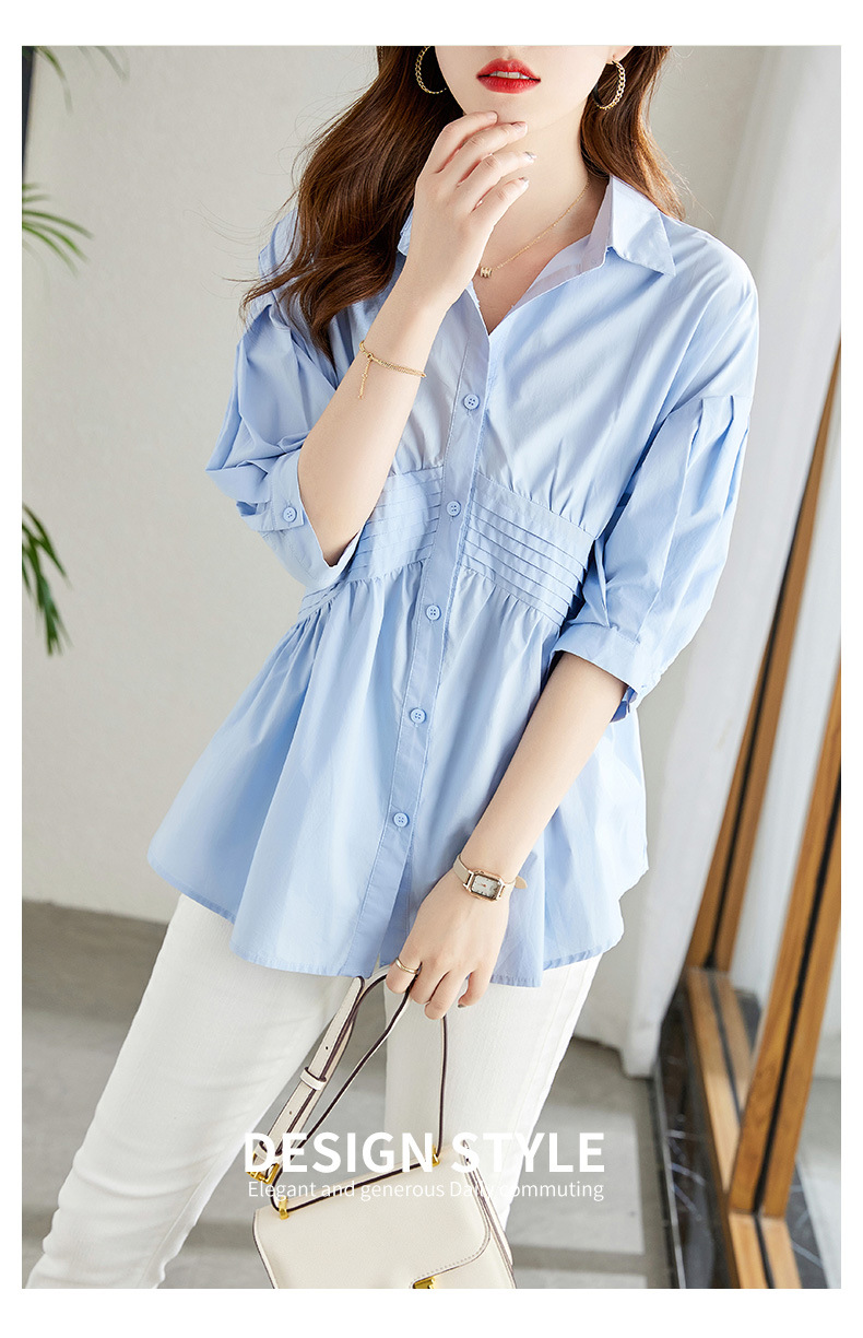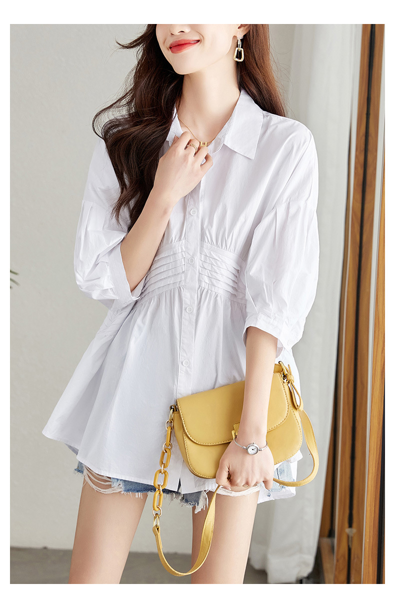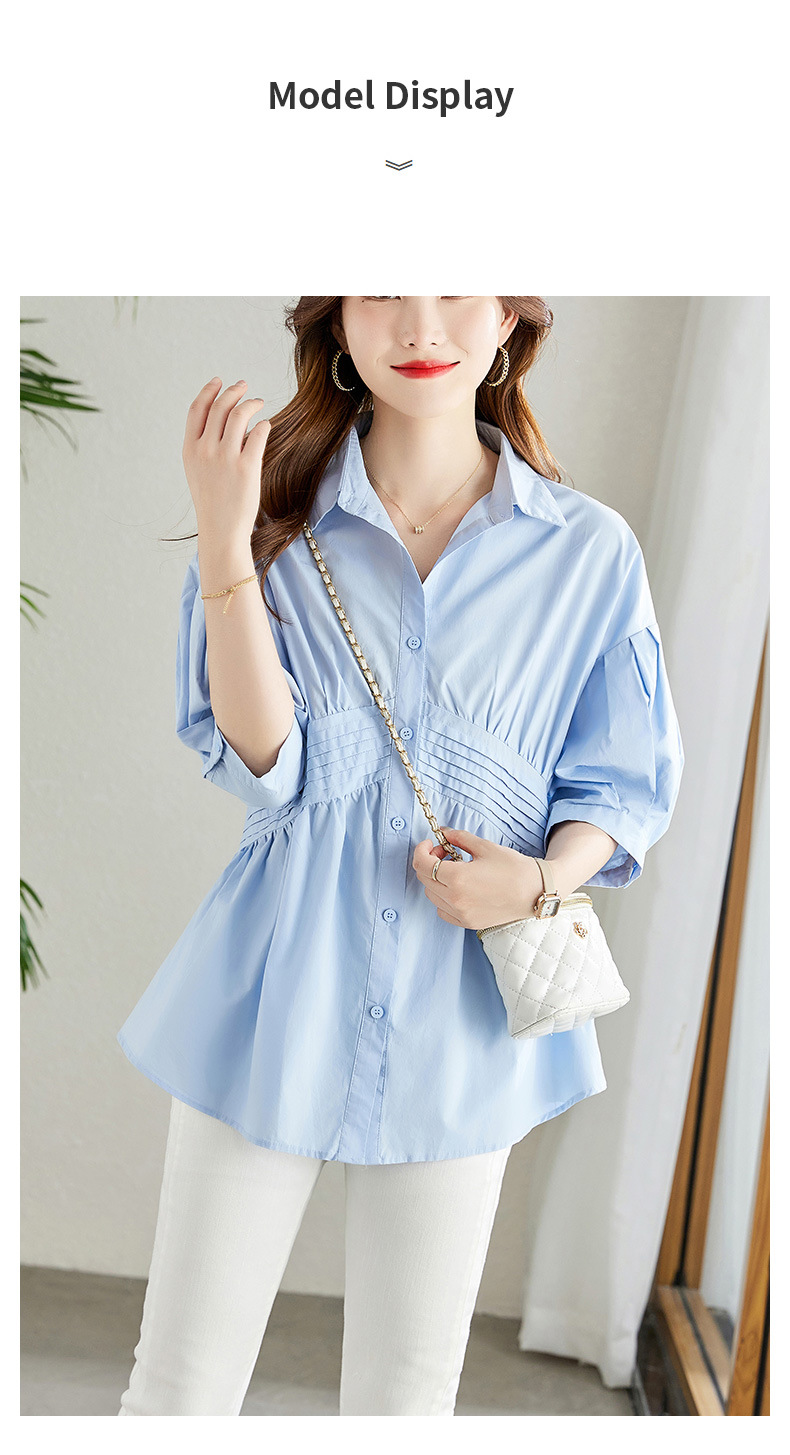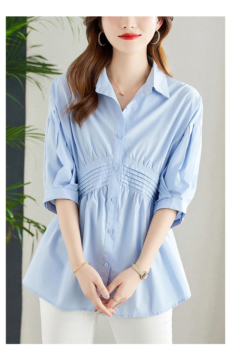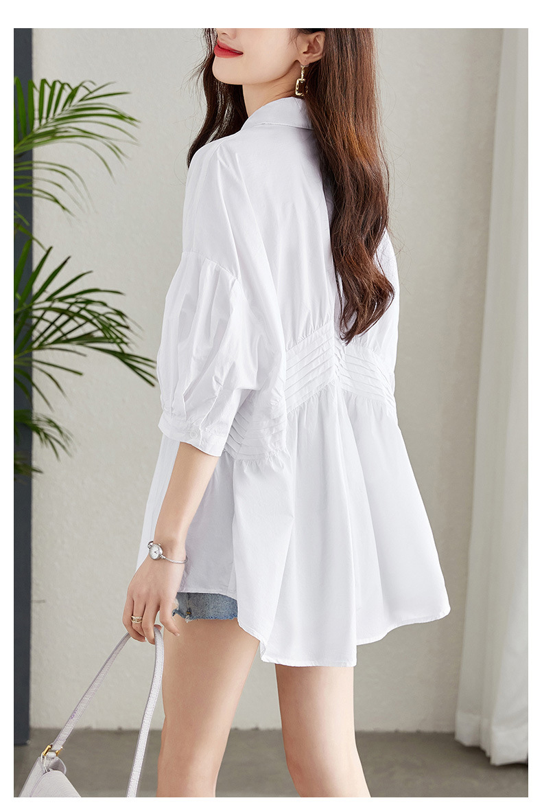 纯棉塔克褶衬衫七分袖别致上衣宽松显瘦衬衣MJ-23060