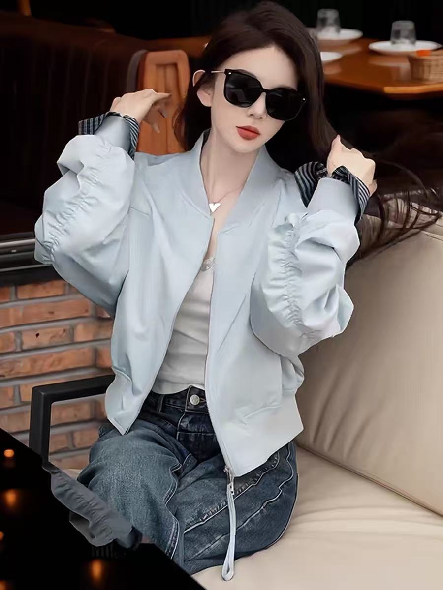 【秋上新】与慧辛品牌5825高级感品质拼接格子袖外套-喜出