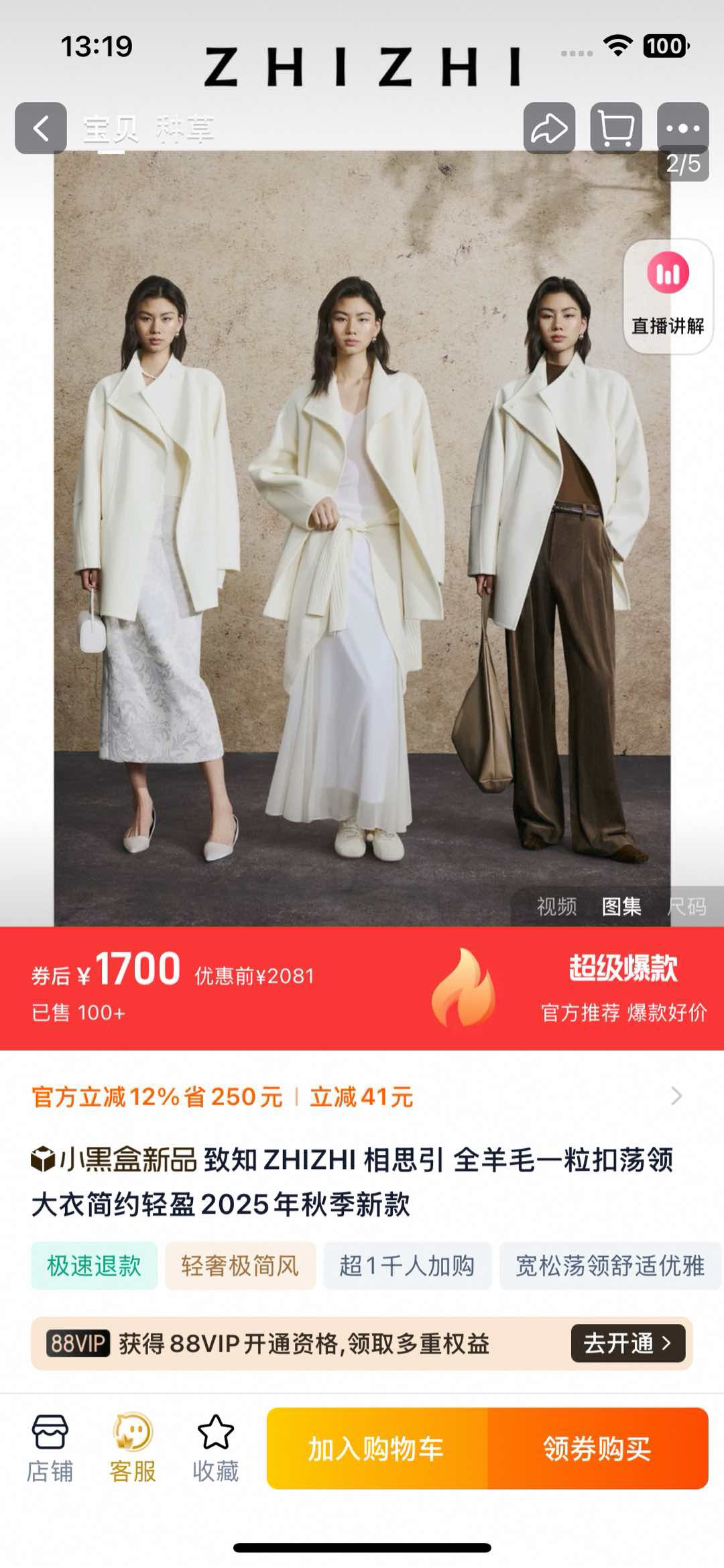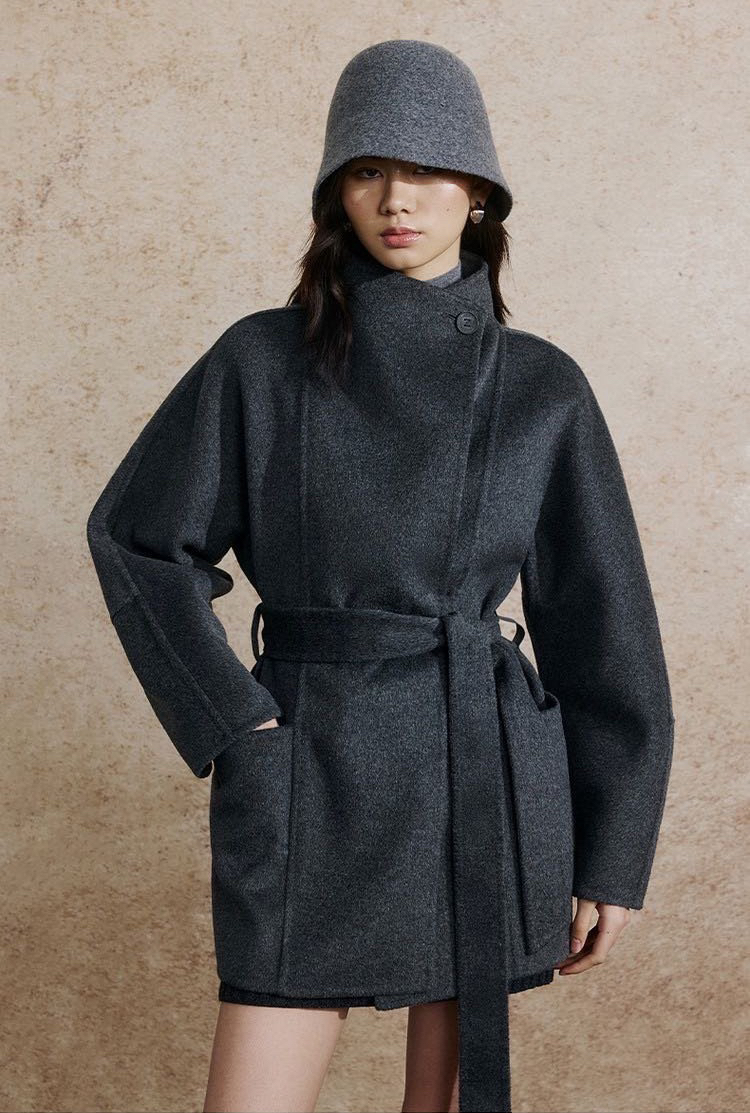 ZHI知全羊毛一粒扣荡领毛呢大衣外套101305