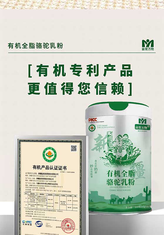 亩育万物 有机全脂驼乳粉 -新国标有机全脂驼乳粉 GB19644新国标 配料表100%生鲜驼乳