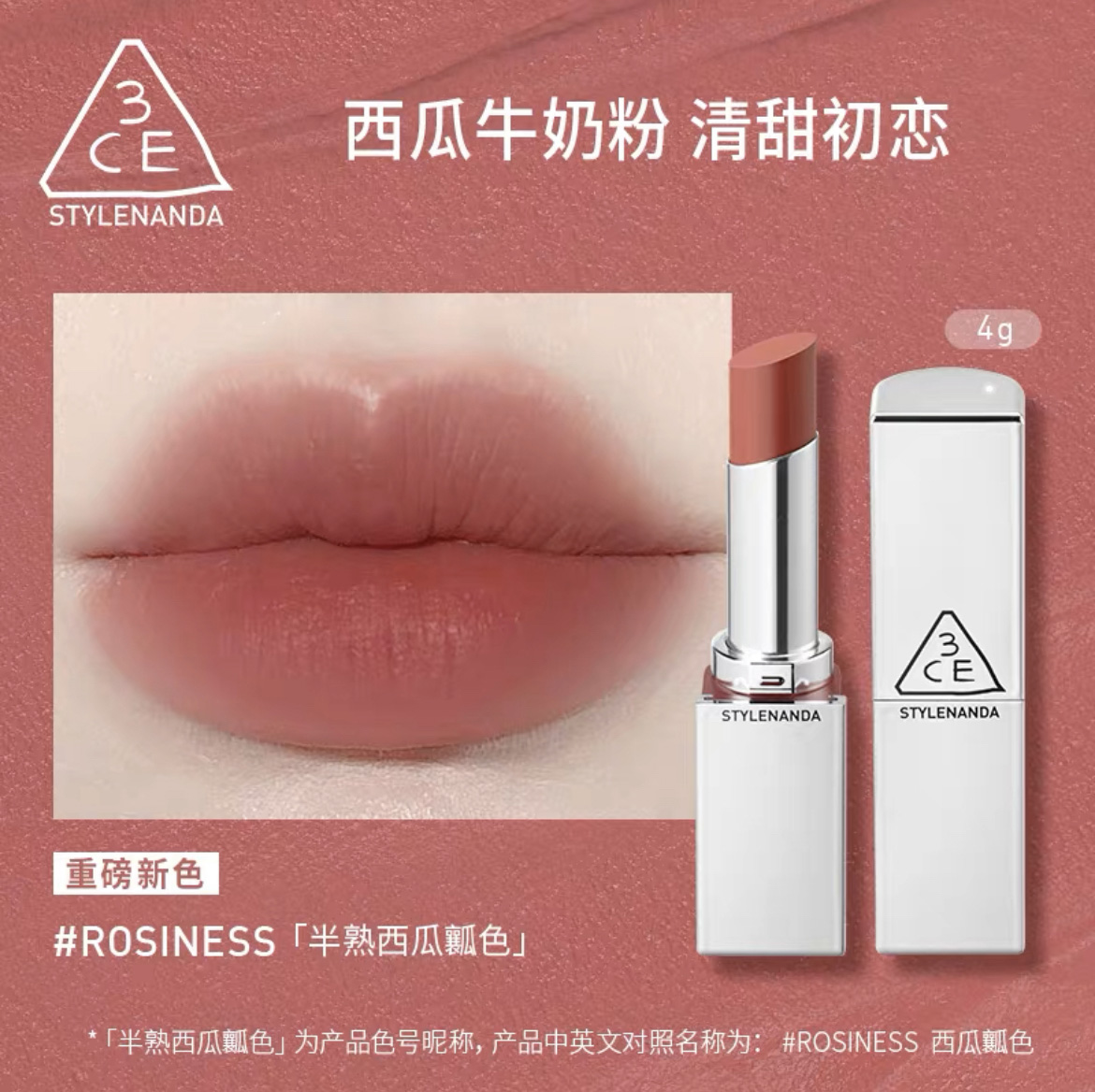 【门店直发 支持同城配送】3CE三熹玉柔焦哑光口红柔雾管显白持久4g