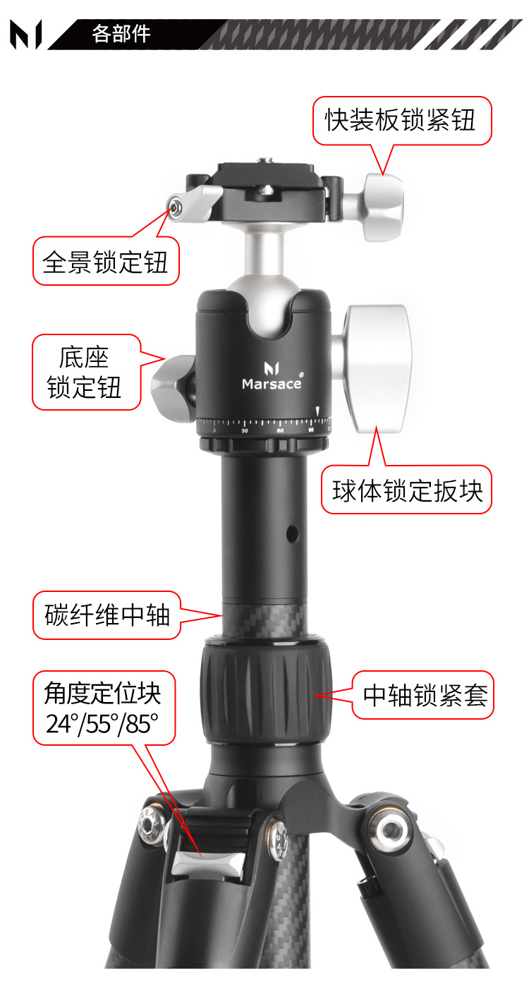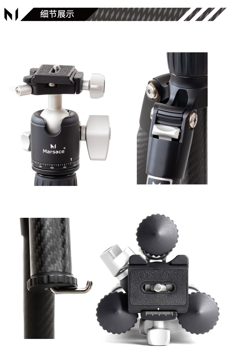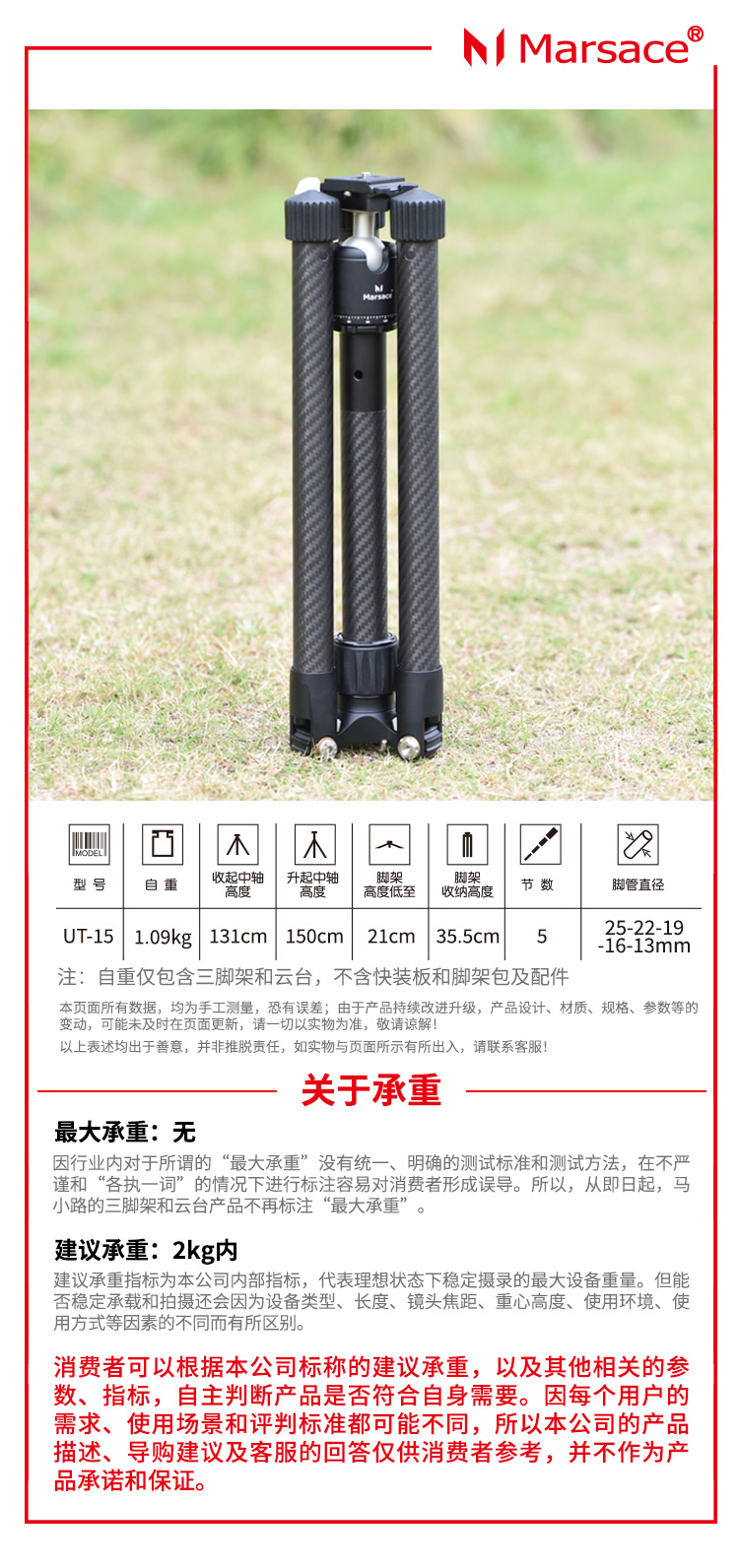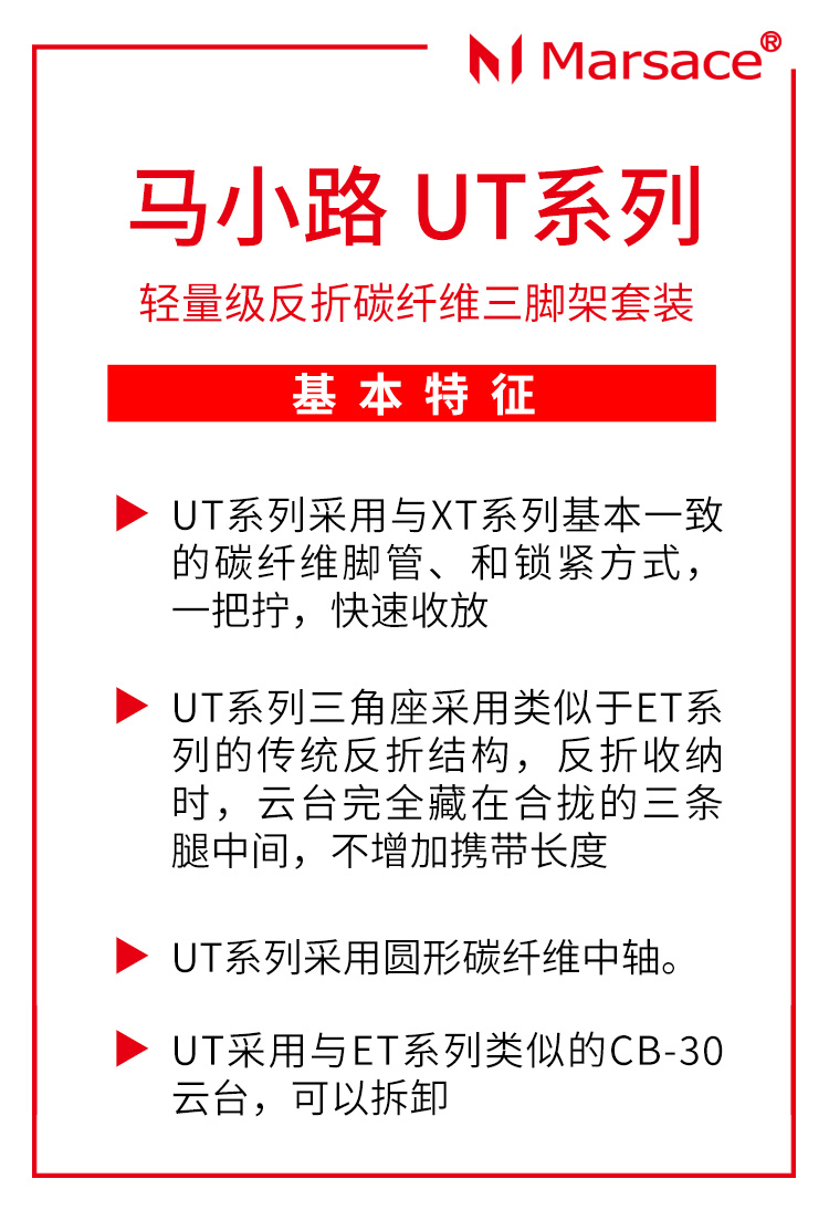 马小路Marsace UT-15轻量反折碳纤维三脚架套装 收合长度仅35.5CM
