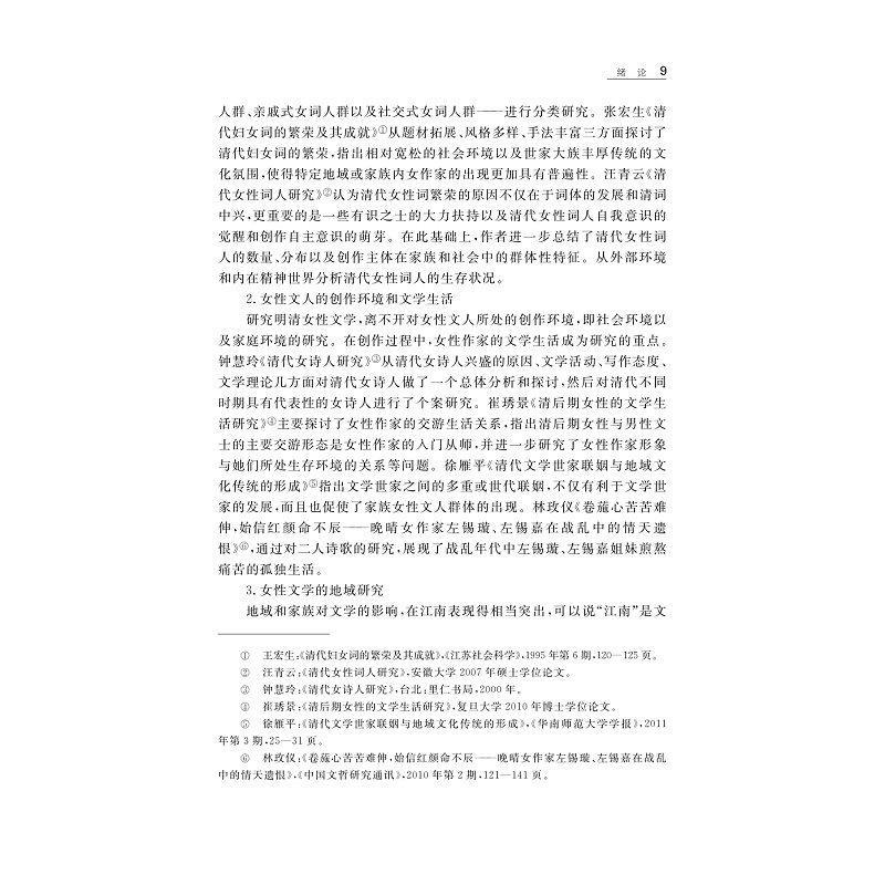本书将环太湖流域这一江南核心地区内的文学家族女性群体作为研究对象,以家族之间的亲缘与地缘关系为重点,既有普遍性存在、发展与传播等问题的探讨,也有独特性,即专题个案的分析。从地域空间横向和纵向的角度,力图真实还原明清时期环太湖流域文学家族女性群体创作现场以及发展状况,揭示文学家族女性群体在内部空间与外部空间的互相作用之下,在文学创作上取得的成就以及给自身、家族、地域以及社会带来的影响,突显明清女性文学在古代文学史上的地位。