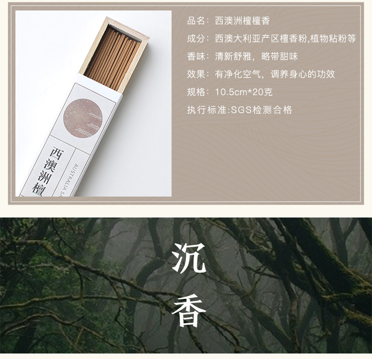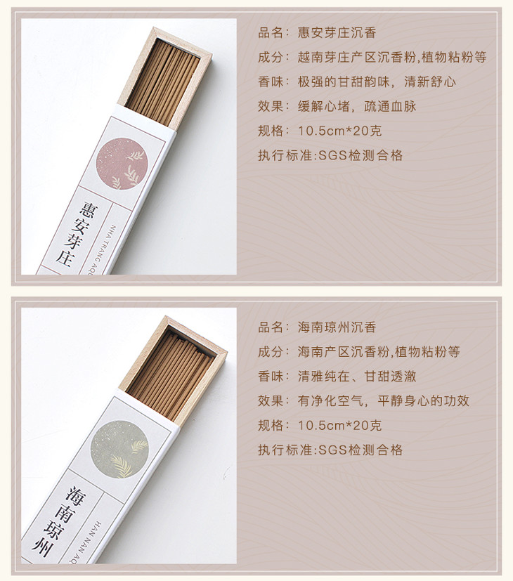 唯诗 | 【标品香短款系列】天然沉香纯线香 檀香 味甜醇厚 卧室/书房/茶室用香/净化空气/ 白天/酒店/会客