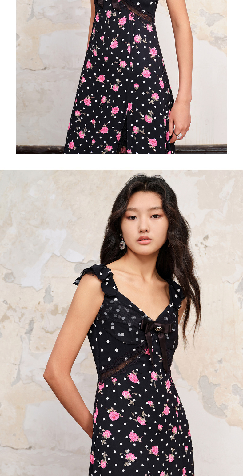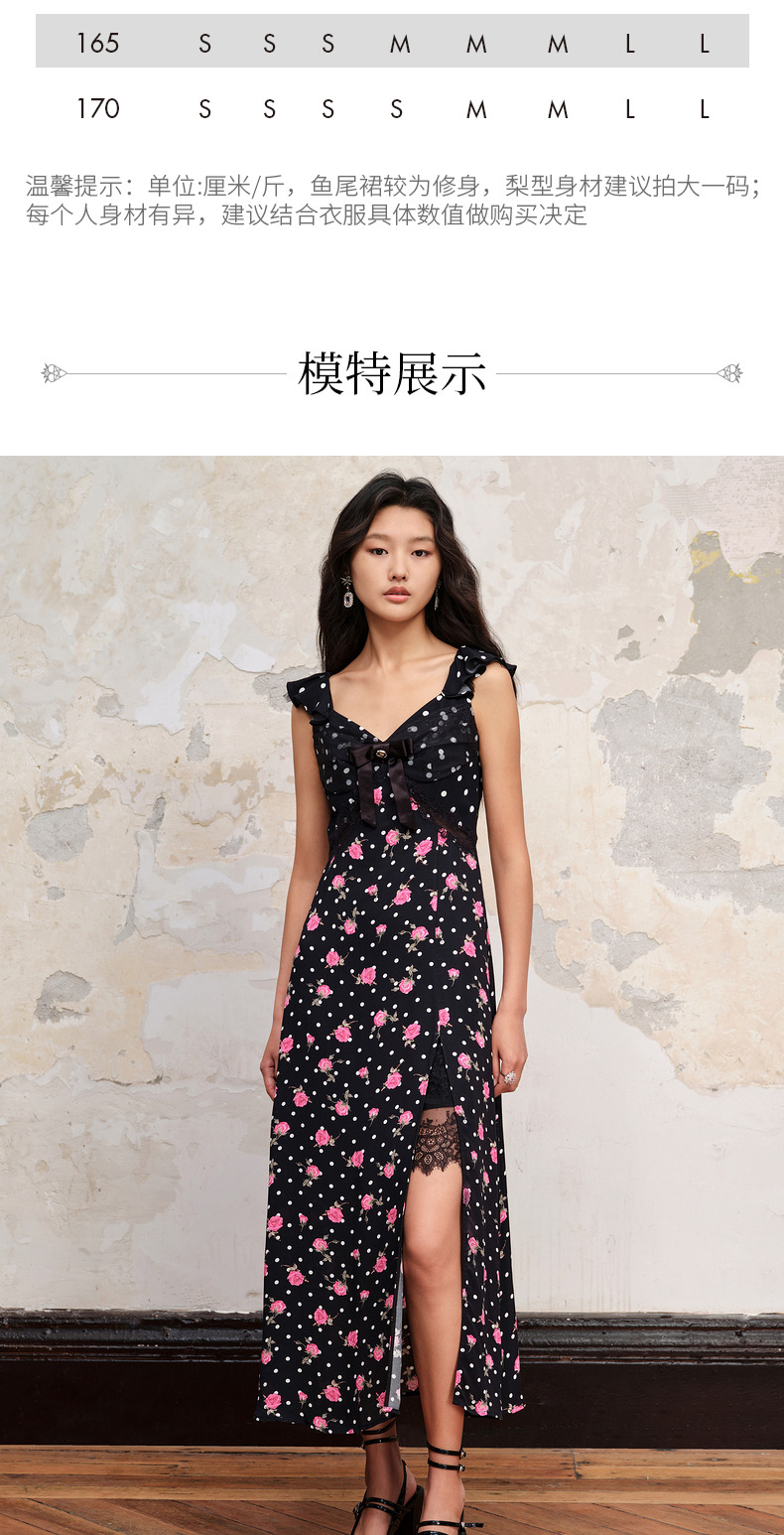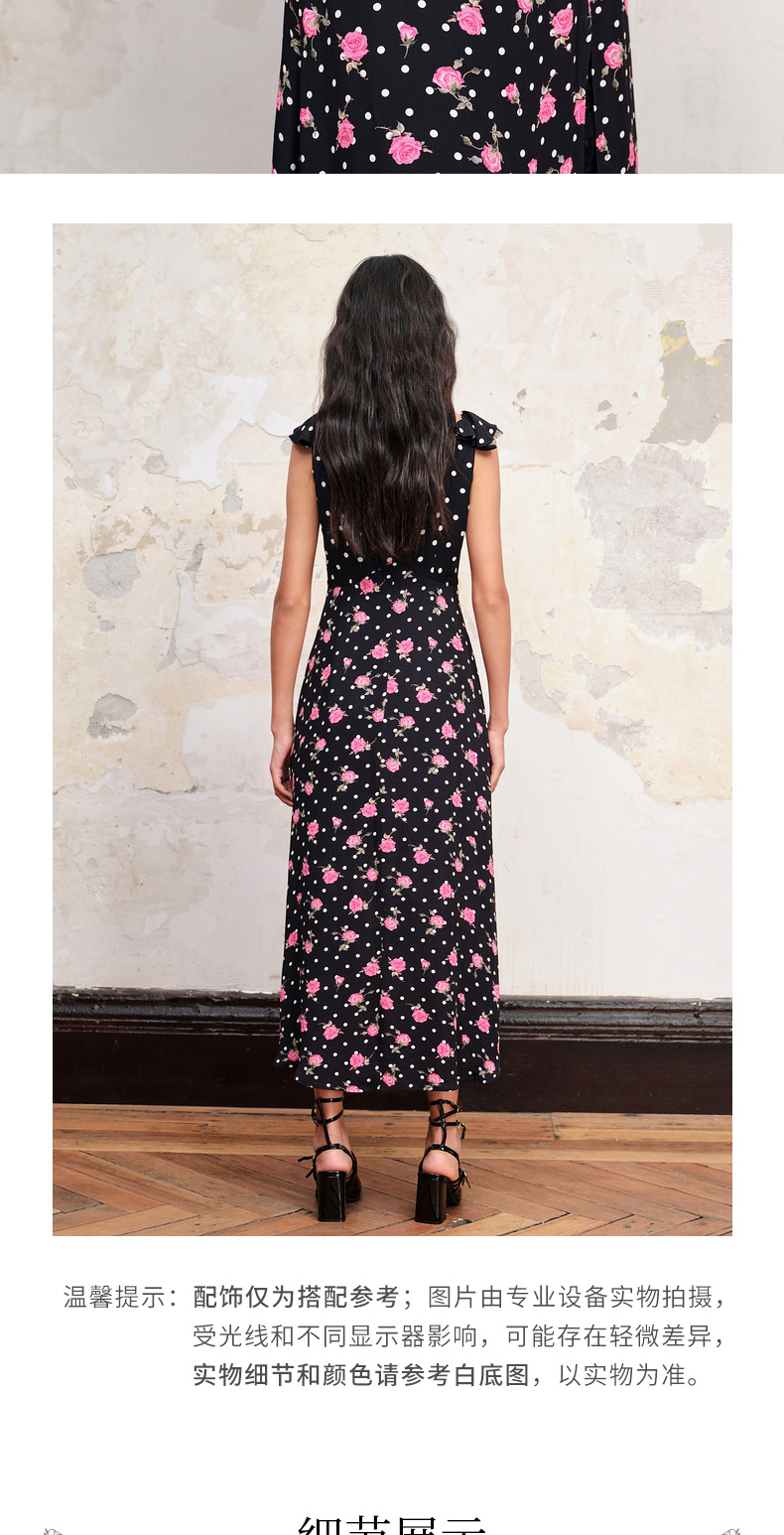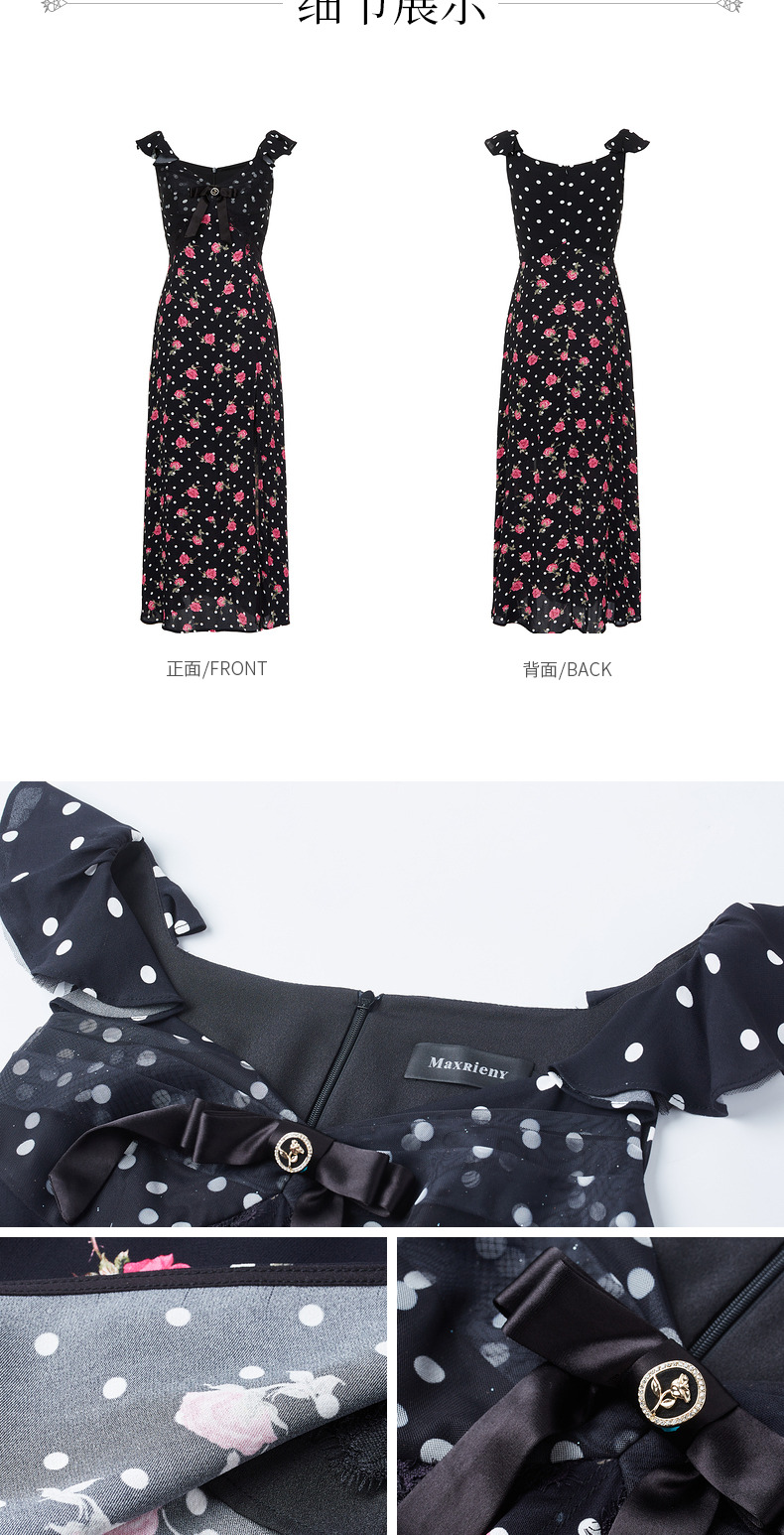 玛克门店发货:MAXRIENY黑底粉花飞飞袖吊带连衣裙(货号:MC88DR548)