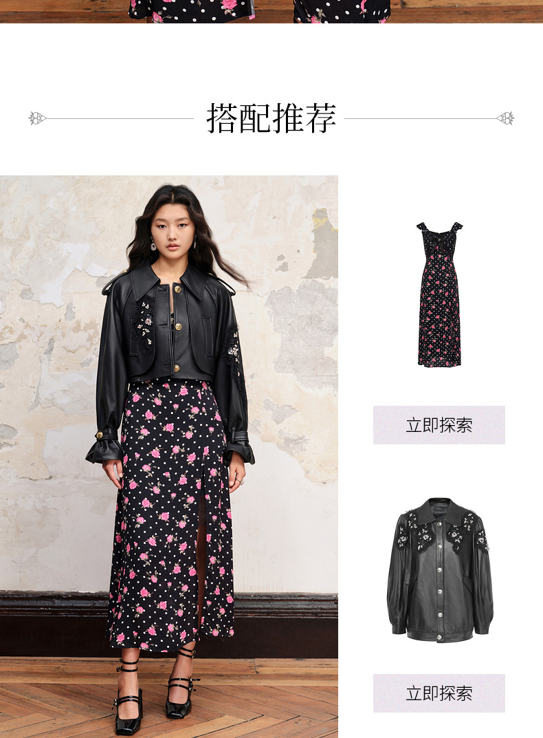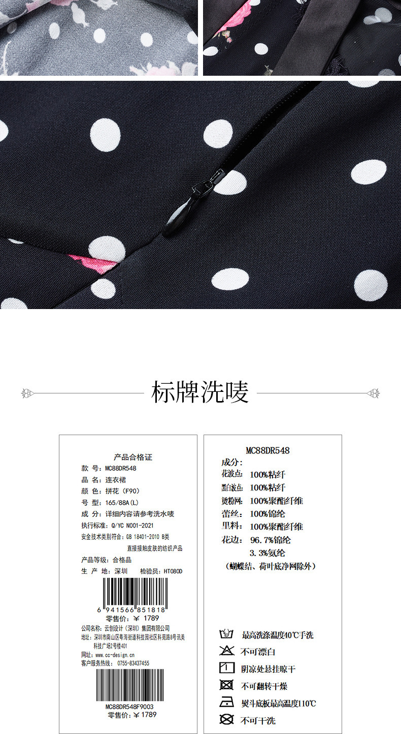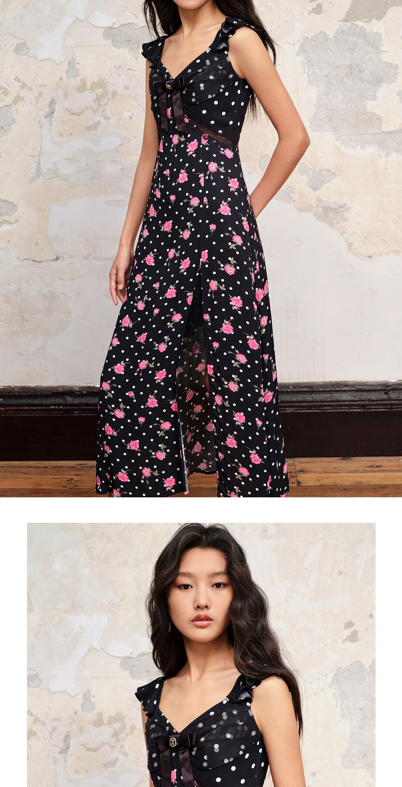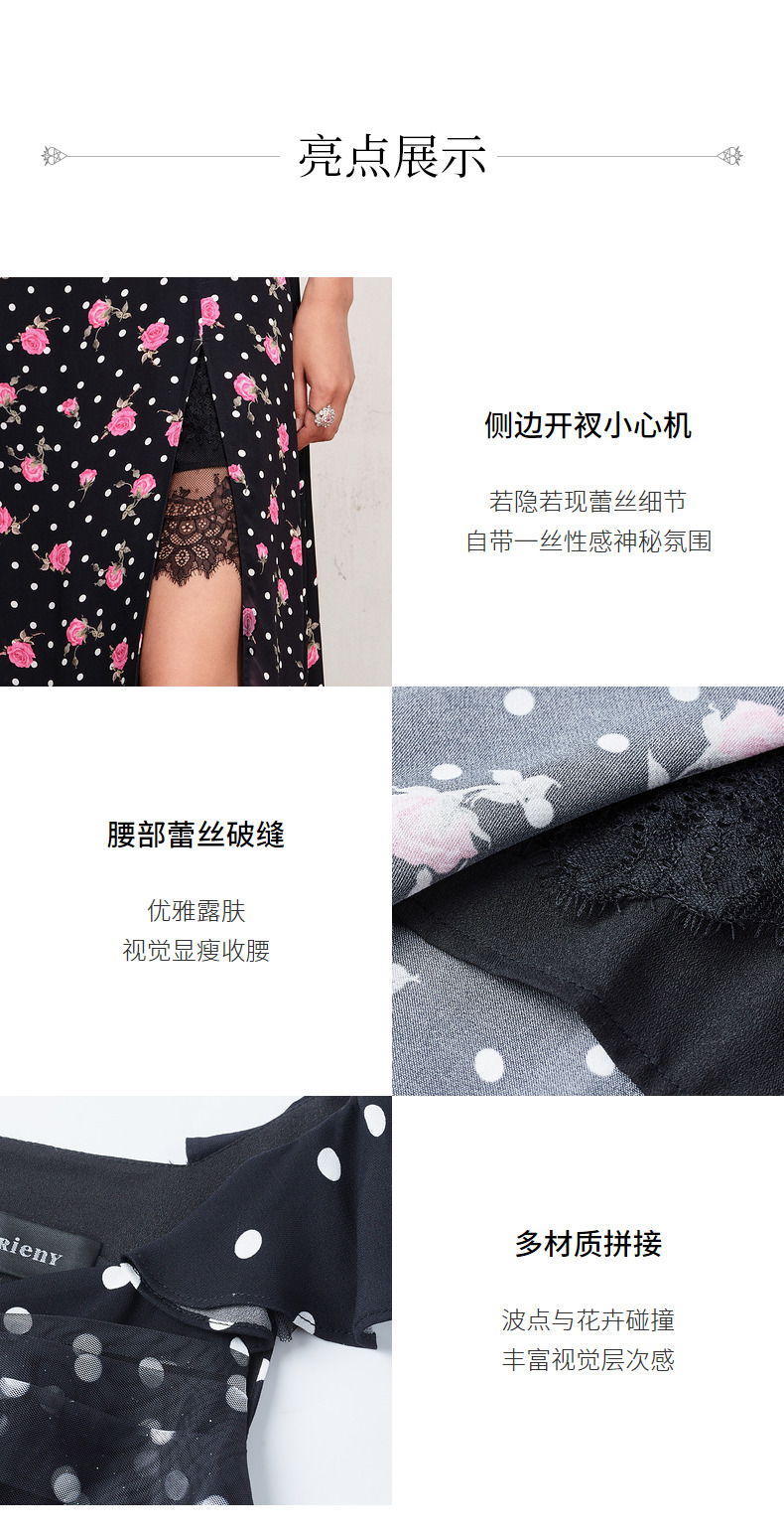 玛克门店发货:MAXRIENY黑底粉花飞飞袖吊带连衣裙(货号:MC88DR548)