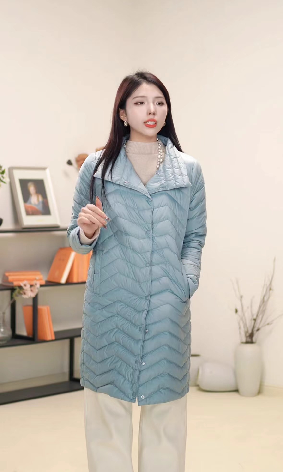 L115以内 臣禾 【雾霾蓝轻薄羽绒】绗缝长款羽绒服9241070152