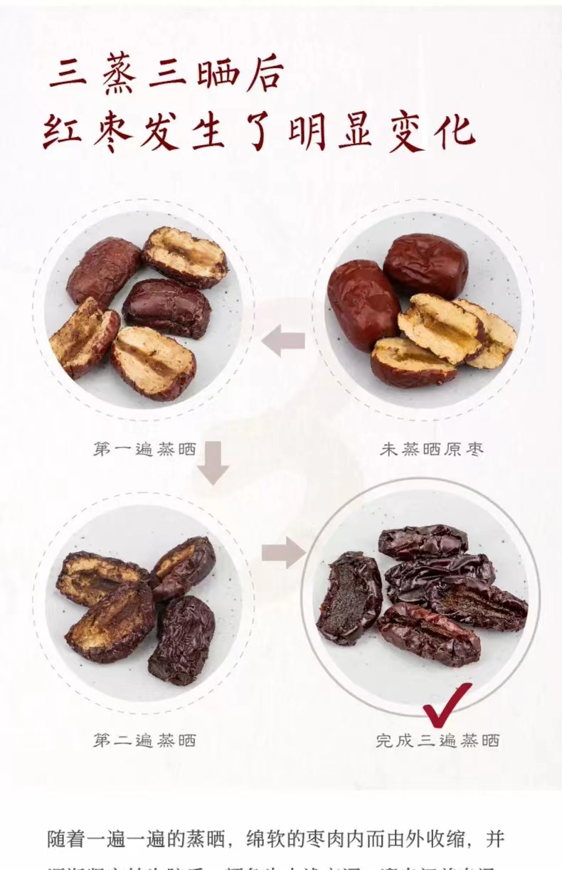匠心制枣,百搭养生【温和滋养!吃出好气色】有仁堂三蒸三晒红枣新疆羌活枣孕妇食养手工蒸红枣。ha