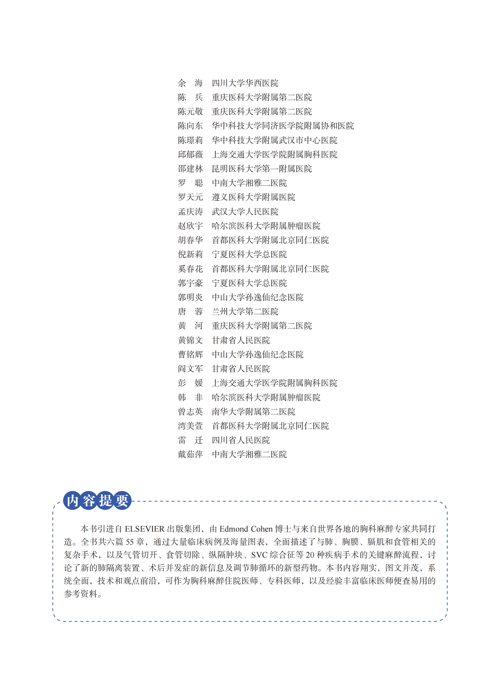 2025年新书:Cohen综合胸科麻醉学 陈向东等主译(中国科学技术出版社)