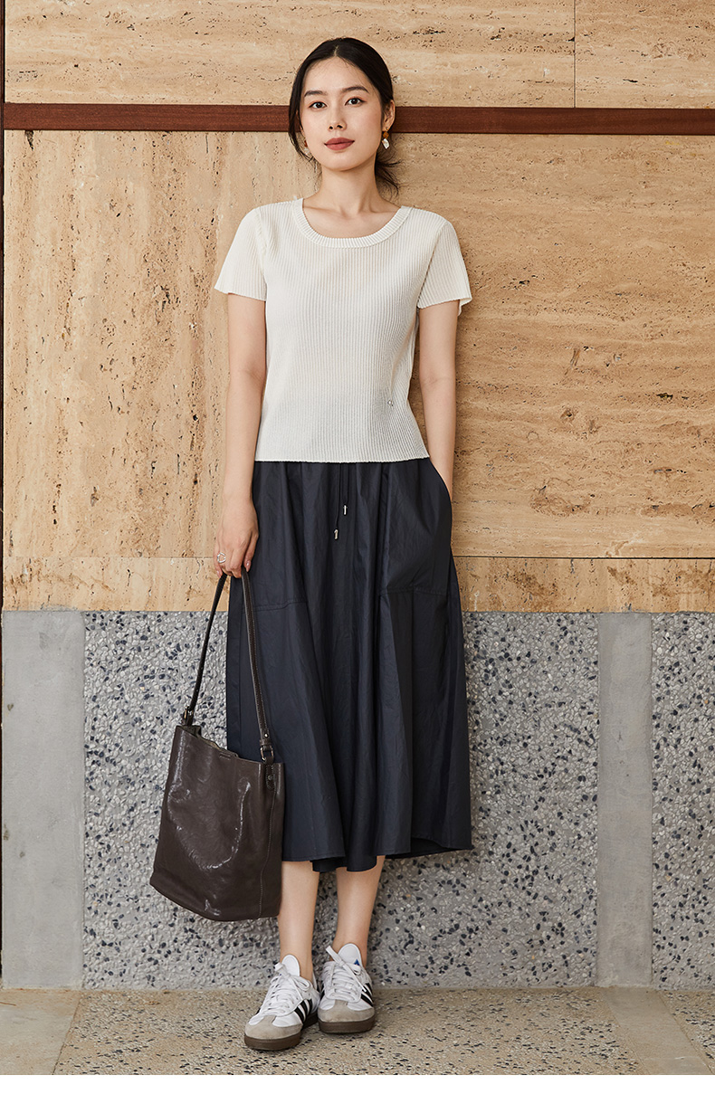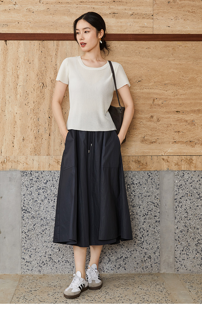 日系温柔风白色云朵半身裙 松紧腰宽松显瘦百搭中长款花苞伞裙