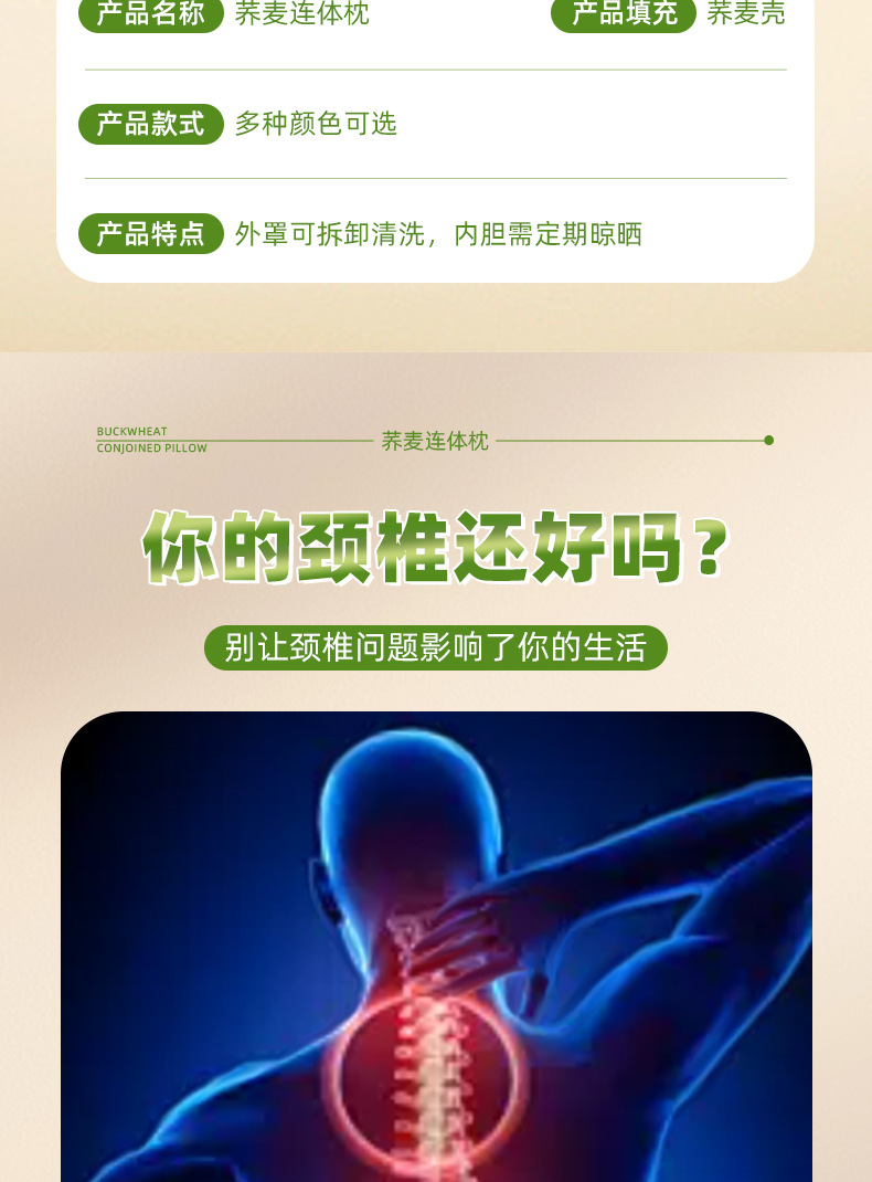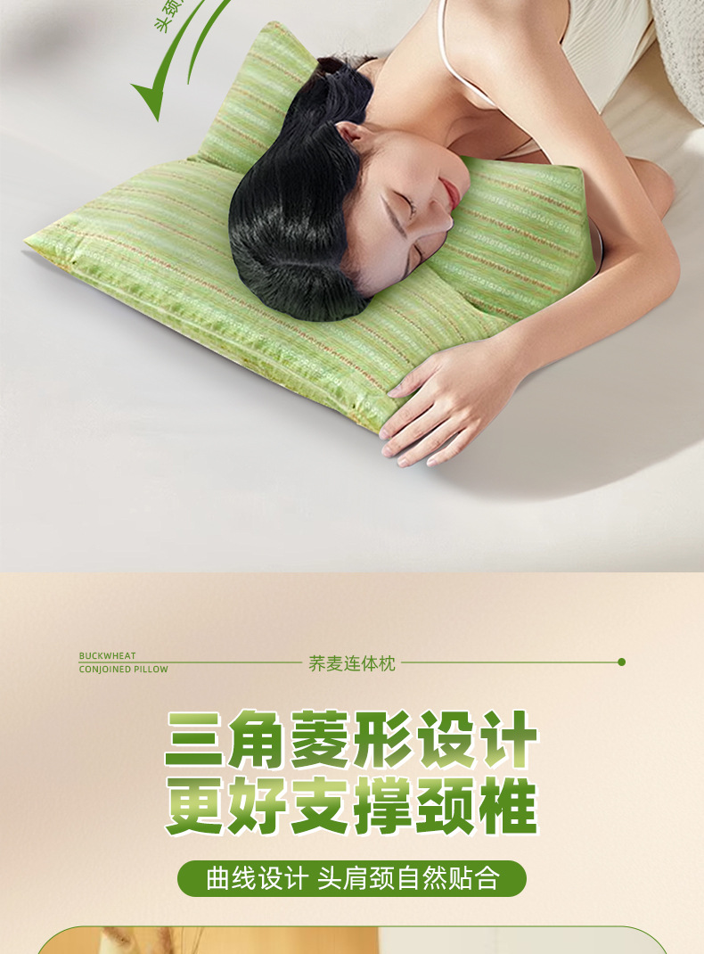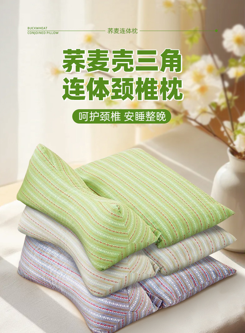 荞麦枕头三角颈椎枕家用单人菱形荞麦壳护颈枕可拆卸枕艾草连体枕