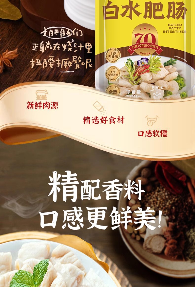 【南京提货券300-500】白水肥肠500g*3袋