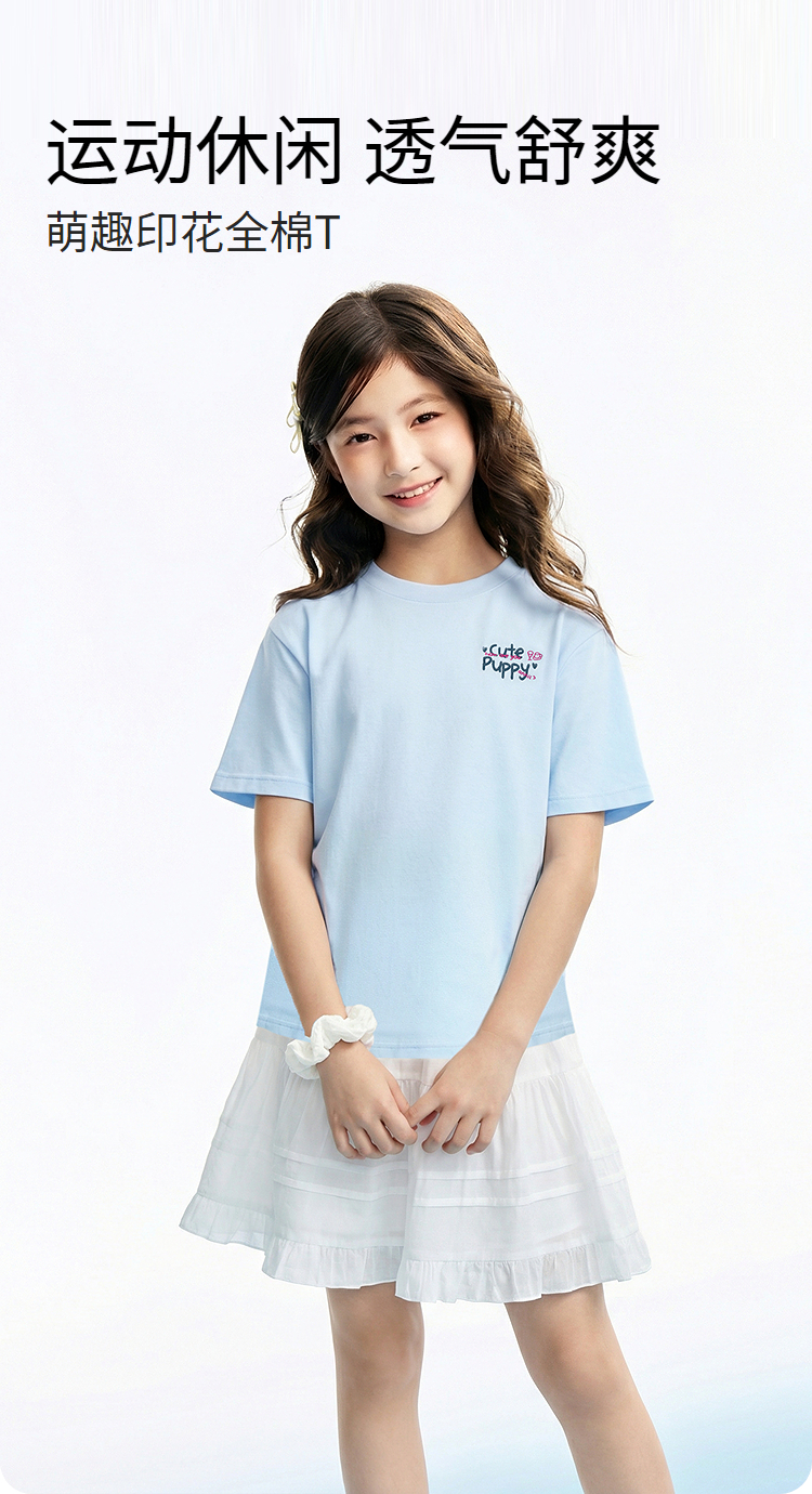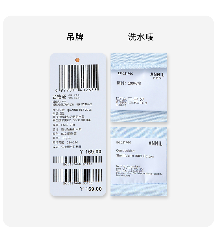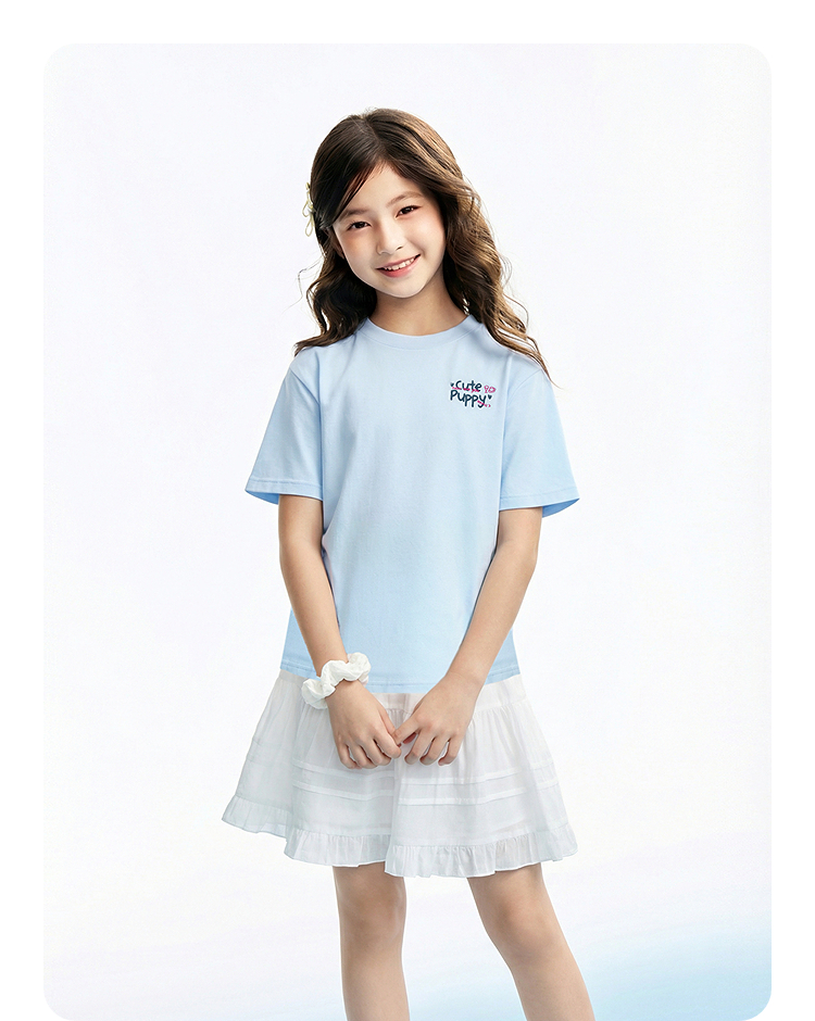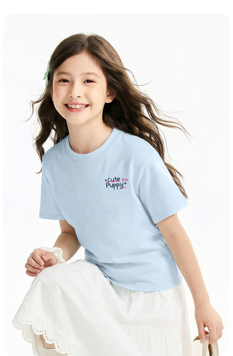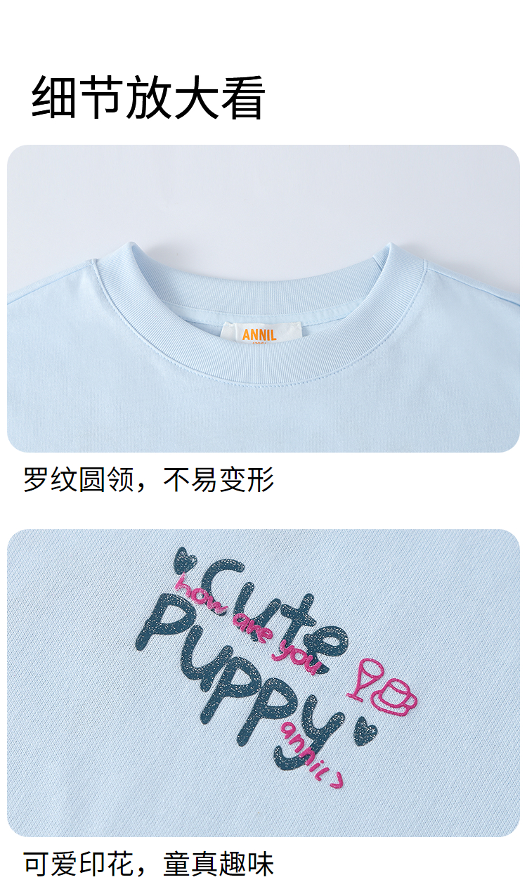 女童圆领短袖针织衫夏季新款安奈儿童装EG621760