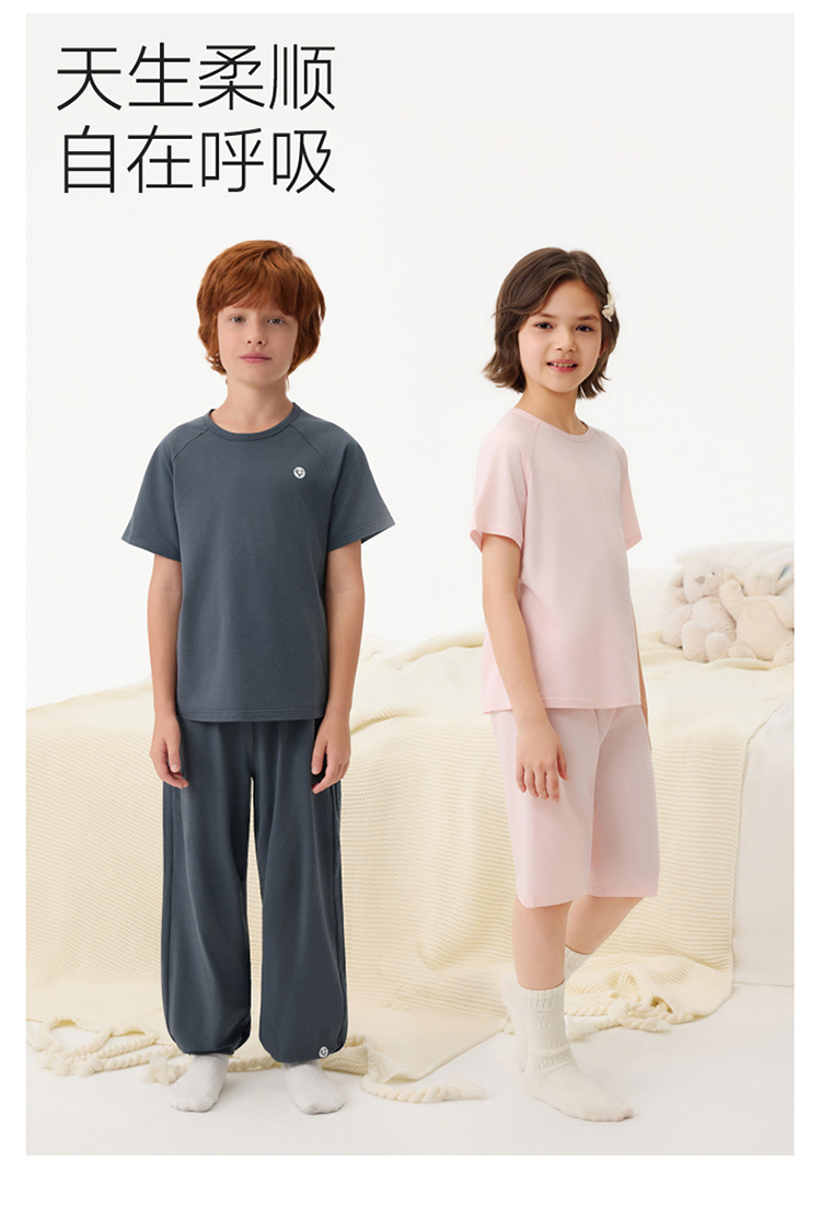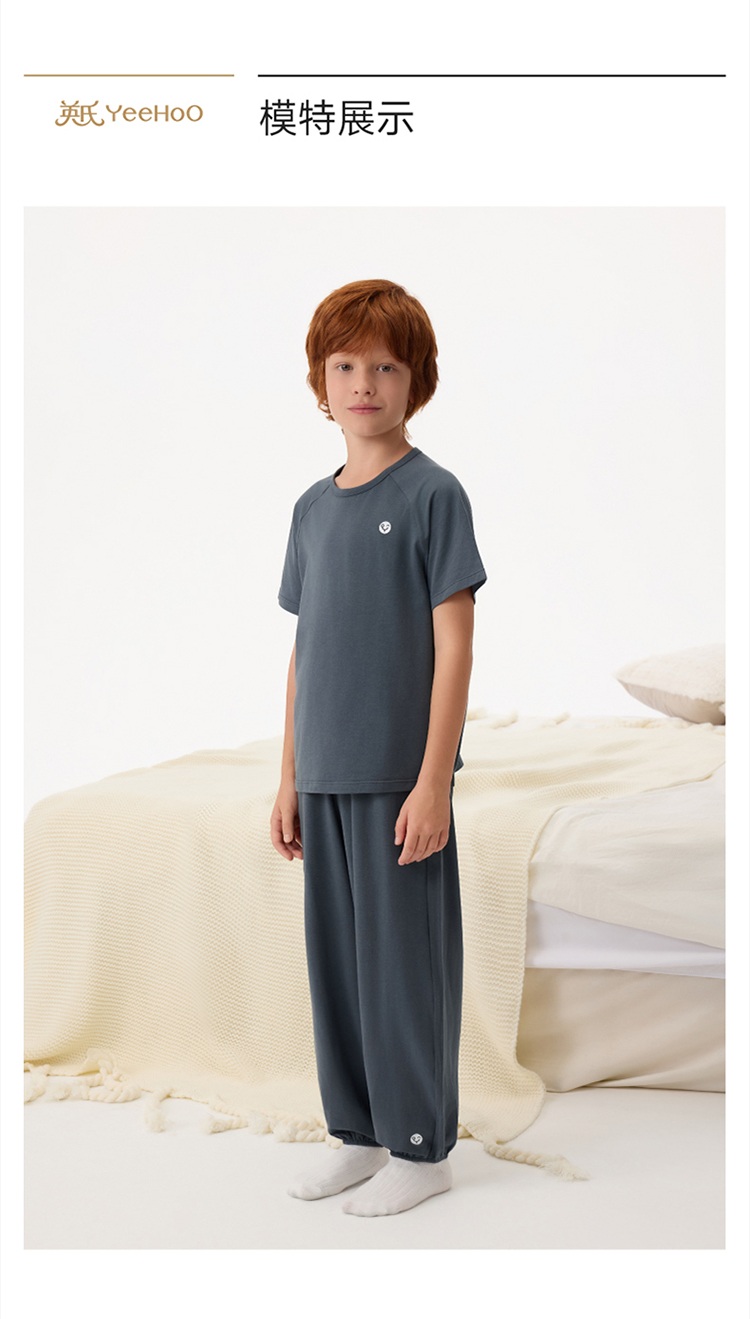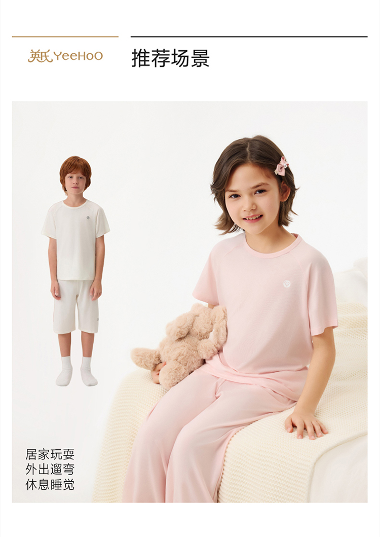 英氏儿童套装夏季男女童10A抗菌吸湿速干短袖裤子组合家居服套装