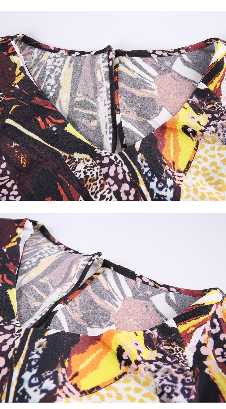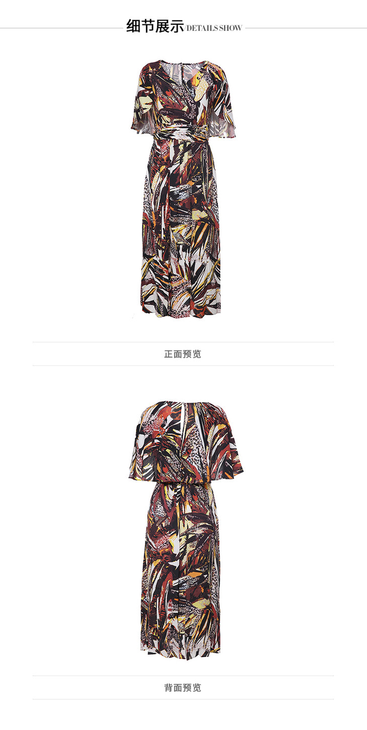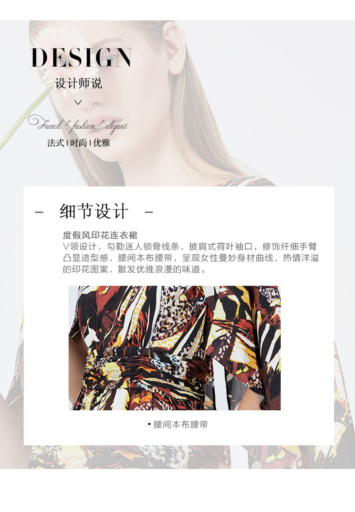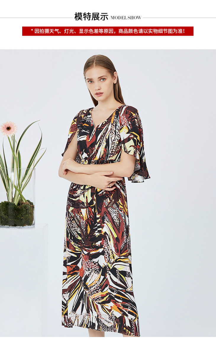 EITIE爱特爱品牌女装修身显瘦喇叭袖立领印花连衣裙中裙5807516