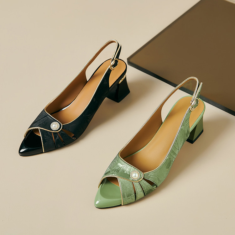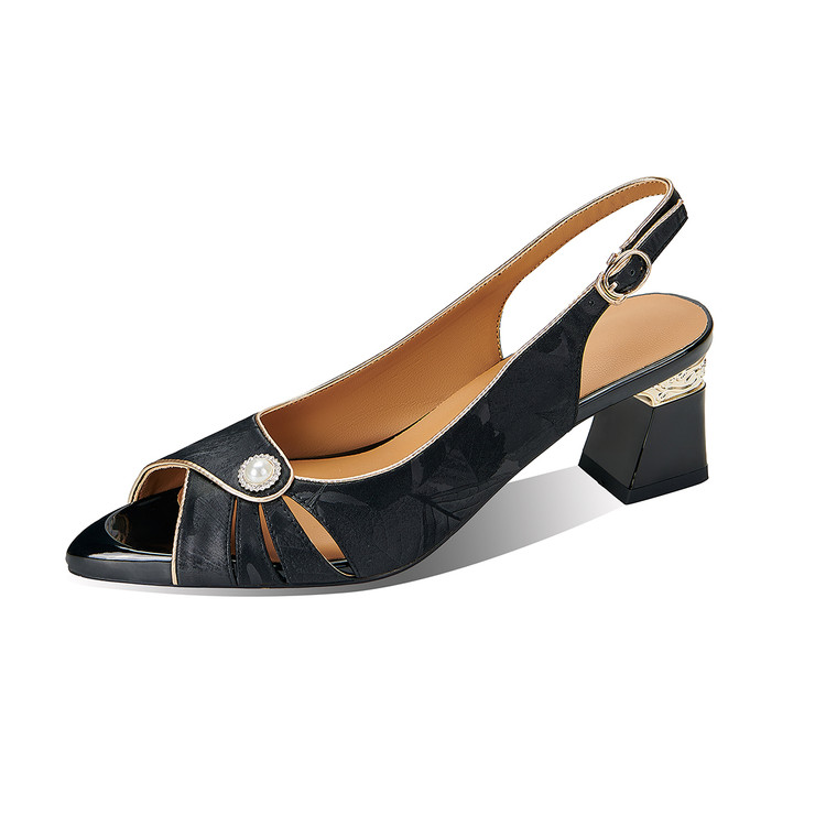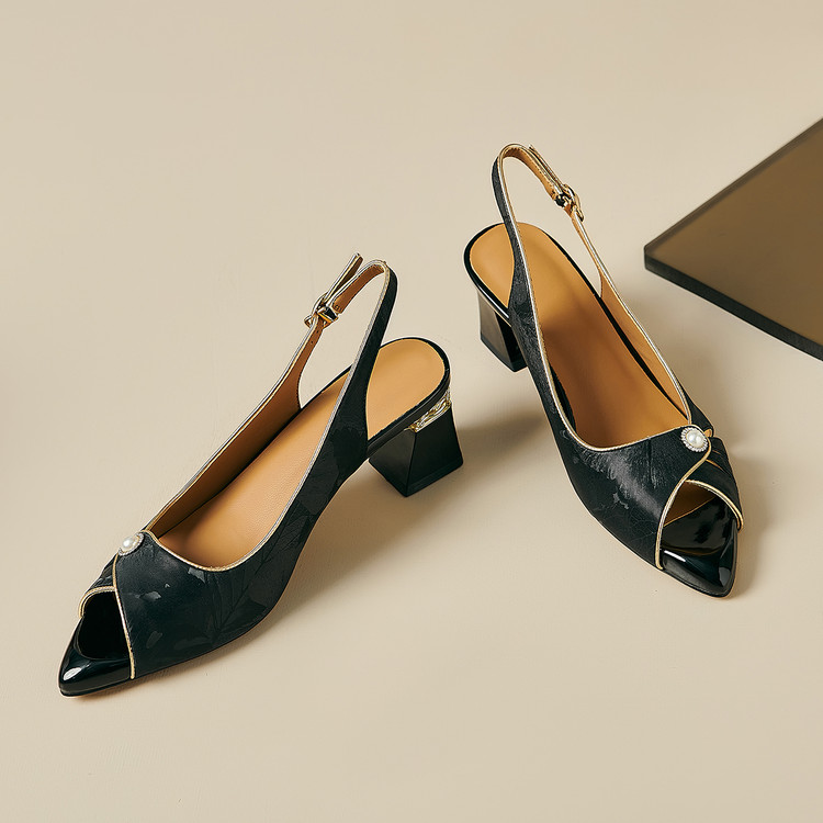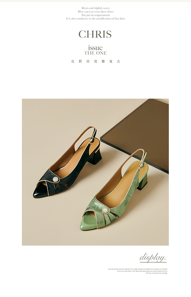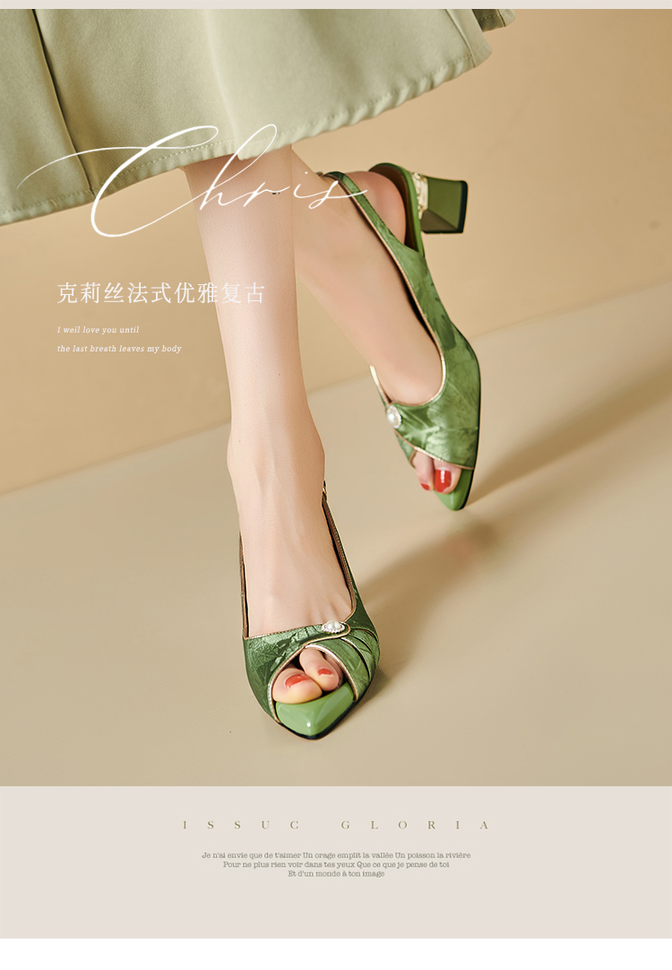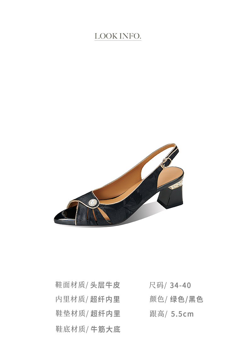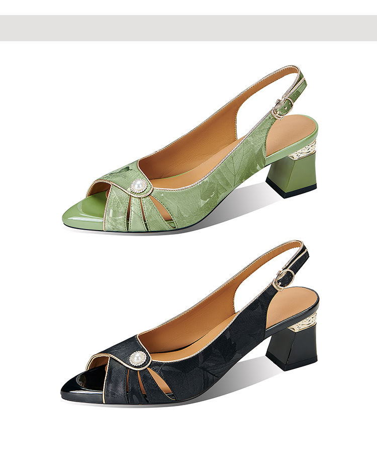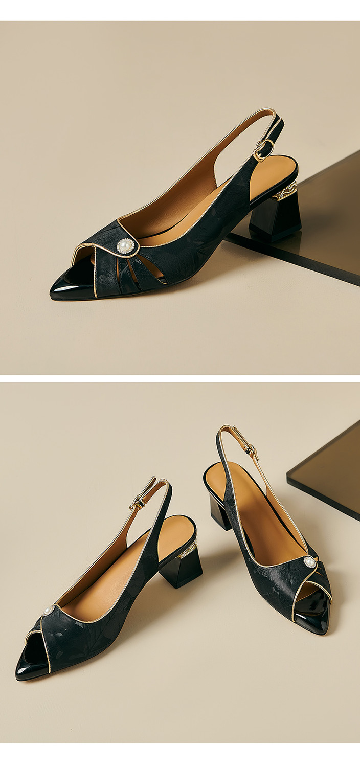 【预售5天】真皮鱼嘴粗跟时装凉鞋夏季新款拼色珍珠镂空一字带旗袍走秀高跟鞋SY&F23023