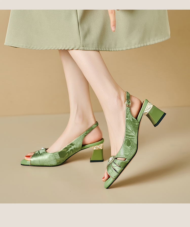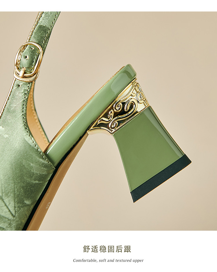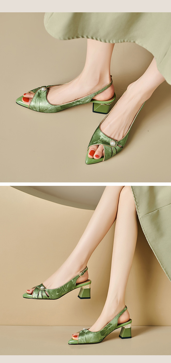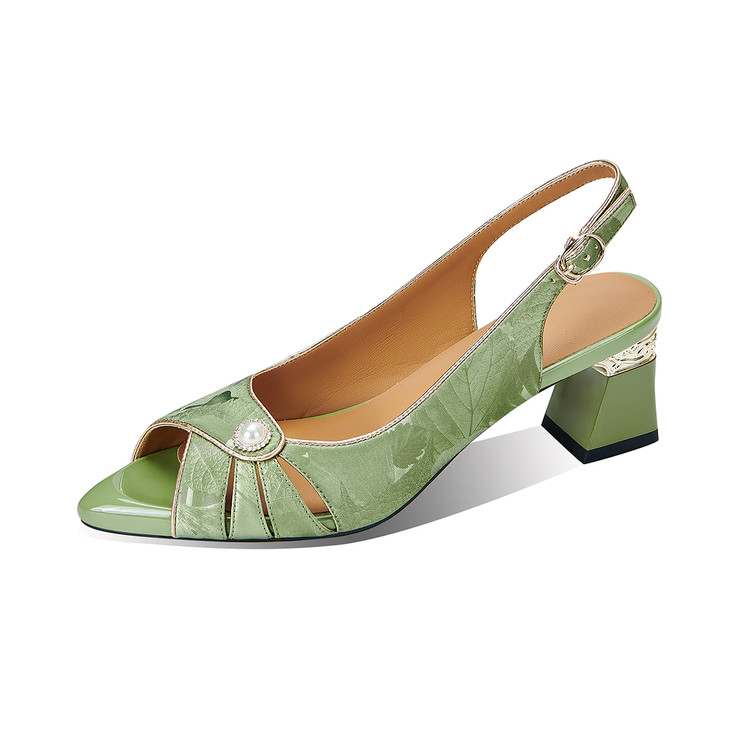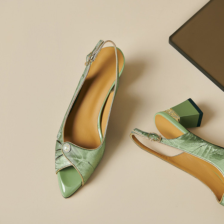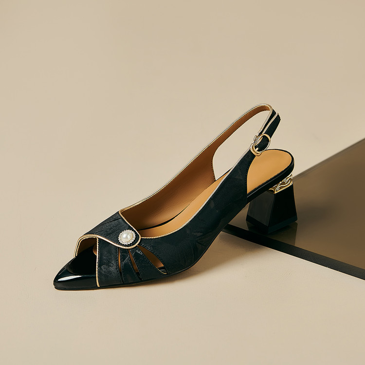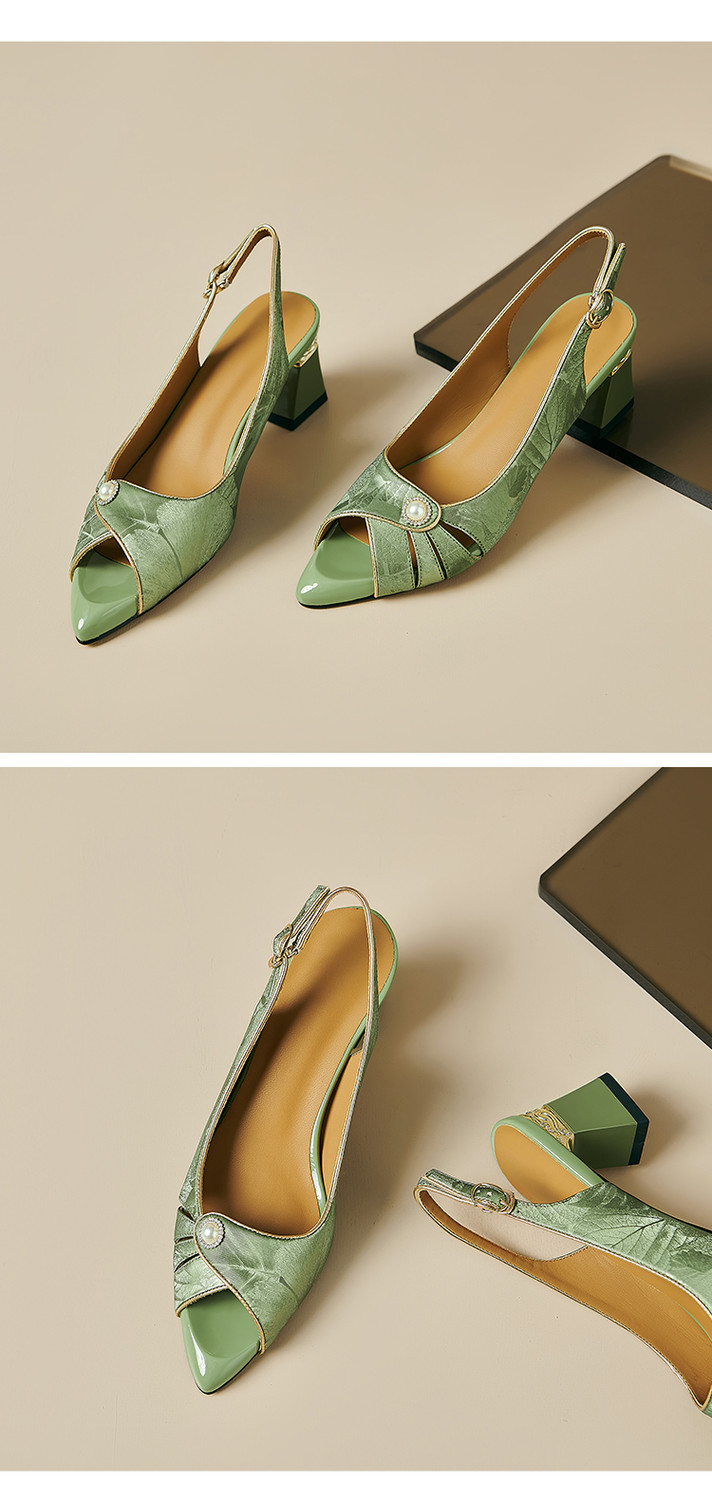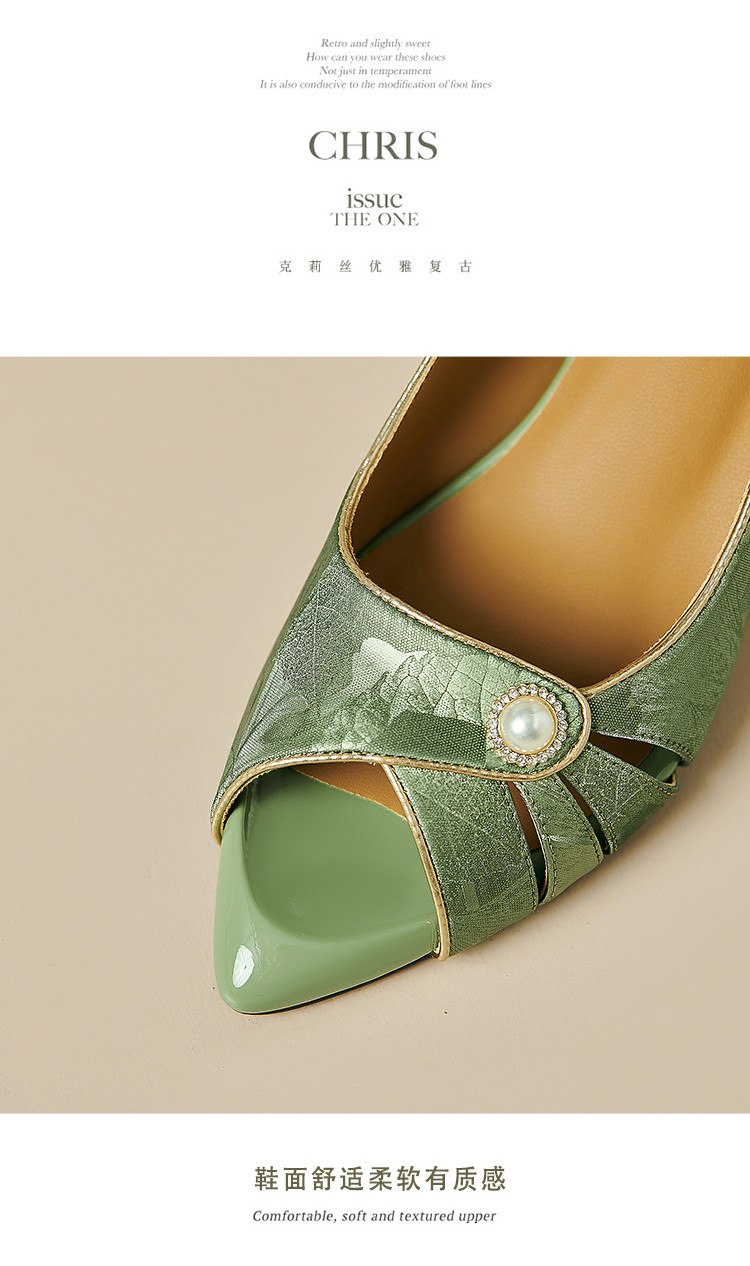 【预售5天】真皮鱼嘴粗跟时装凉鞋夏季新款拼色珍珠镂空一字带旗袍走秀高跟鞋SY&F23023