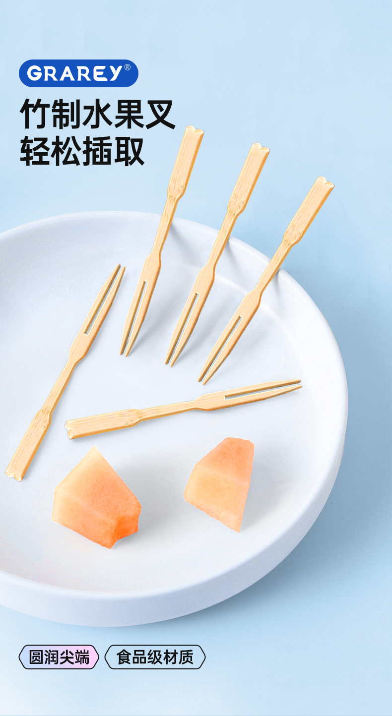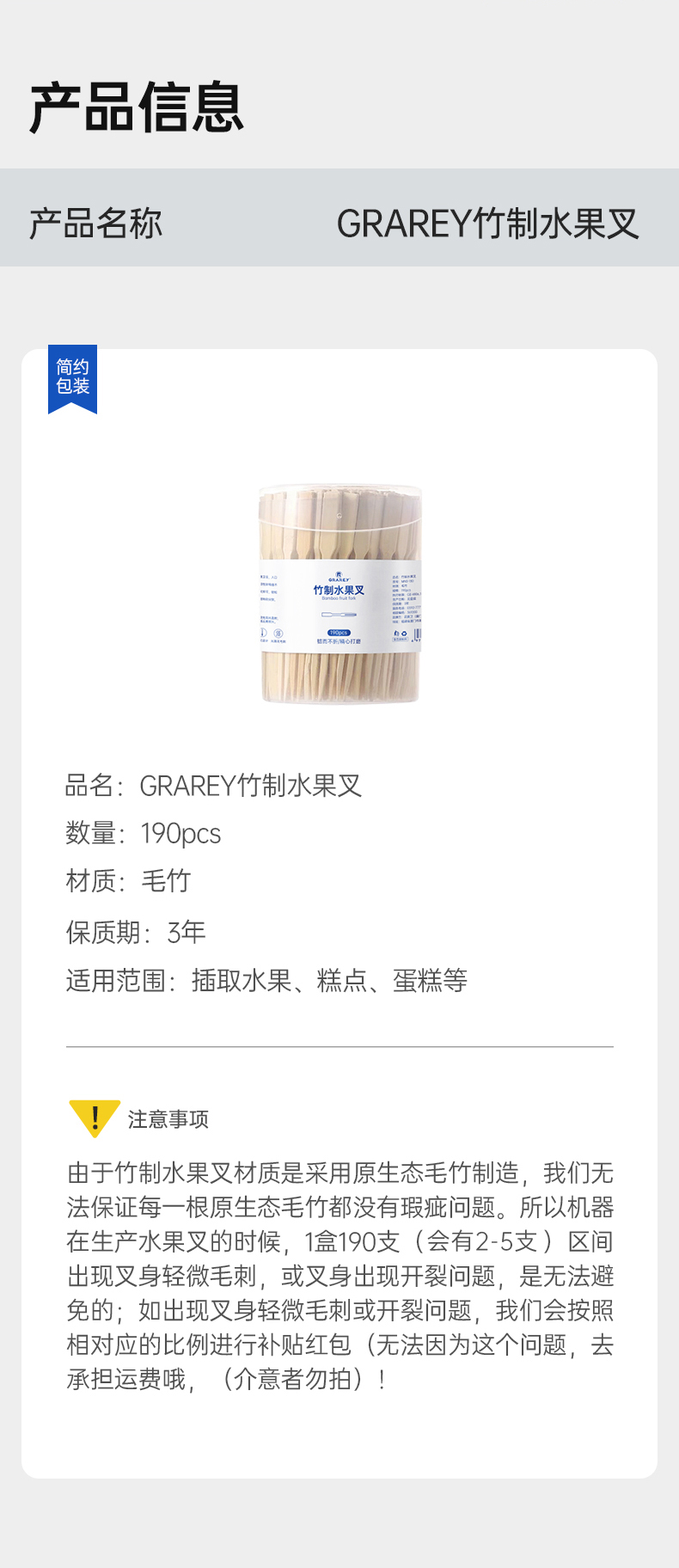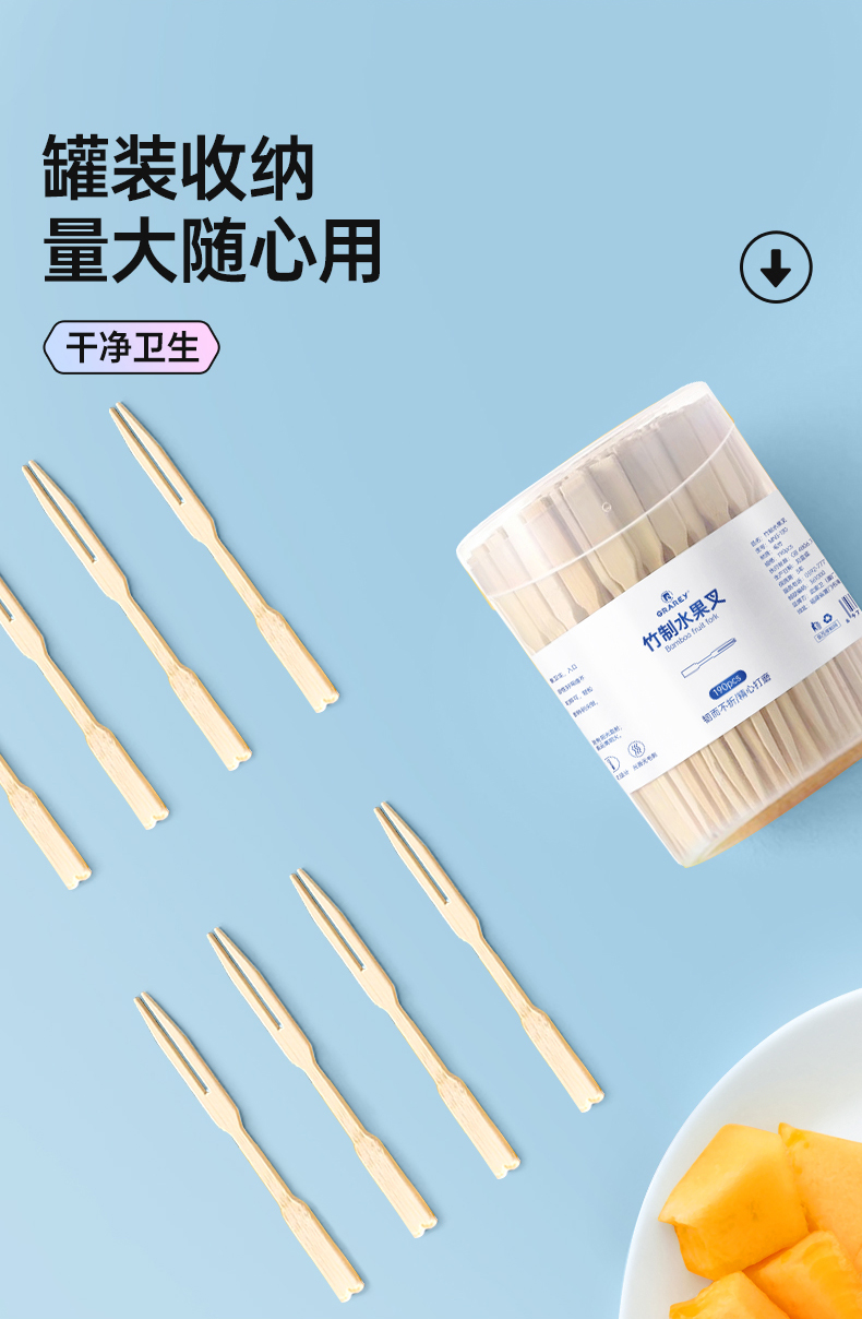 【积分兑换】【Grarey 格瑞亚 竹制水果叉】自带收纳盒190支/罐 加厚加长,不易断全家人都放心用的叉子!