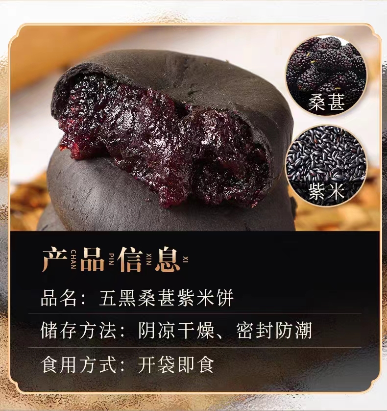 拓高 硕果田间五黑桑葚紫米饼250g*3袋【周日不发货】