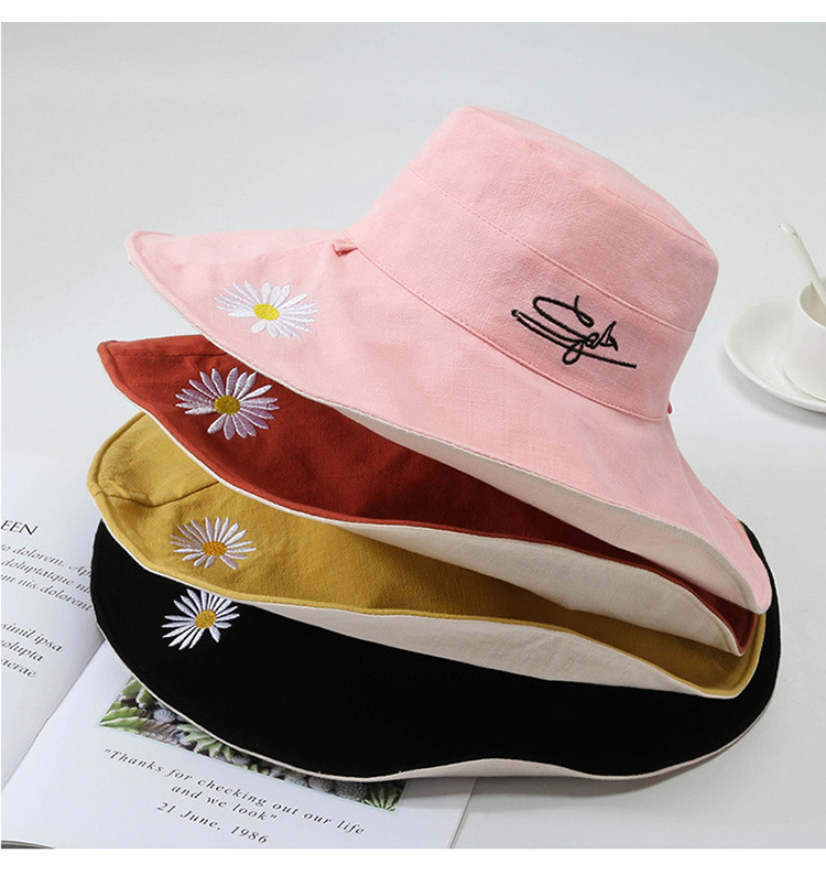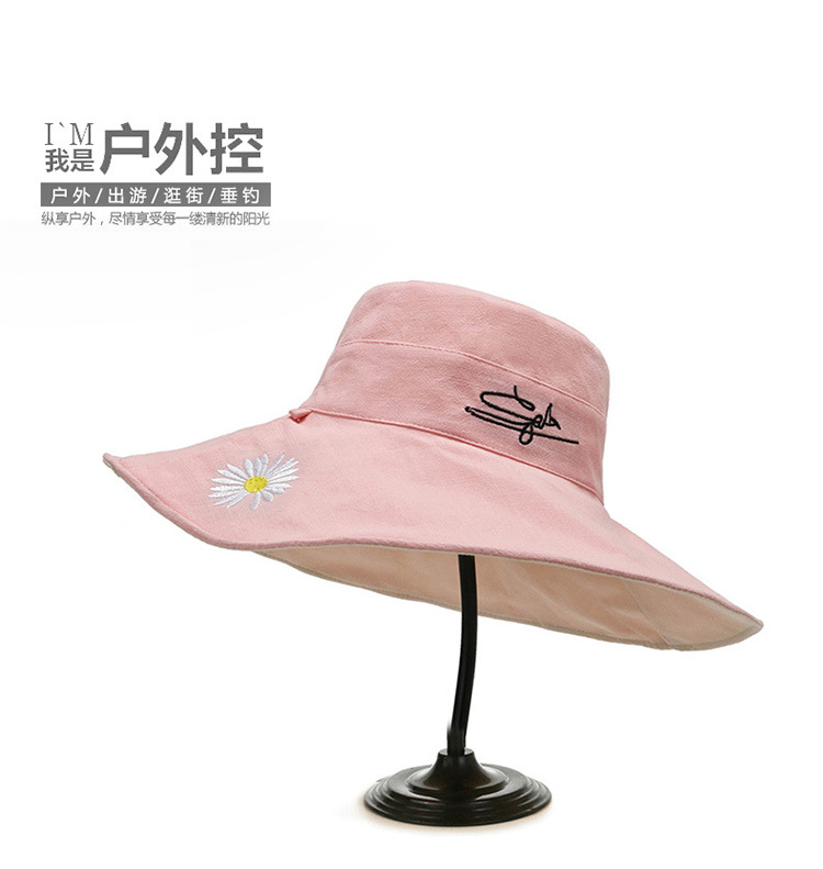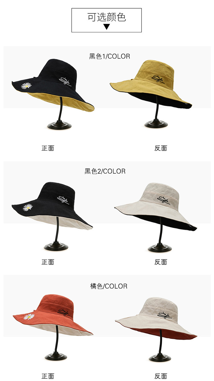 LF-大檐雏菊渔夫帽夏季遮阳双面戴透气薄款日系网红盆帽沙滩帽ZXH