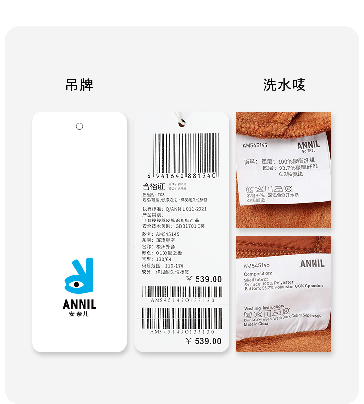 【实体店同款】男女童梭织外套冬季新款安奈儿童装AM545145
