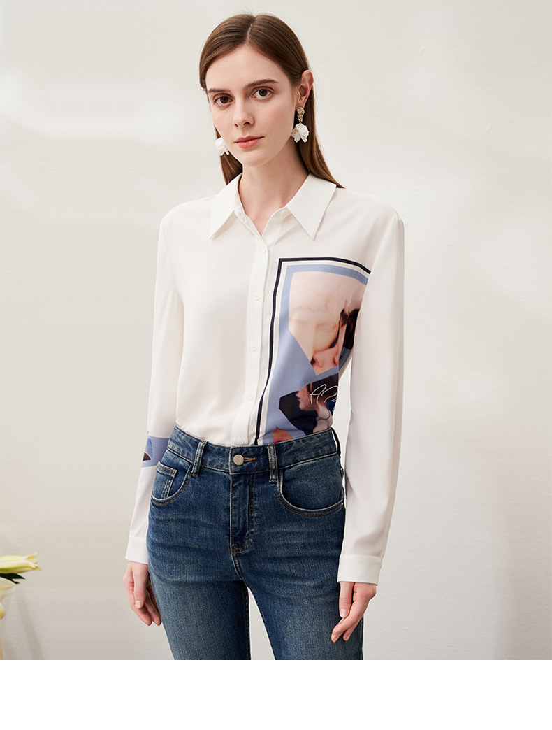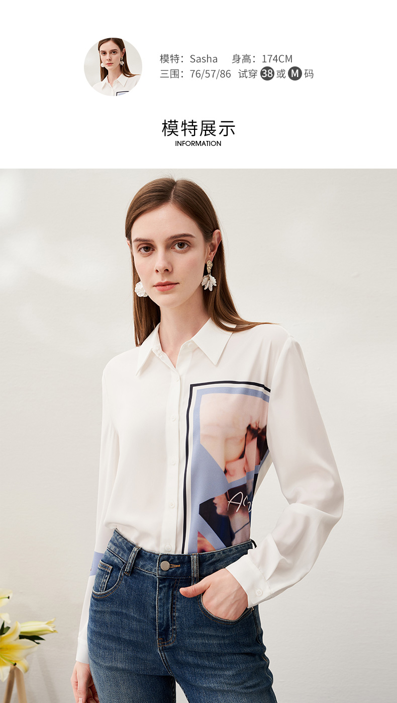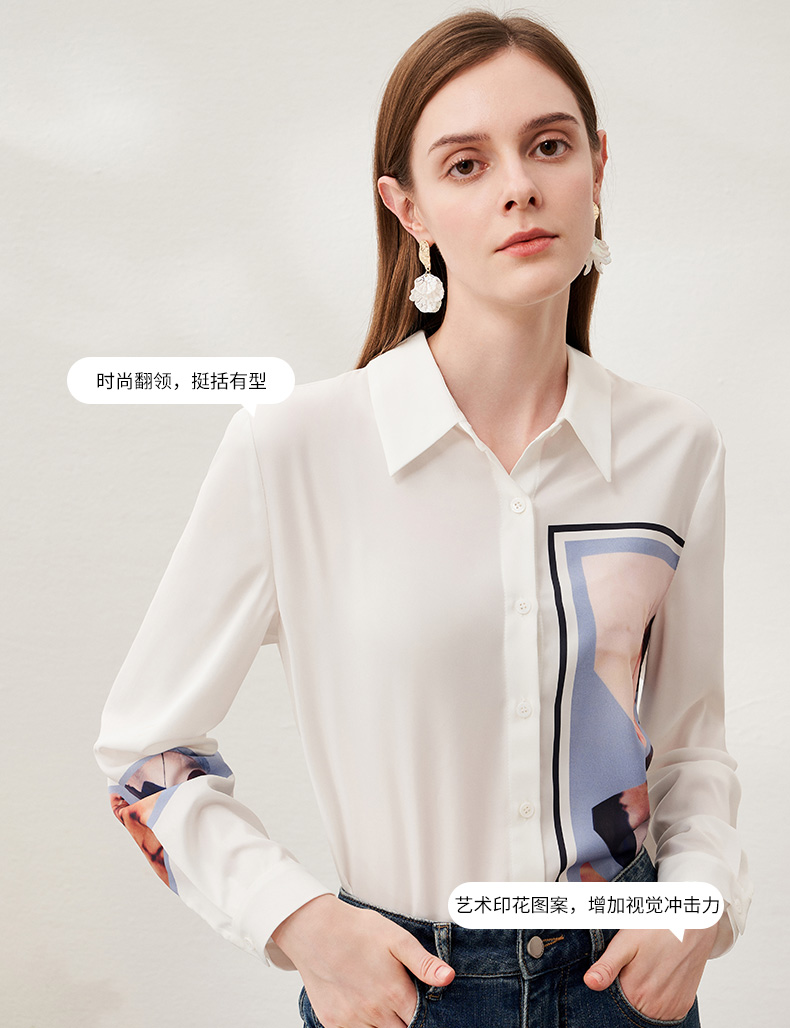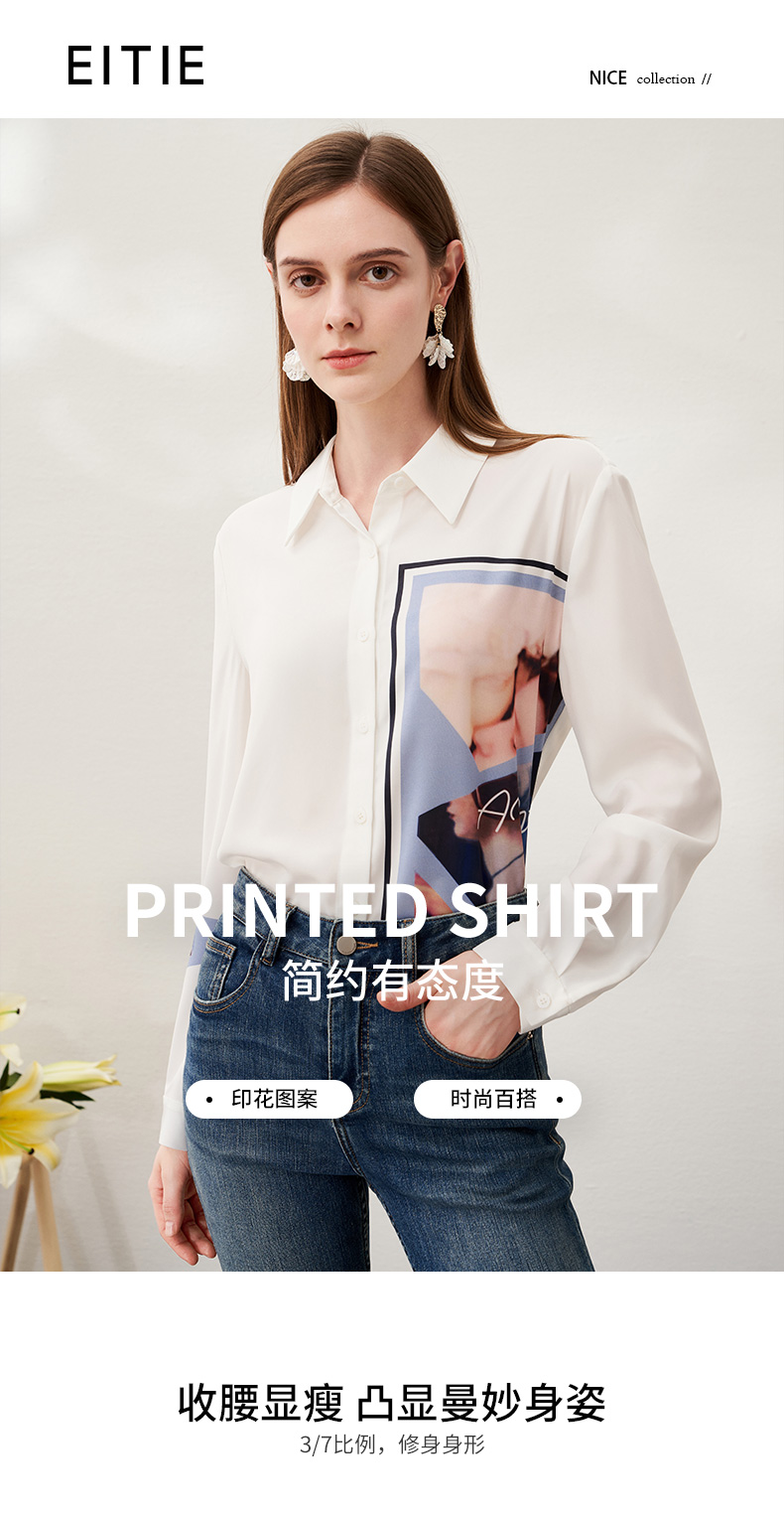 EITIE爱特爱春季新款时尚气质印花衬衫女上衣6909606
