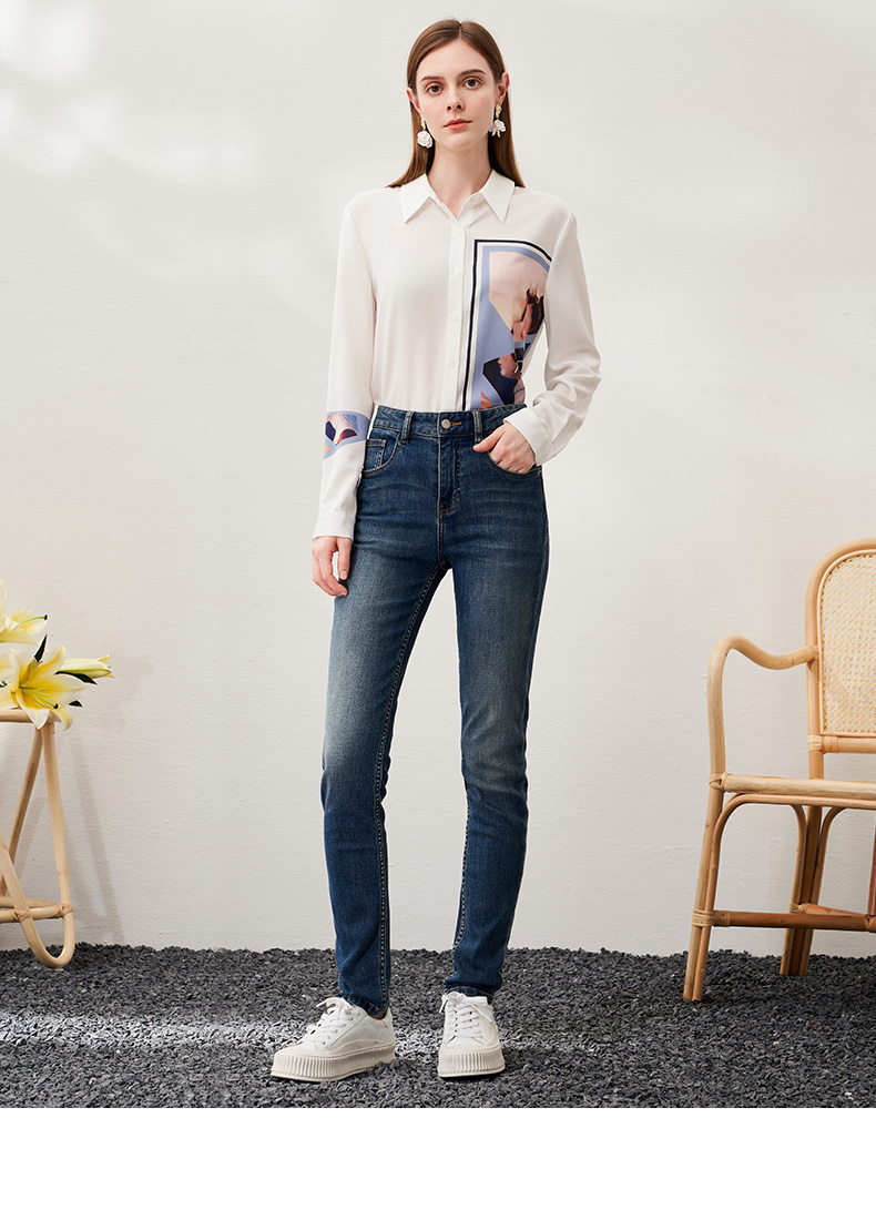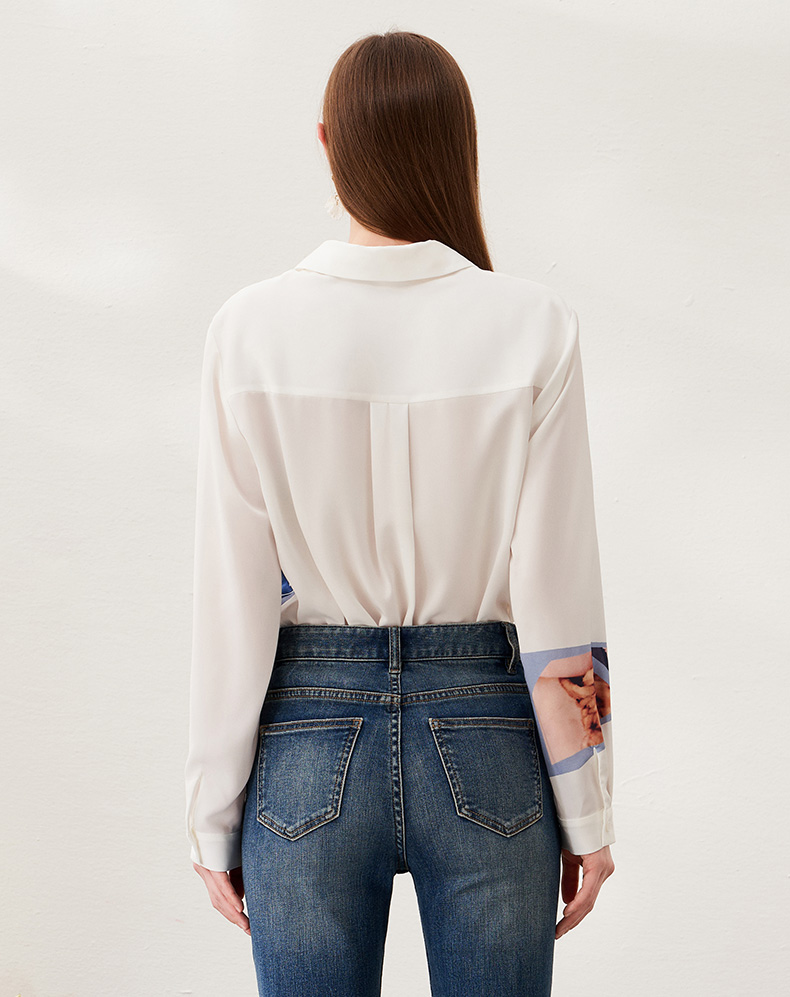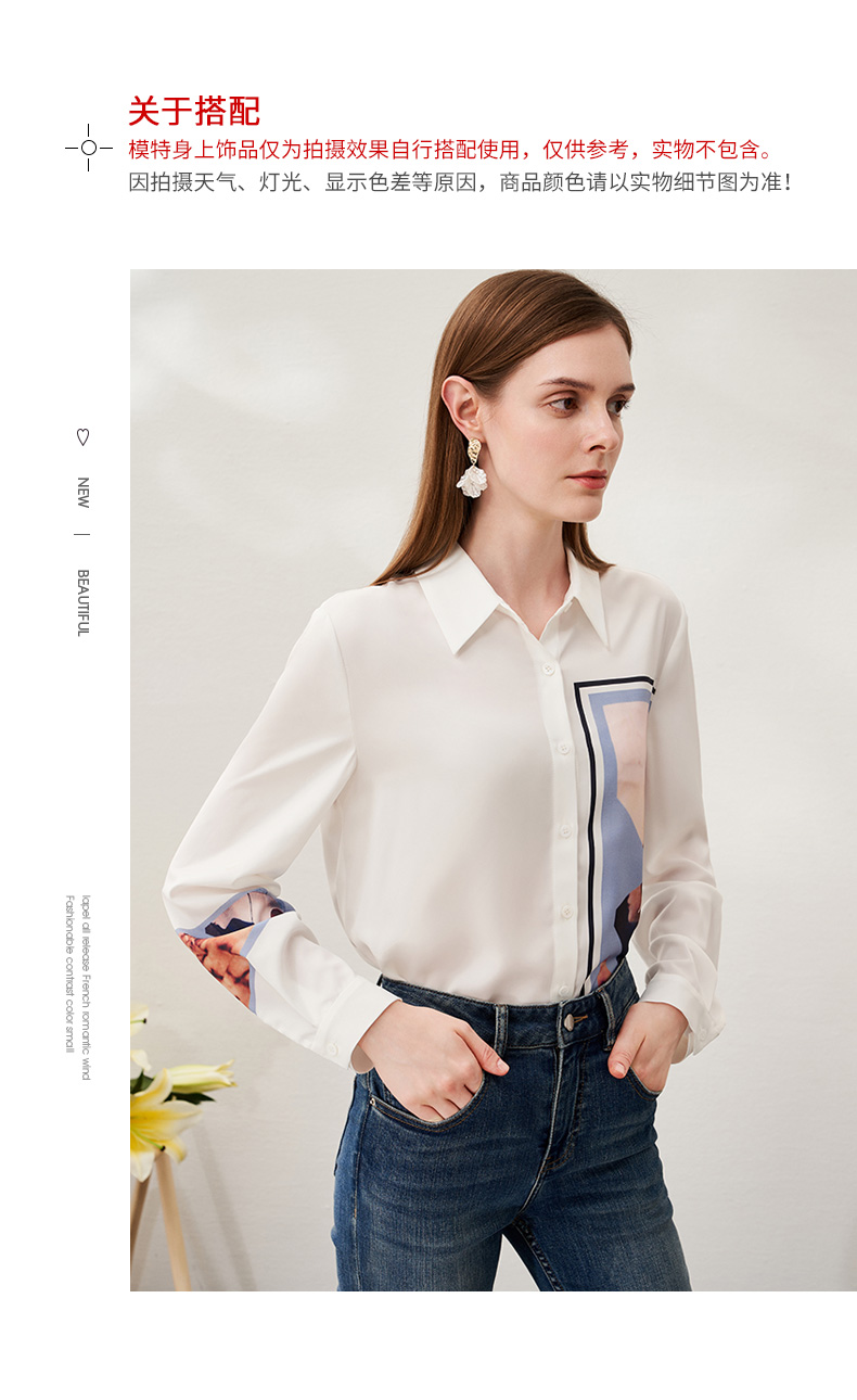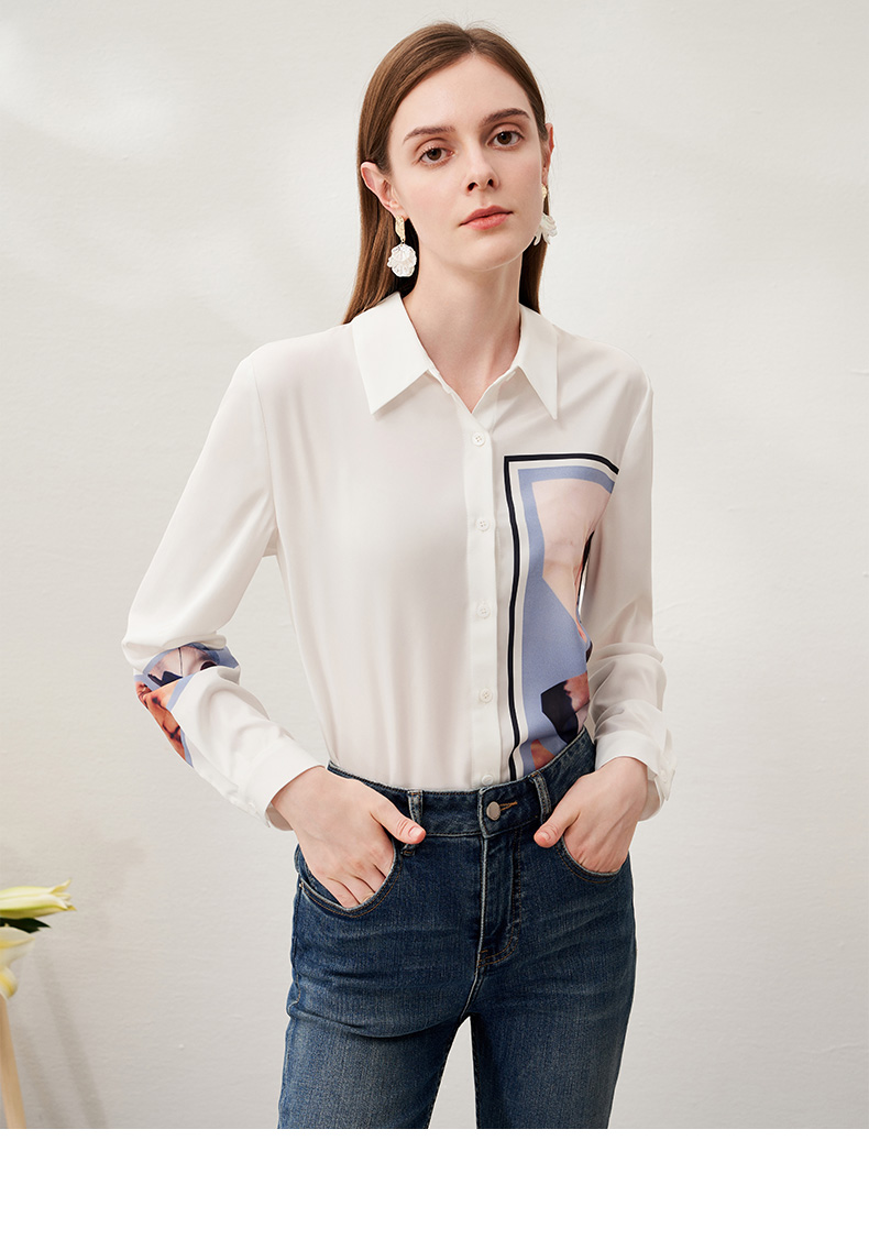 EITIE爱特爱春季新款时尚气质印花衬衫女上衣6909606